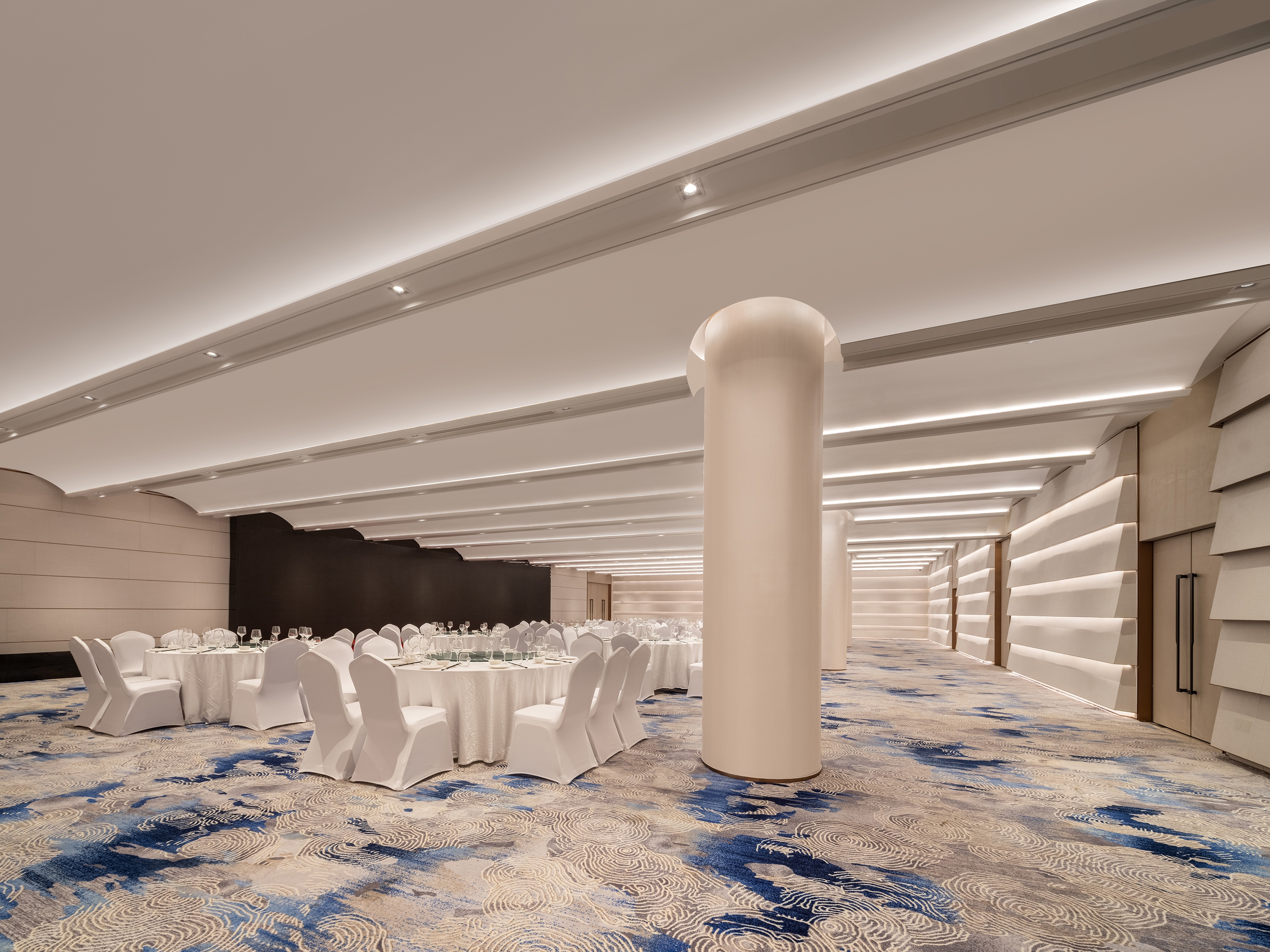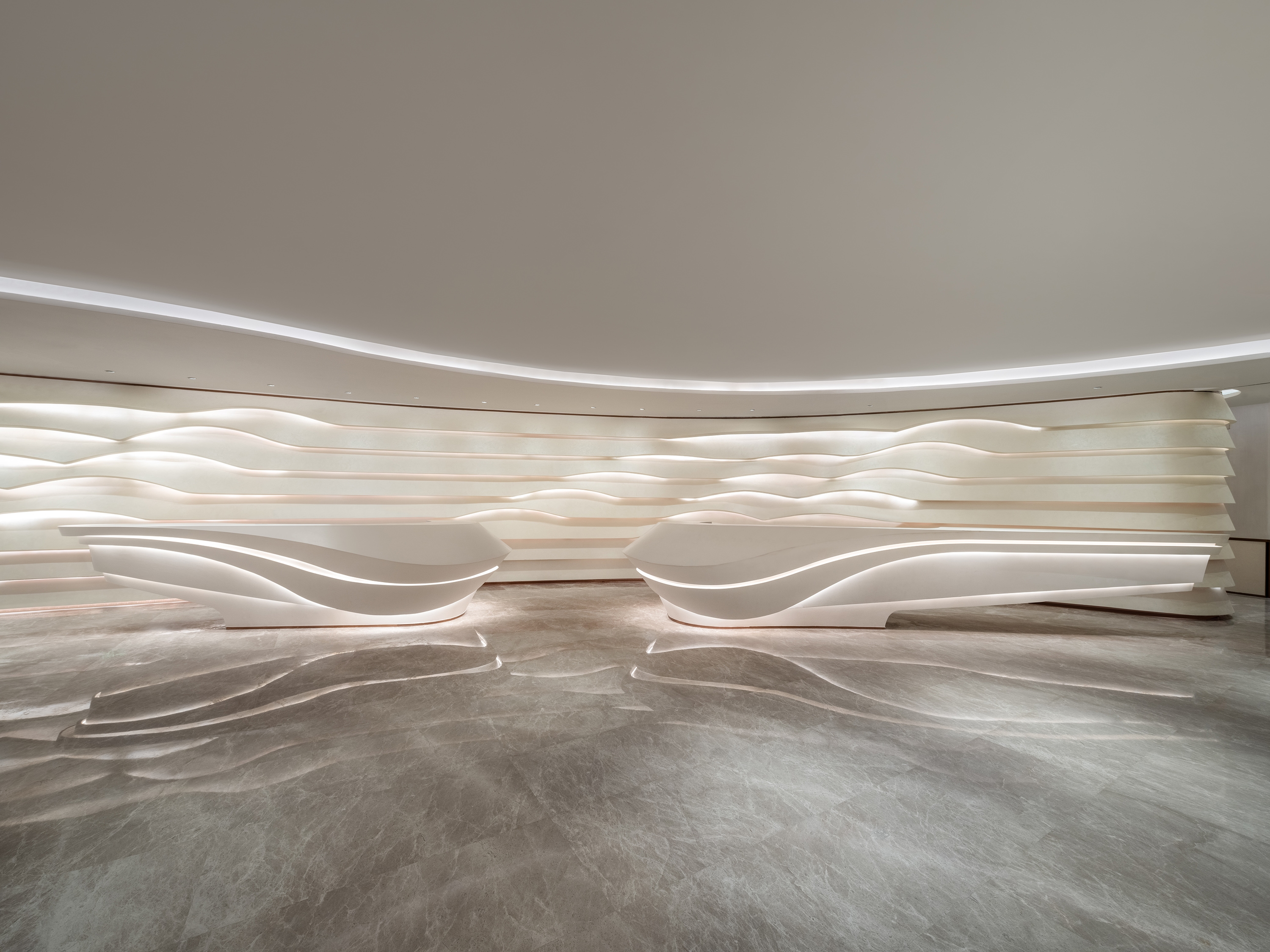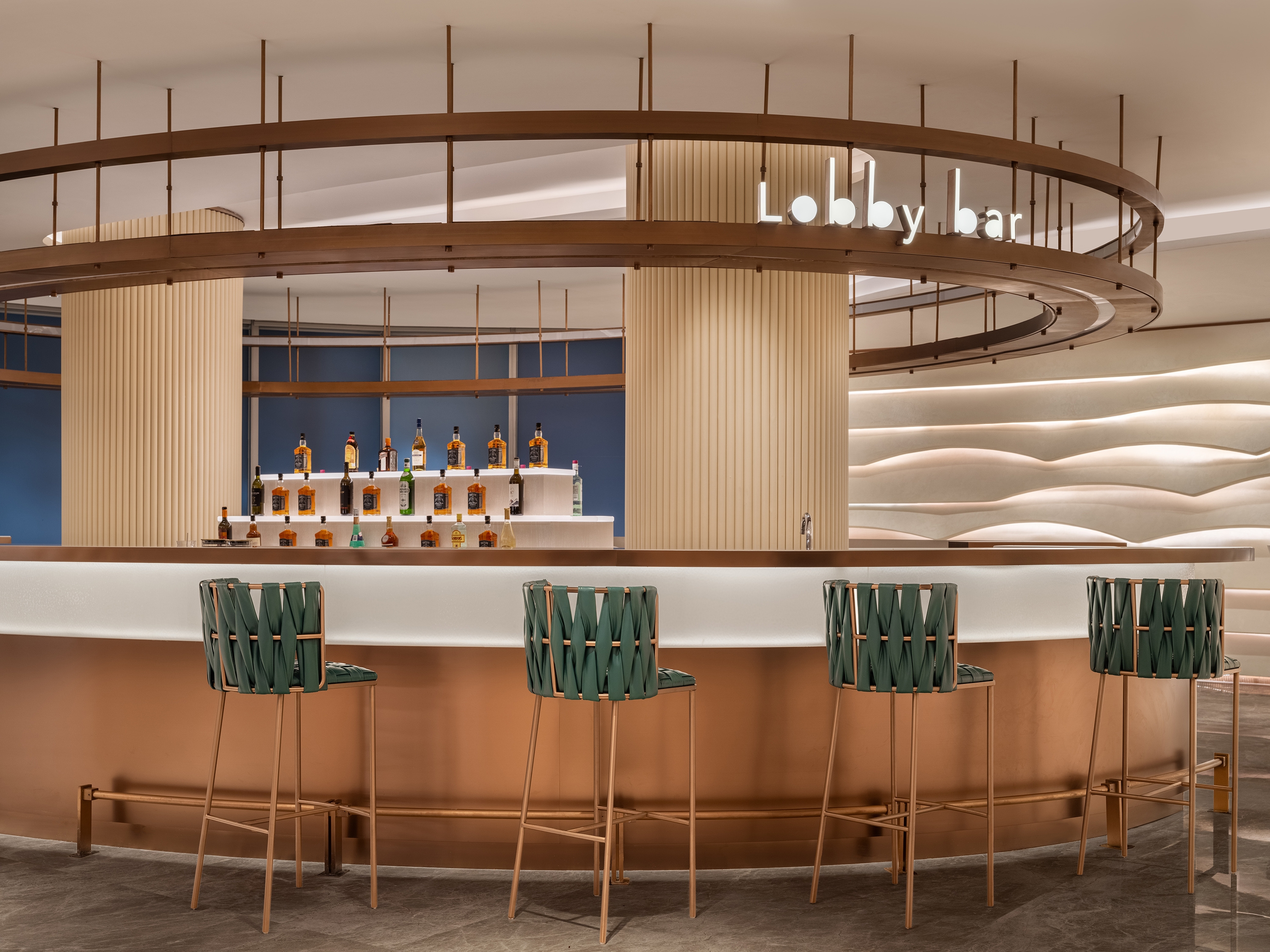 The overall design of the hotel presents a wave-like structure, resembling a gracefully romantic cruise sailing into the vast sea of stars. The design seamlessly integrates with modern aesthetics, embracing the sea and stars, offering a picturesque and tranquil experience. The architectural design language is continued, using numerous smooth curves as the main elements in the interior design. By aggregating various business formats, it aims to create a charming "Urban Club" nestled in the midst of nature, yet not far from the hustle and bustle. The interior design adopts a modern and fashionable style, with a bold use of comfortable and pleasant color palettes and innovative decorative elements, aiming to establish the most popular check-in destination.