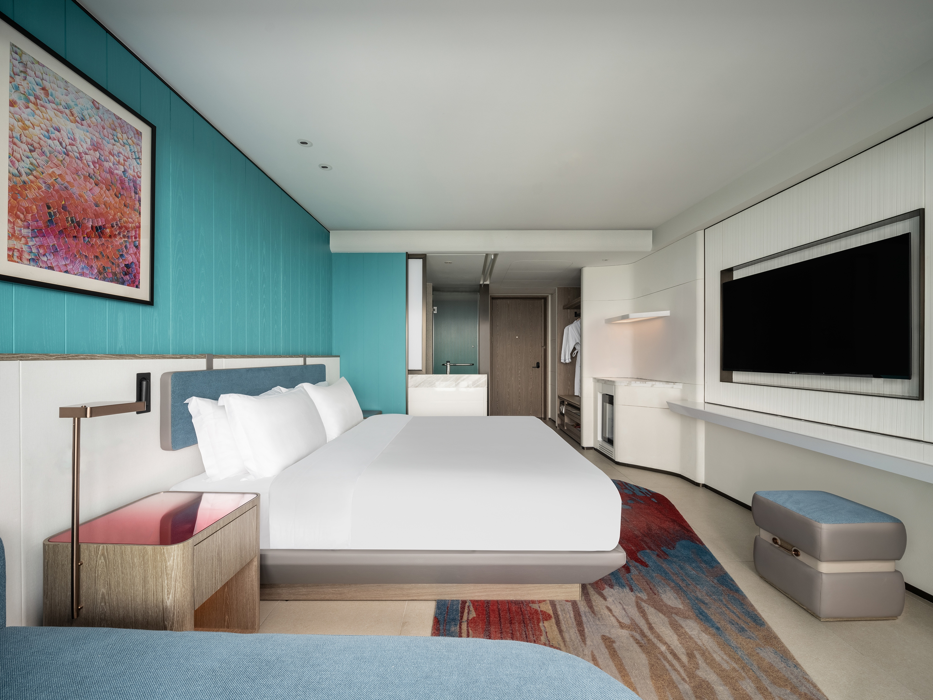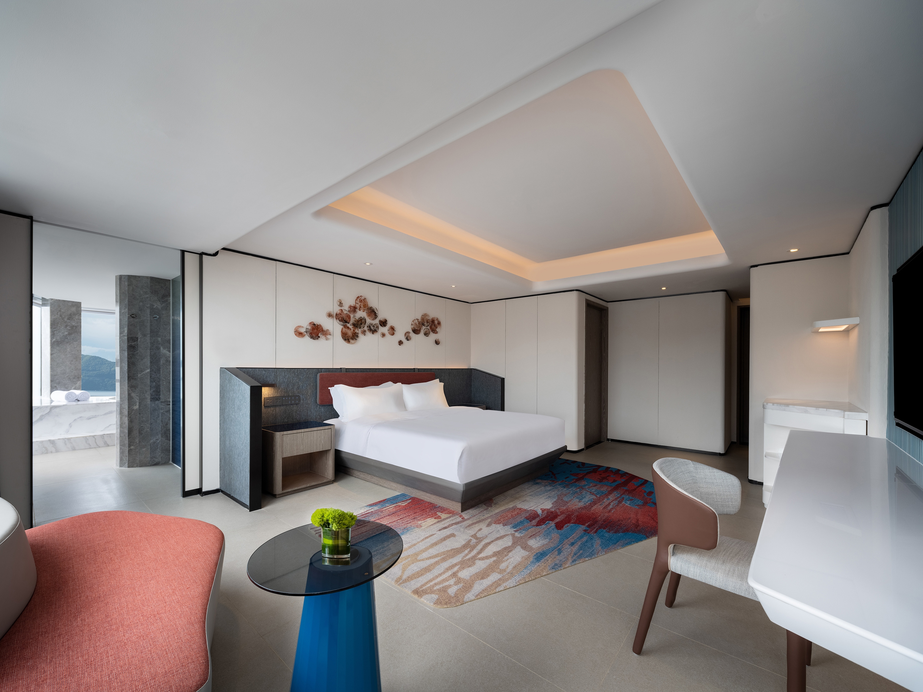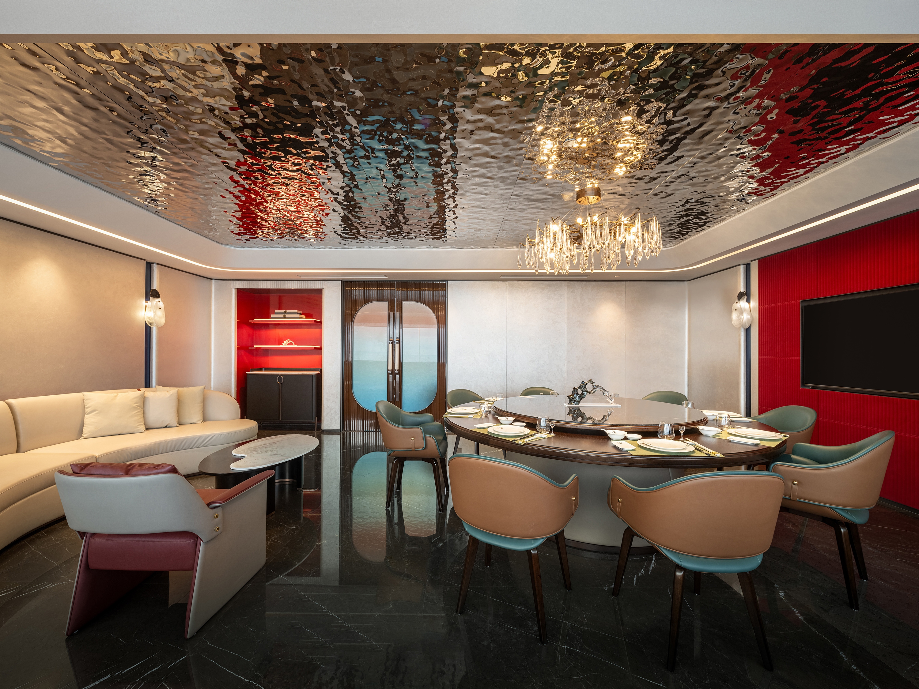 The overall design of the hotel presents a wave-like structure, resembling a gracefully romantic cruise sailing into the vast sea of stars. The design seamlessly integrates with modern aesthetics, embracing the sea and stars, offering a picturesque and tranquil experience. The architectural design language is continued, using numerous smooth curves as the main elements in the interior design. By aggregating various business formats, it aims to create a charming "Urban Club" nestled in the midst of nature, yet not far from the hustle and bustle. The interior design adopts a modern and fashionable style, with a bold use of comfortable and pleasant color palettes and innovative decorative elements, aiming to establish the most popular check-in destination.