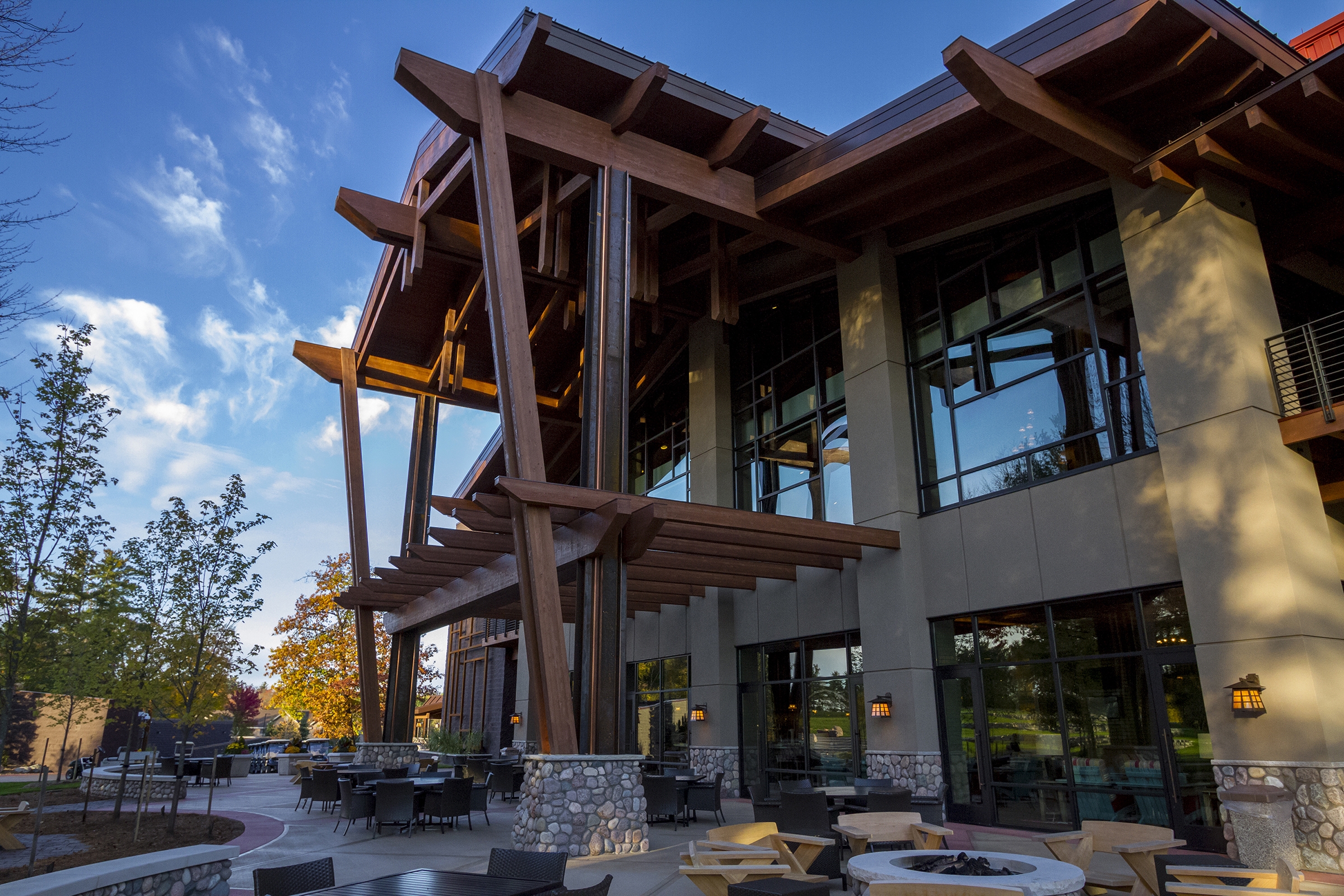 The hotel boasts multiple dining options, each with its own unique atmosphere and menu. A key element of the vision was to create a space where guests can come together. The dining options reflect the company’s values and serves to provide inviting atmospheres that encourage socializing and community engagement.
