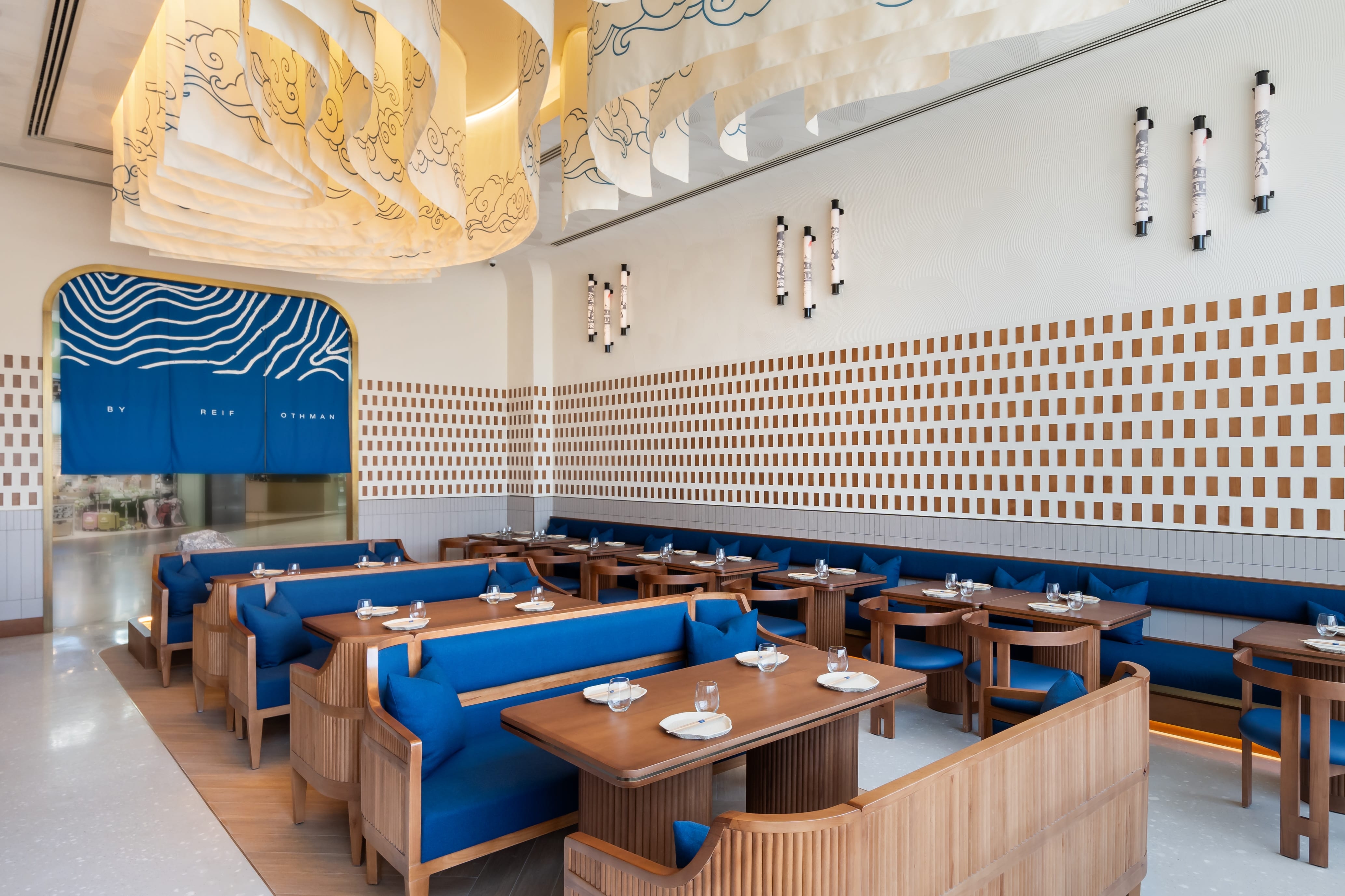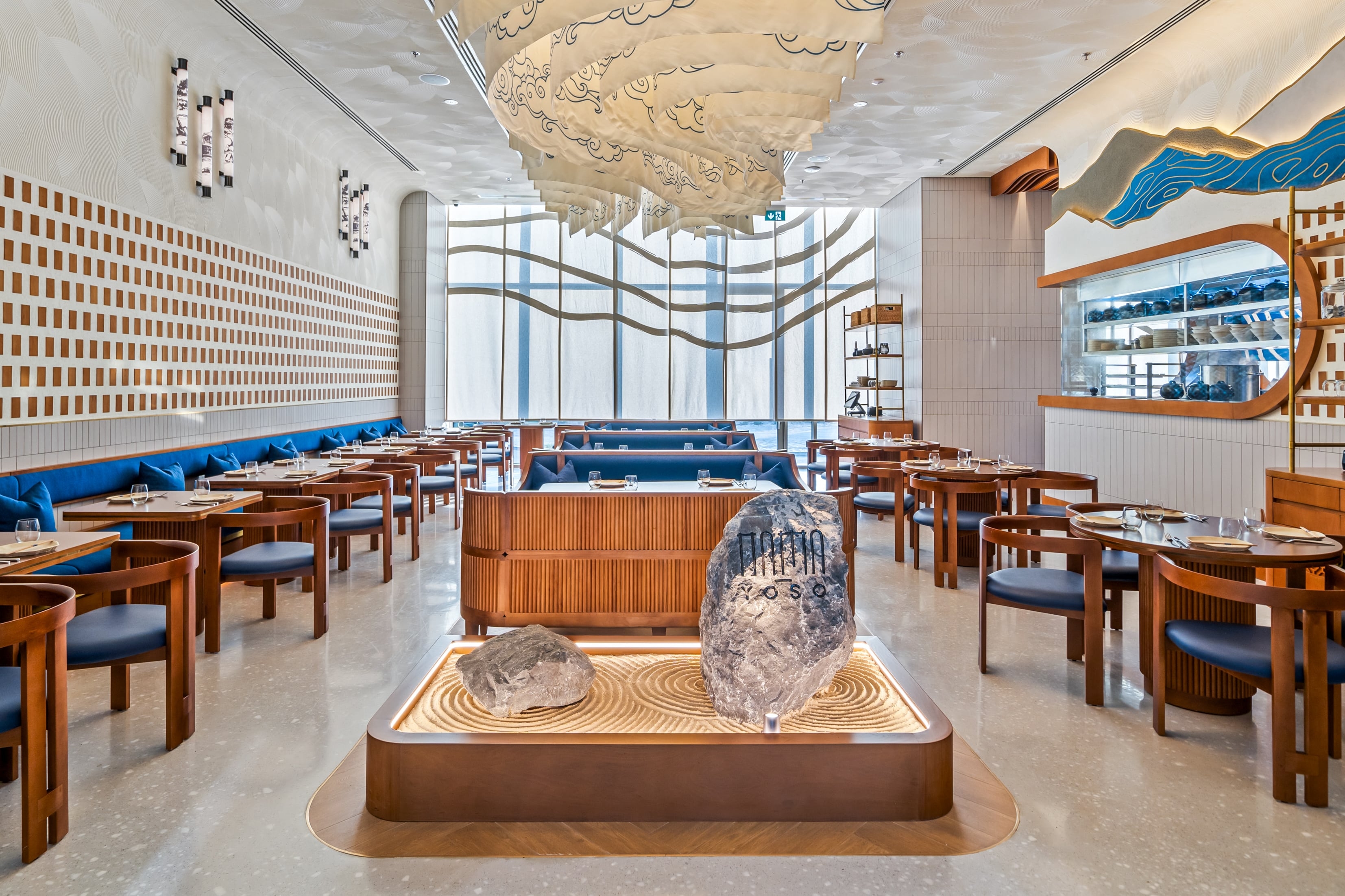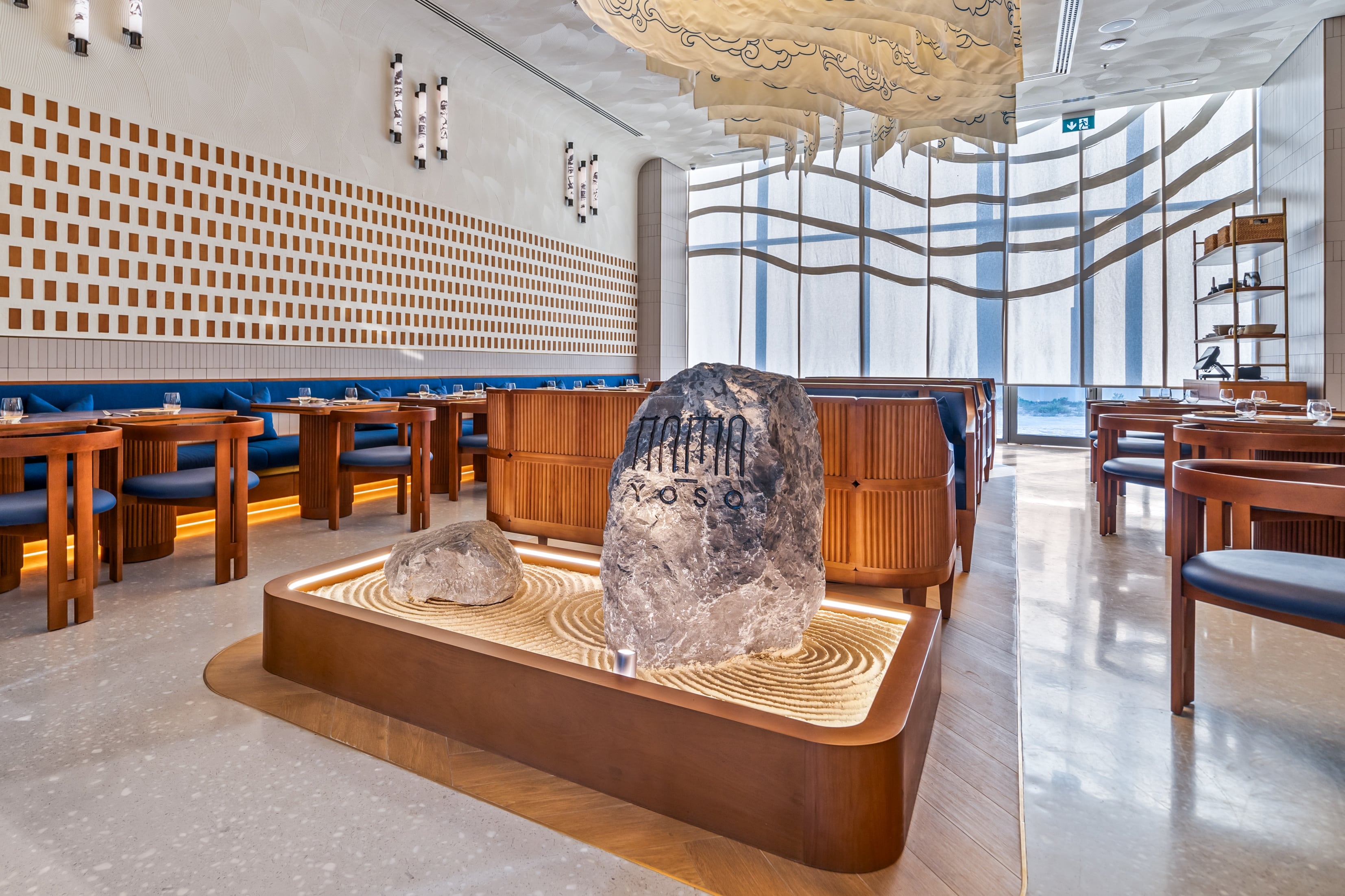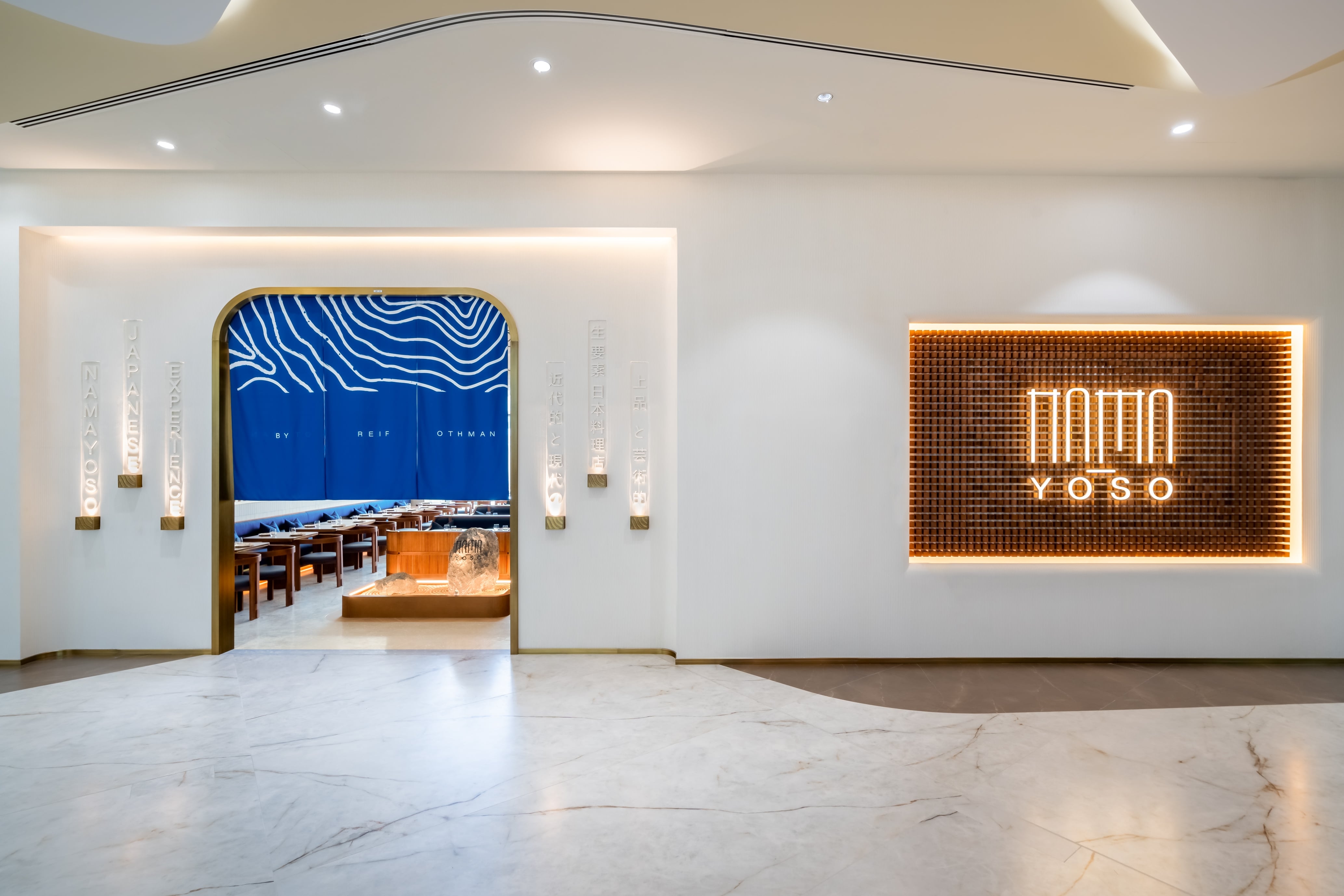 Nama Yoso, which translated to raw elements, is a Japanese contemporary restaurant in Mirdiff that blends traditional cuisine with Scandinavian design. The design, inspired by the beauty of raw ingredients and sushi layering, reflects simplicity with attention to detail. The raw materials design approach guides refined finishes, creating a contemporary elegance. The result is a sophisticated dining experience that fuses culinary tradition with modern design. The design results were brought about by thorough trend research, crafting a unique brand essence, employing visual layering for spatial harmony, and integrating handcrafted art details and innovative lighting to elevate the aesthetic, resulting in a breathtaking facade. The results transformed Nama Yoso into a unique dining destination, marrying tradition with modernity, setting new standards for culinary and design integration.
