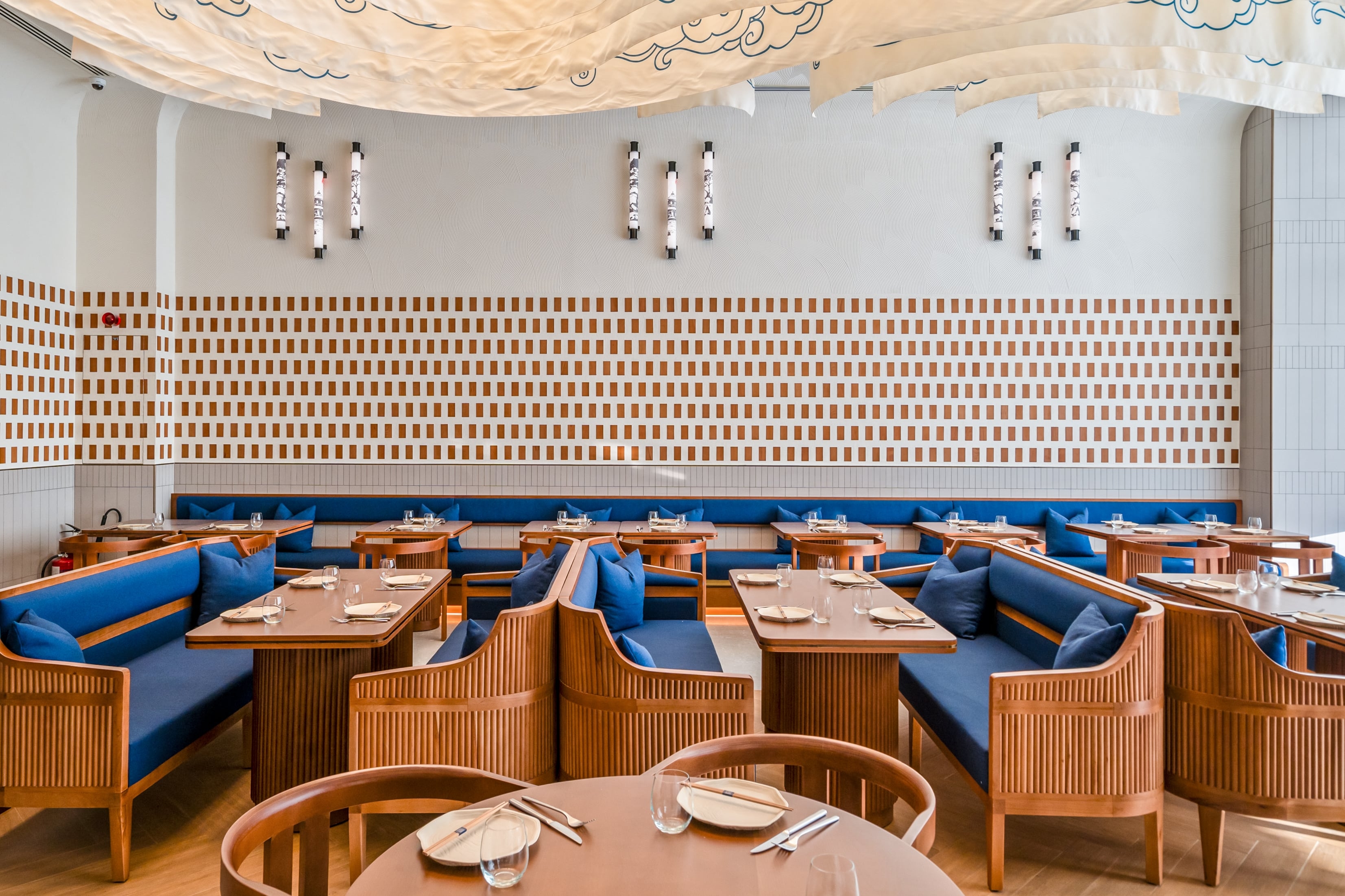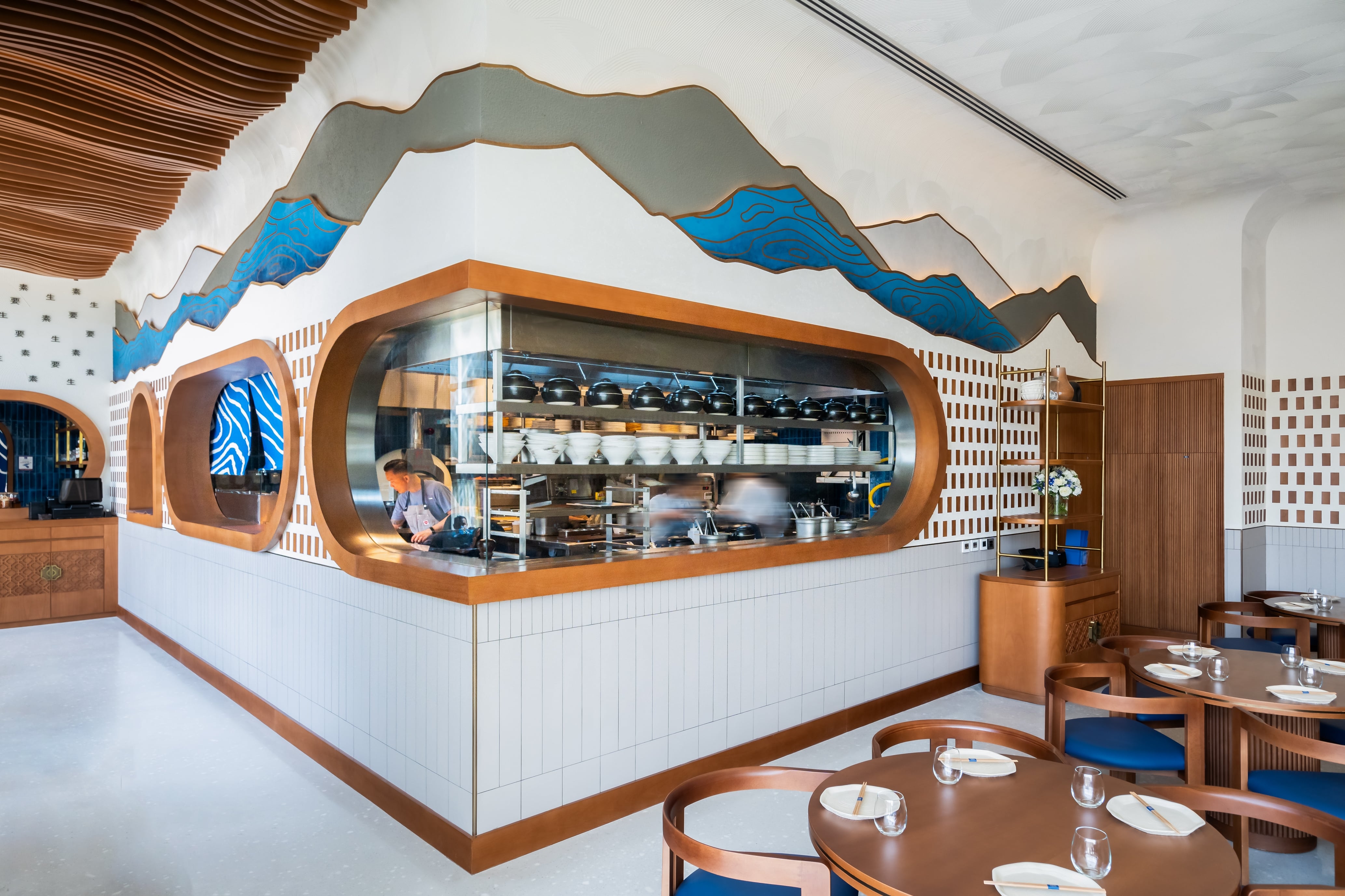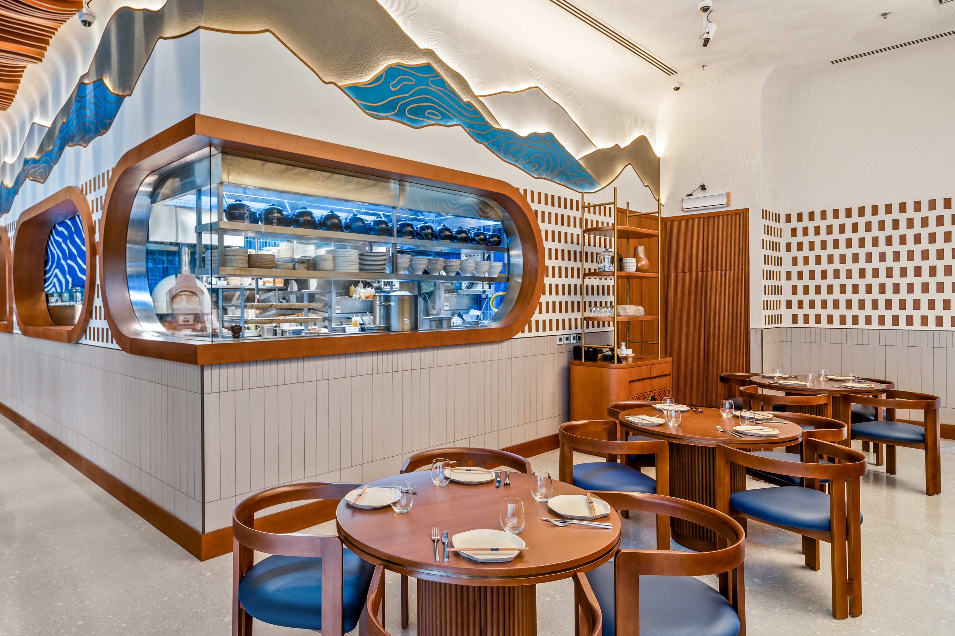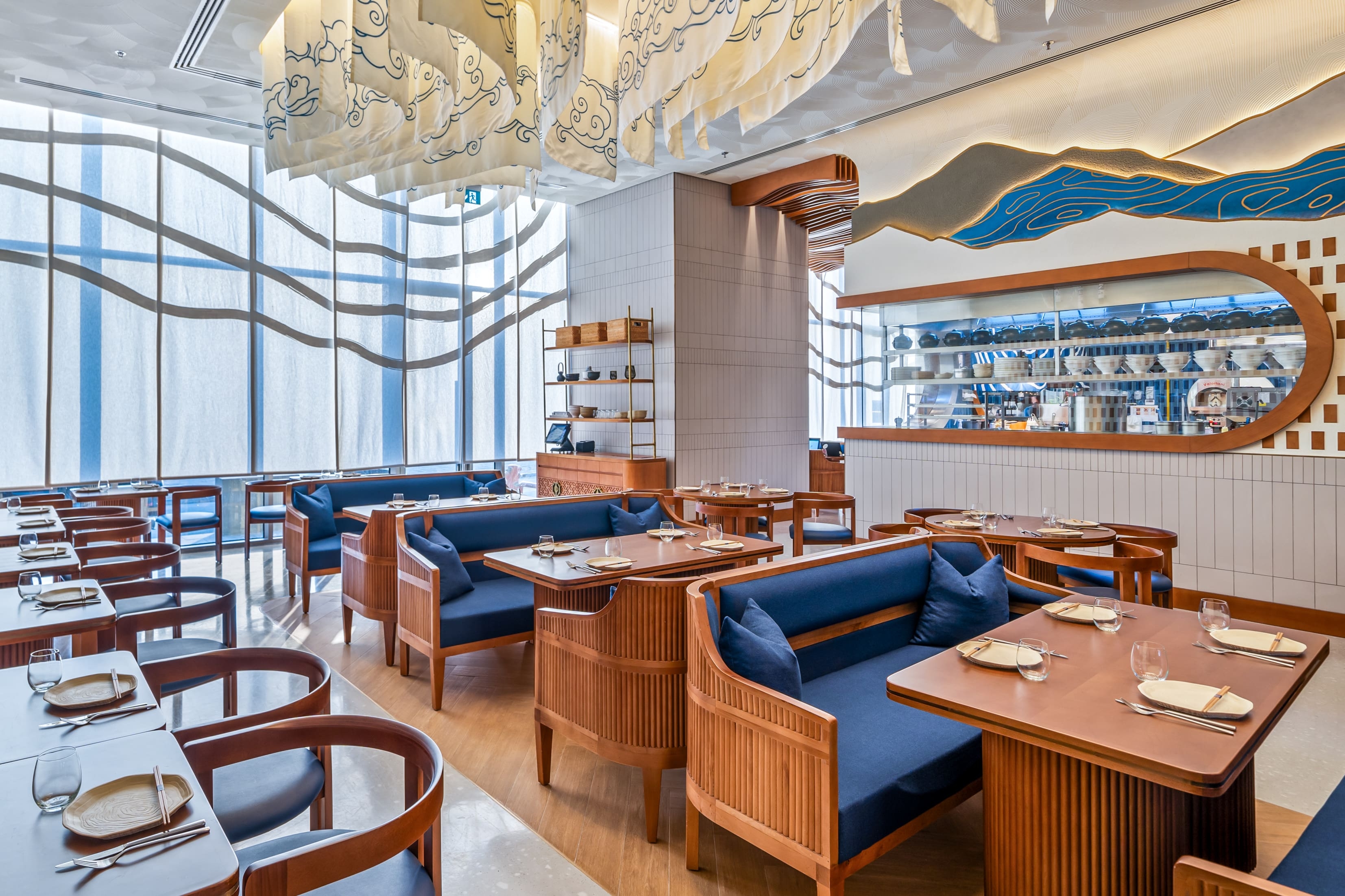 Nama Yoso, which translated to raw elements, is a Japanese contemporary restaurant in Mirdiff that blends traditional cuisine with Scandinavian design. The design, inspired by the beauty of raw ingredients and sushi layering, reflects simplicity with attention to detail. The raw materials design approach guides refined finishes, creating a contemporary elegance. The result is a sophisticated dining experience that fuses culinary tradition with modern design. The design results were brought about by thorough trend research, crafting a unique brand essence, employing visual layering for spatial harmony, and integrating handcrafted art details and innovative lighting to elevate the aesthetic, resulting in a breathtaking facade. The results transformed Nama Yoso into a unique dining destination, marrying tradition with modernity, setting new standards for culinary and design integration.