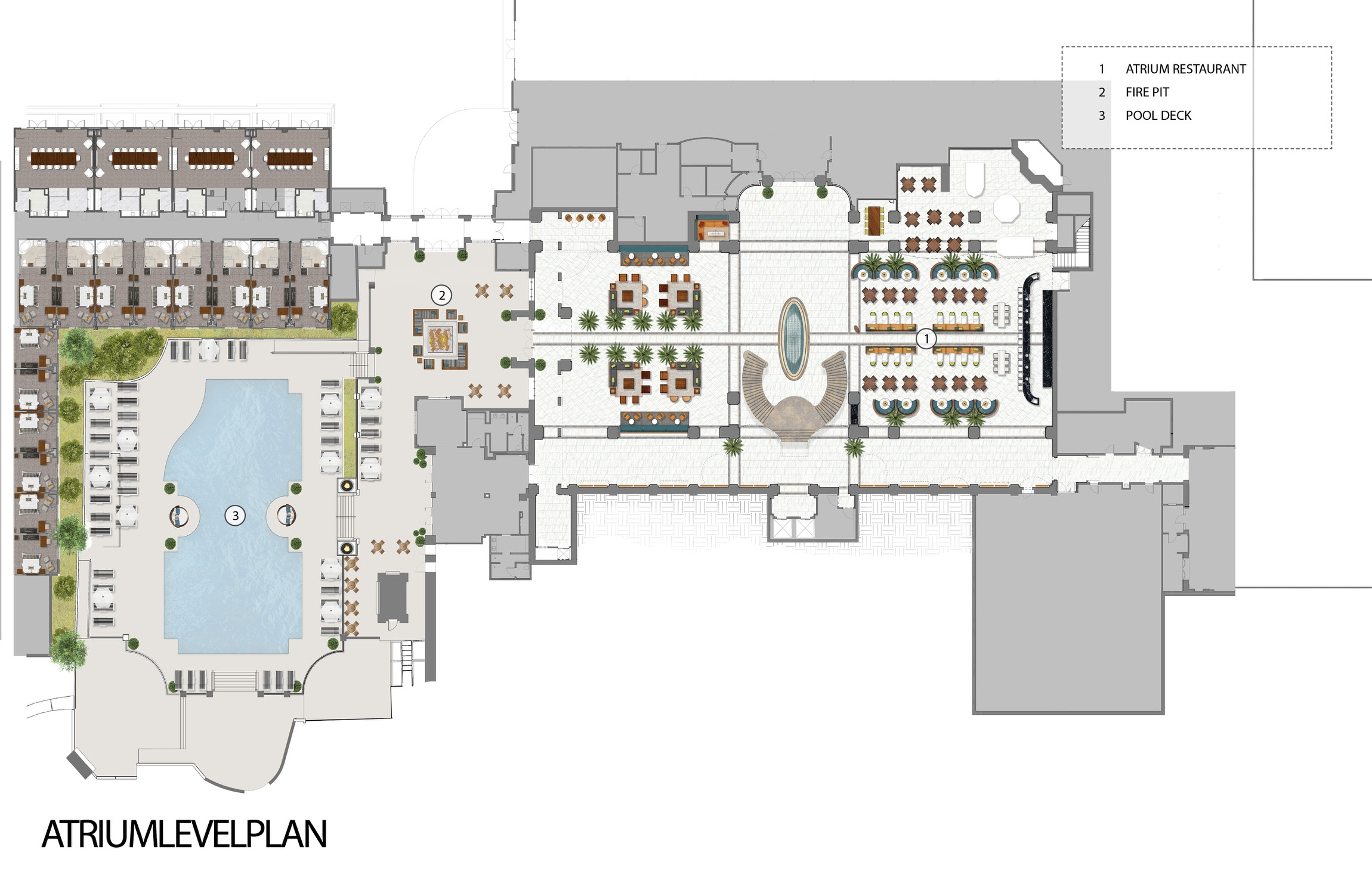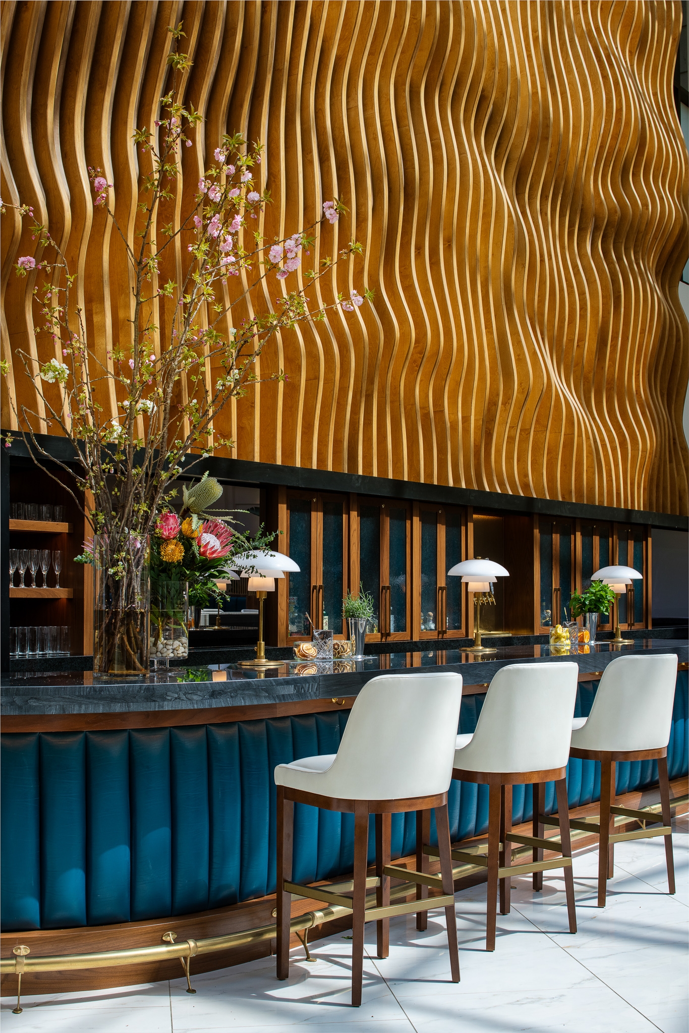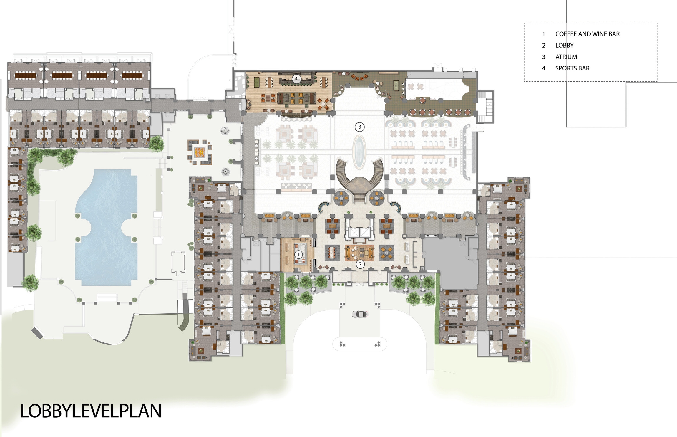 The primary challenge of the project was how to take a series of very disparate components, built at different times, in different vocabularies and at different quality levels, and elevate them to be consistent from both an operational and a design standpoint. Additionally, although the property was known for its winery, there was not a bar in the lobby or atrium where guests could enjoy it.