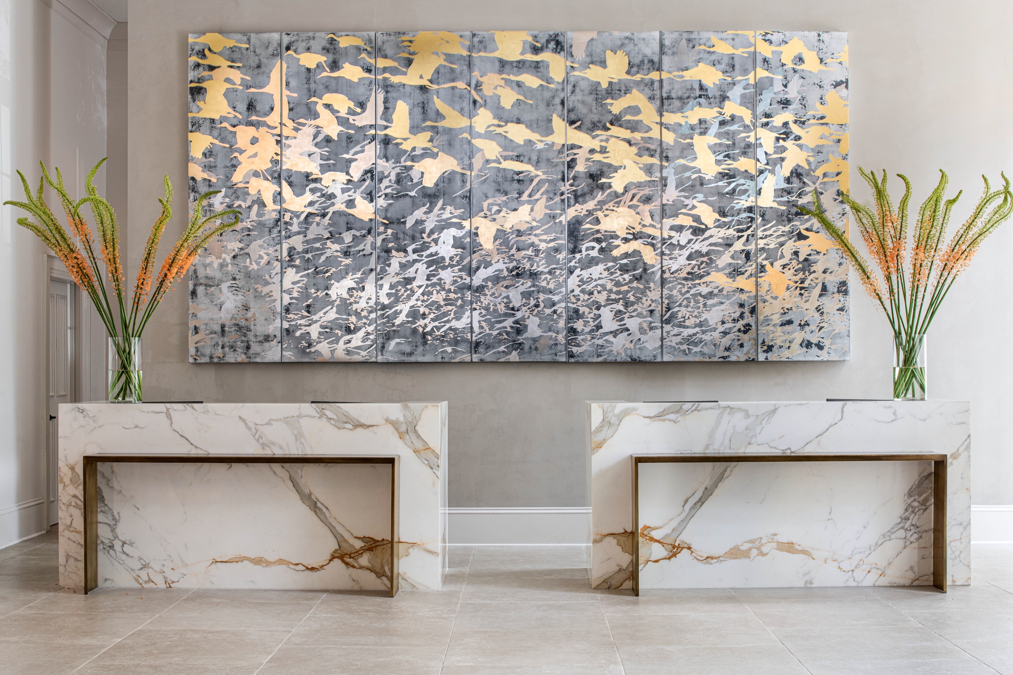 The transformed lobby has become one of the most attractive hotel gathering spaces. The connection between the lobby and atrium was opened up so guest see glimpses of the 200 foot hanging glass sculpture, designed to mimic grape vines, as they step into the lobby.