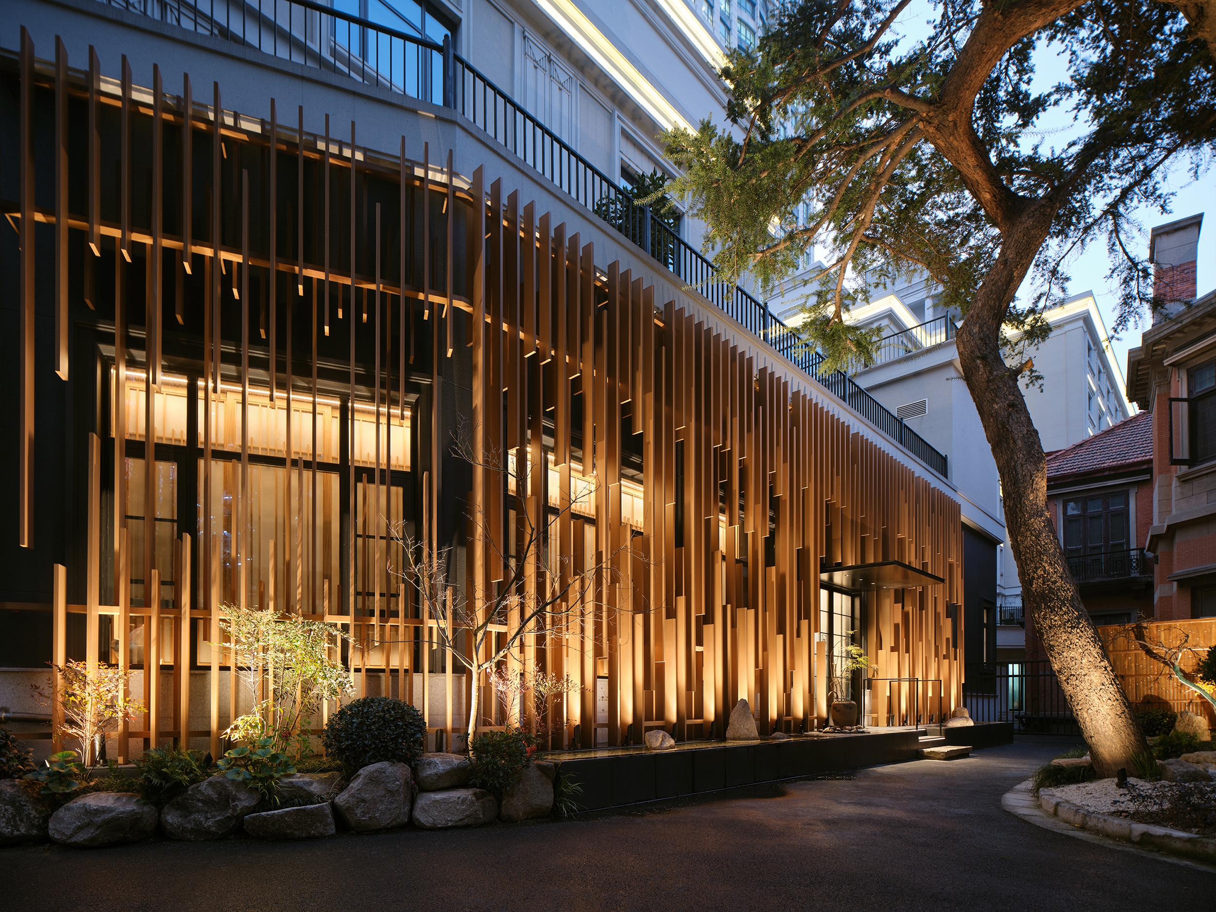 The exterior facade is irregularly arranged with wooden grilles, giving a sense of peace and nature. The interior is based on Shanghai's French romance, while incorporating natural and vintage elements, restraining rational expression, allowing the space to highlight its understated and elegant aesthetics.