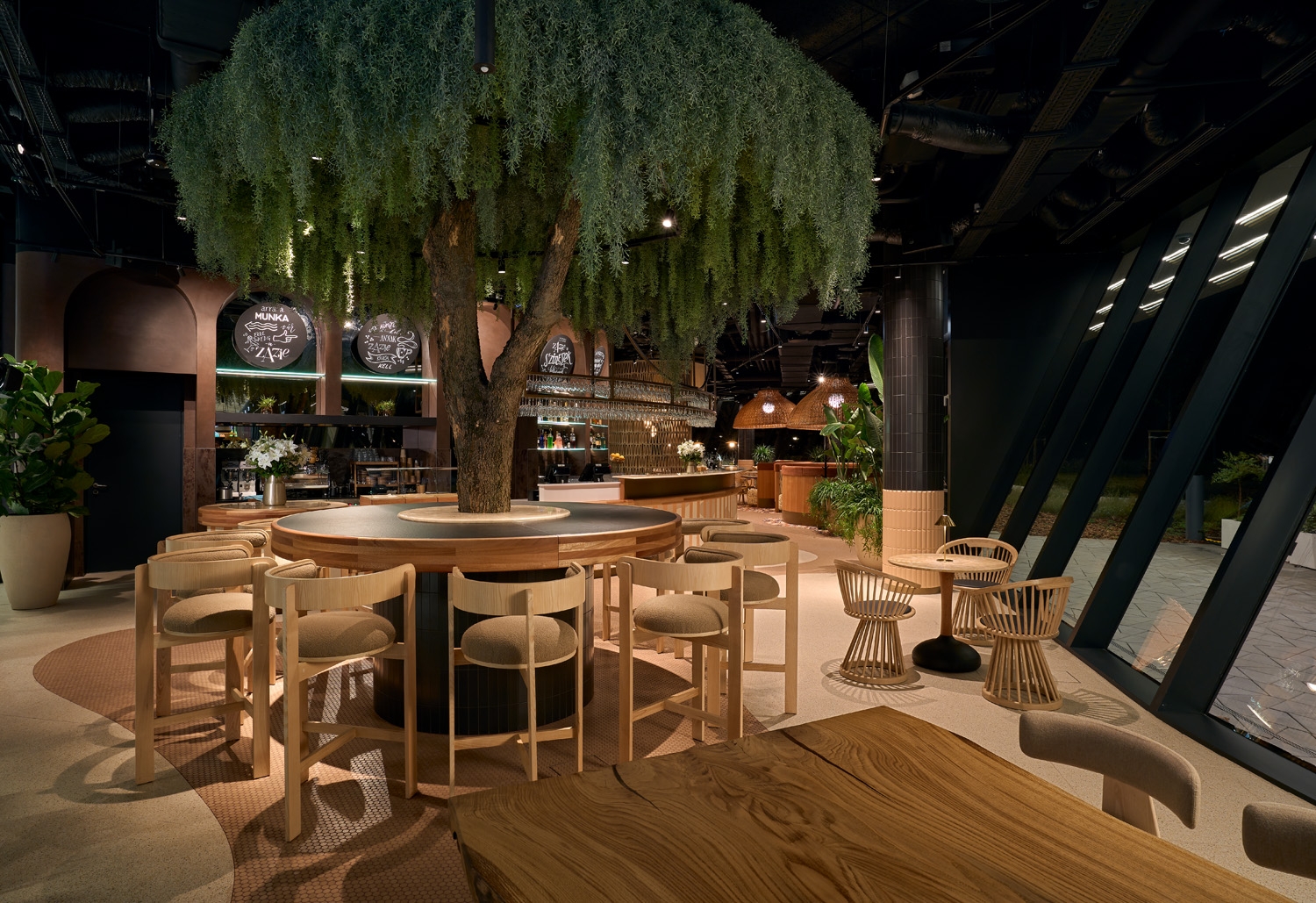 A café in the morning, a bistro during the day and a bar in the evening, Zazie Bistro&Bar opened in Budapest’s new landmark skyscraper, MOL Campus, designed by Foster+Partners. The location itself enchanted interior designer este’r partners, as different eras of history are coined here: while having a meal in the latest masterpiece of contemporary architecture, you can see the former factory buildings of the industrial zone of the riverbank and also enjoy the closeness of nature.