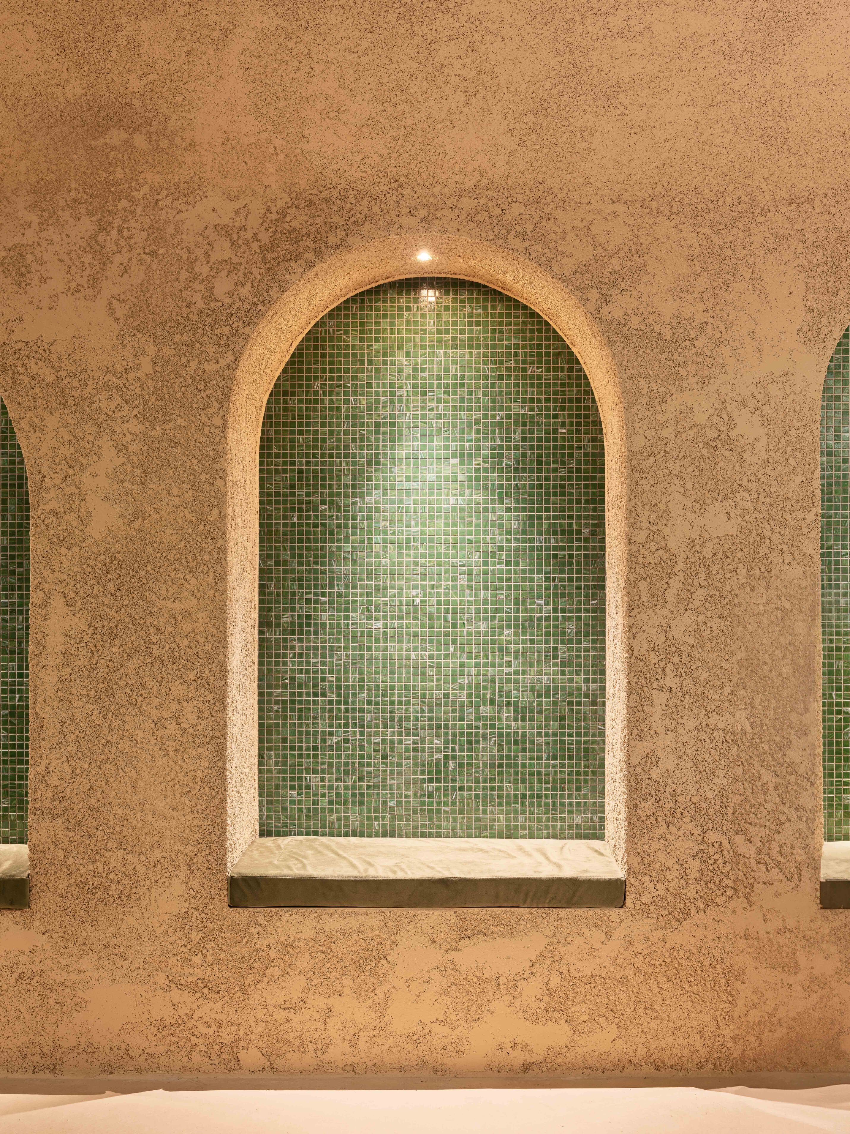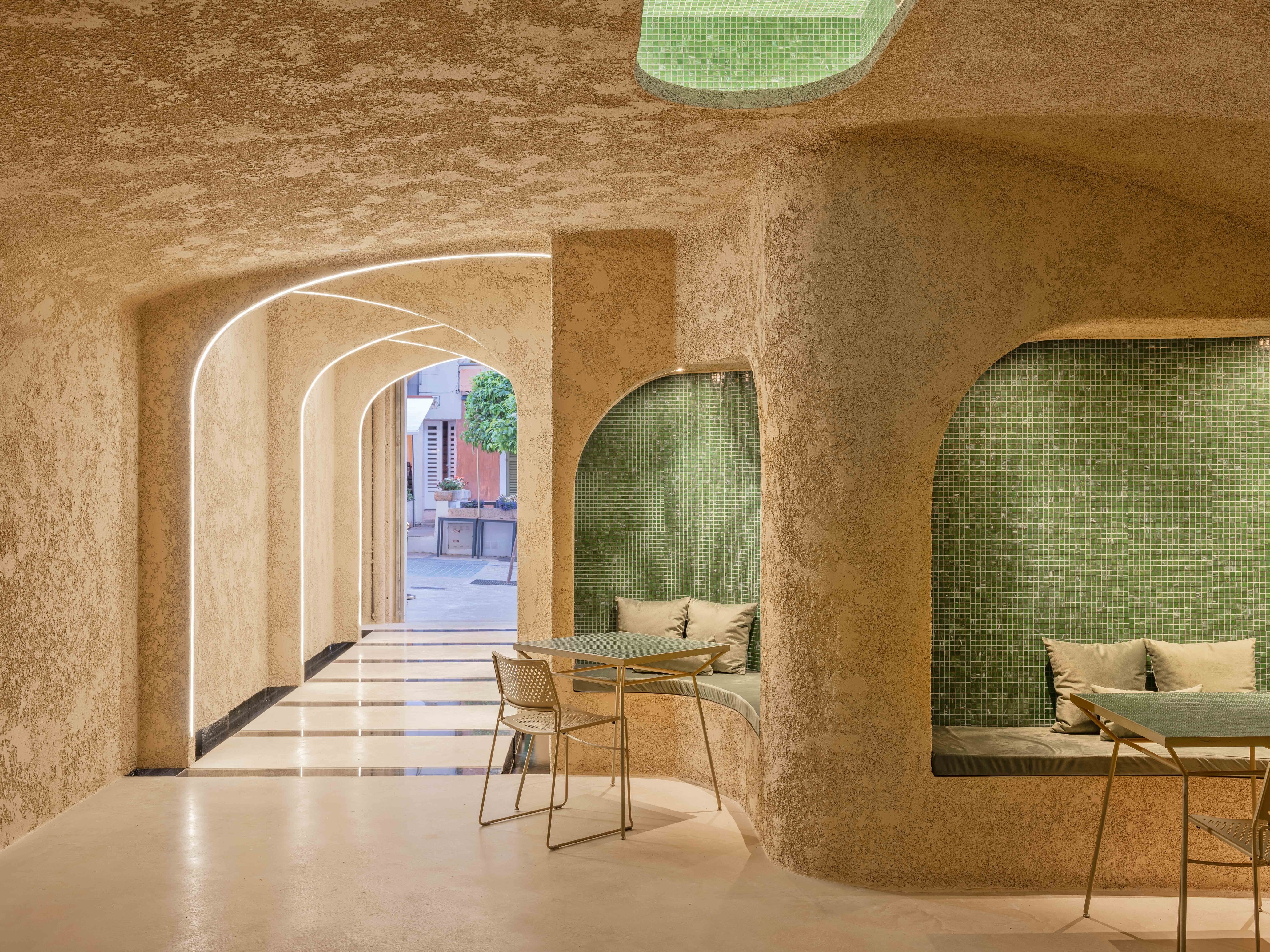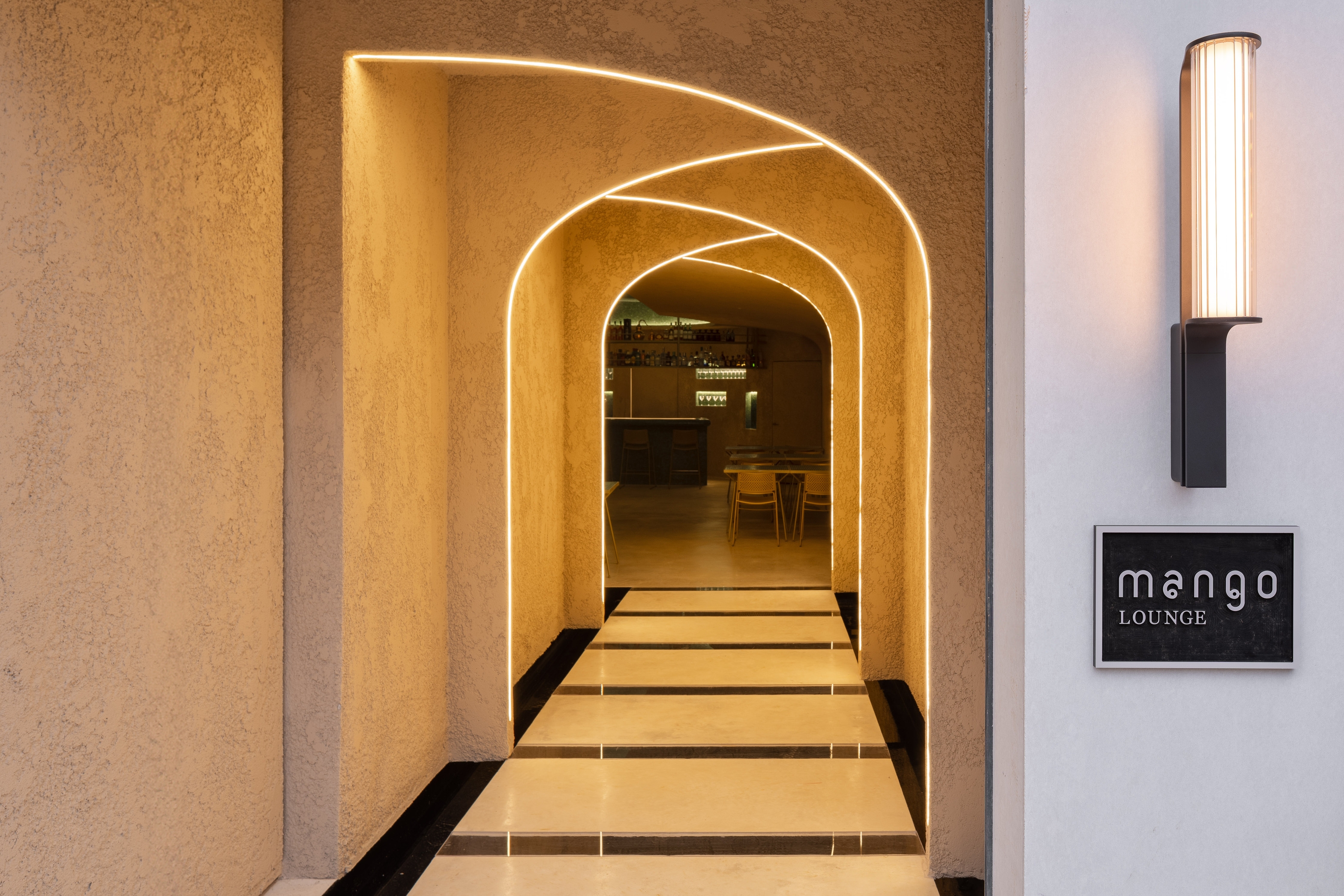 The access takes us inside through a series of carefully overlapping and illuminated arches, on concrete platforms submerged in water to delve in a unique sensory experience. Here, the synergy of styles and cultures stands out above all, creating an environment that transcends borders and expectations.