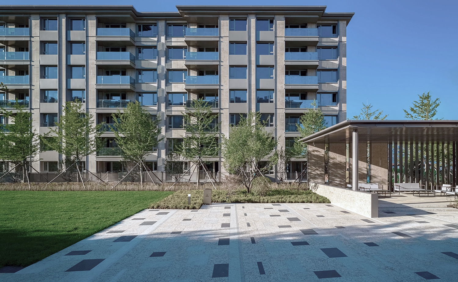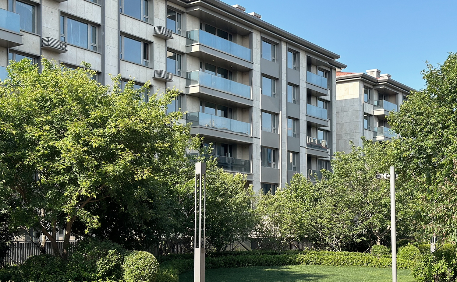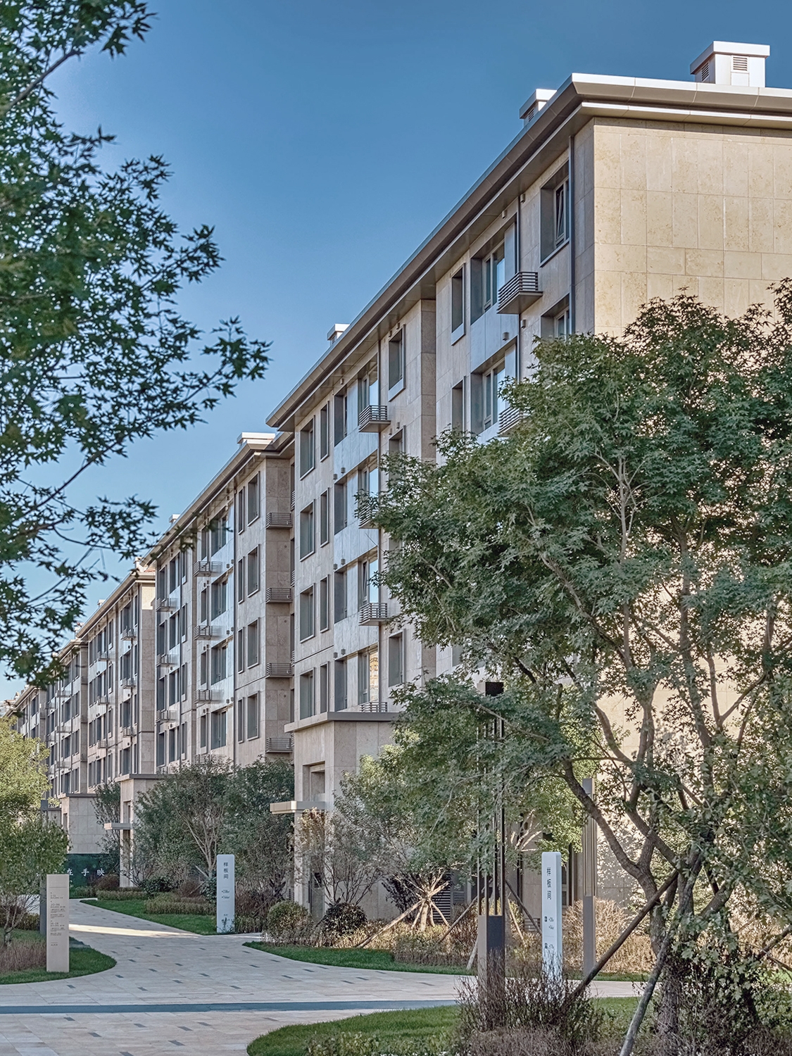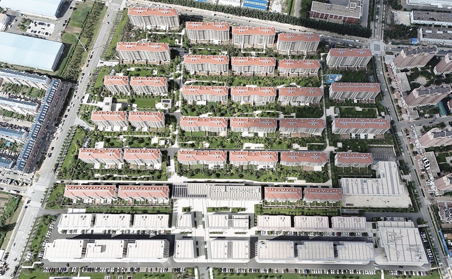 Nestled in the lush greenery of Jingyue District in the southeastern corner of the city, this community is set amid rolling hills, with Juyue Commercial Street on the south side providing a transition space between the community and the main roads. From the Sakura East Street green belt, a pathway extends northward, leading to a plaza and through a three-story high canopy, accompanied by the soothing sound of cascading water, arriving at the southern entrance and connecting the main north-south axis of landscaped greenways. On the western side, a grand staircase, flanked by flowing water, ascends the slope, while a zigzagging accessible ramp gently bridges the terrain differences and provides sweeping views of the community.