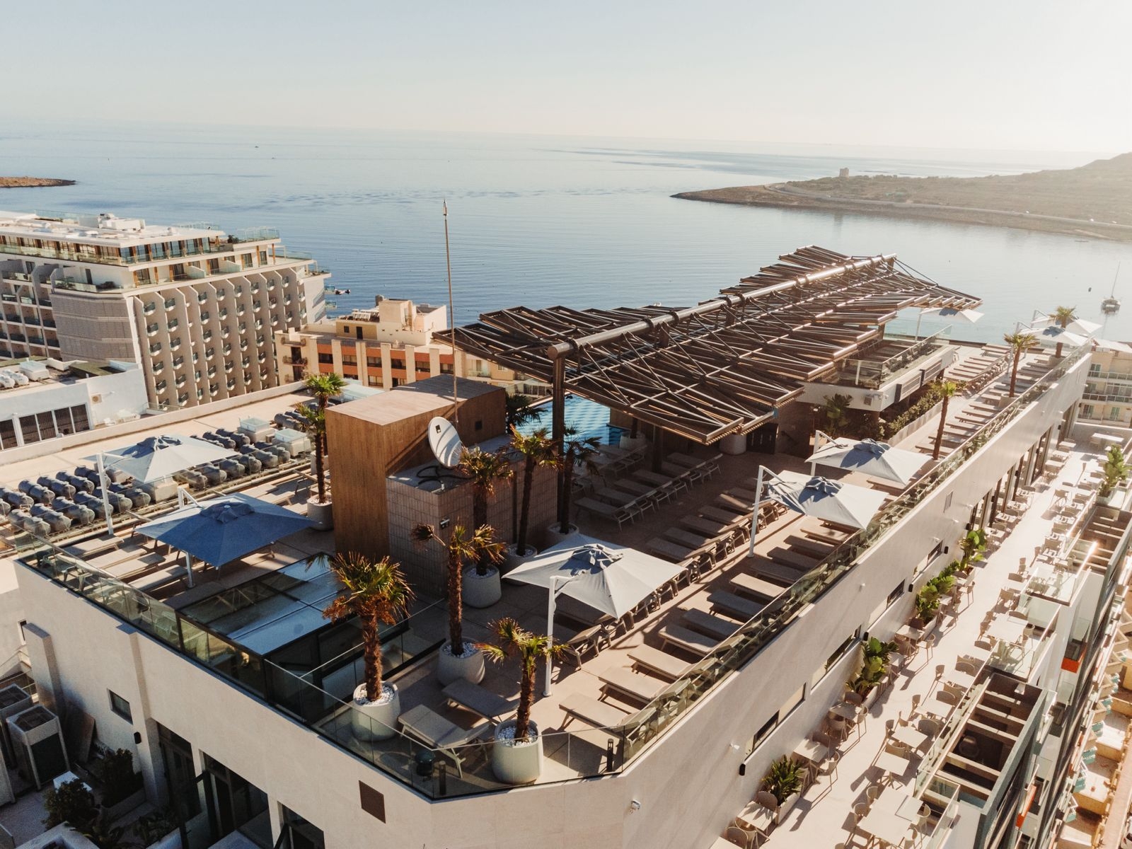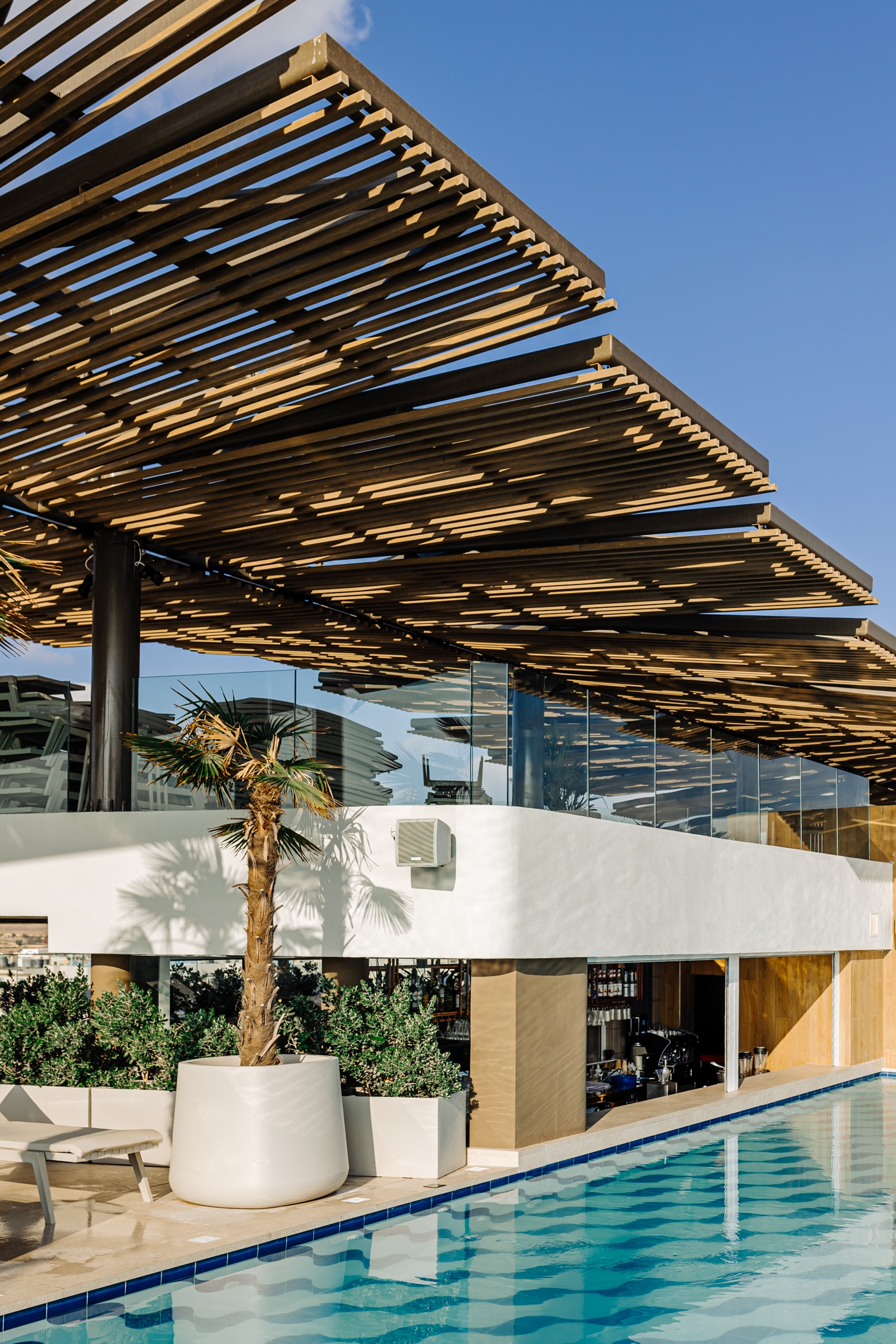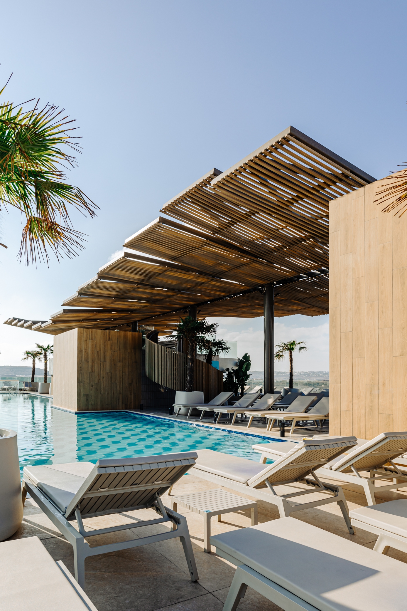 At Sema, the goal was to create a rooftop space that truly stands out—a place worth visiting on its own. The challenge was to design a rooftop that remains comfortable and practical throughout the year, despite the frequent winds. We tackled this by introducing a permanent structure that simulates the movement of the wind, providing shelter while adding a subtle, sculptural element to the space.