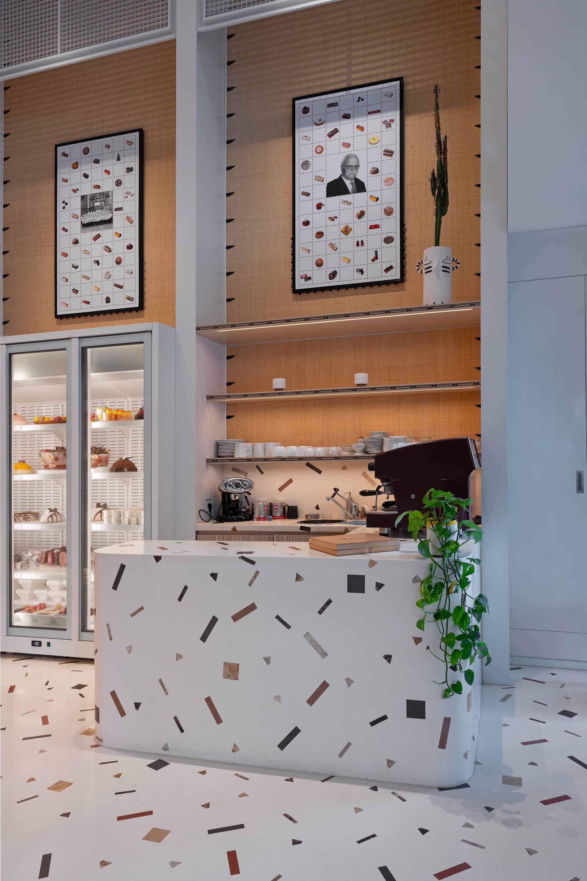By integrating cake-making materials into architecture, Cannelle establishes a cohesive identity, where the essence of their culinary creations permeates the very foundation of their space.