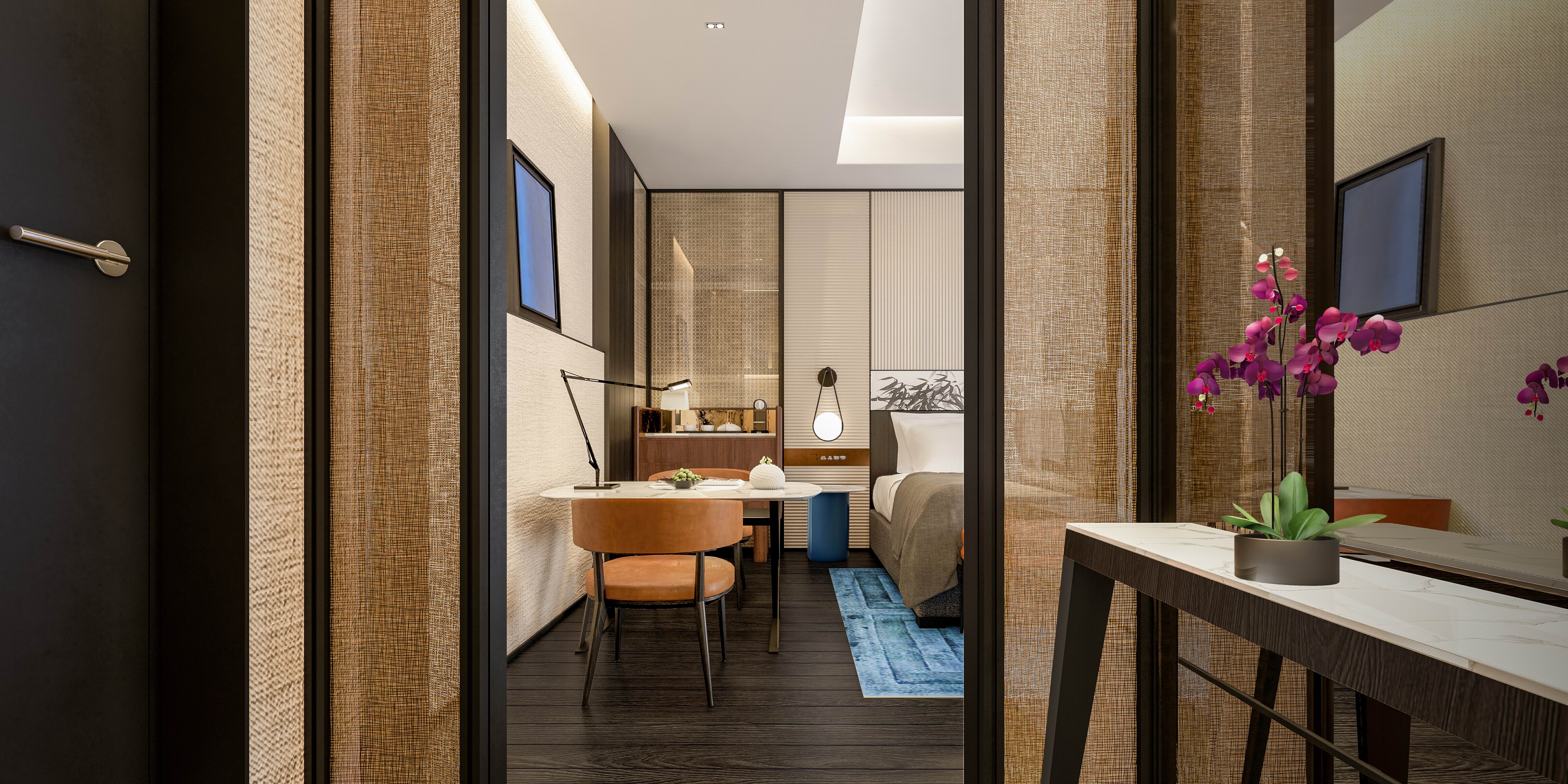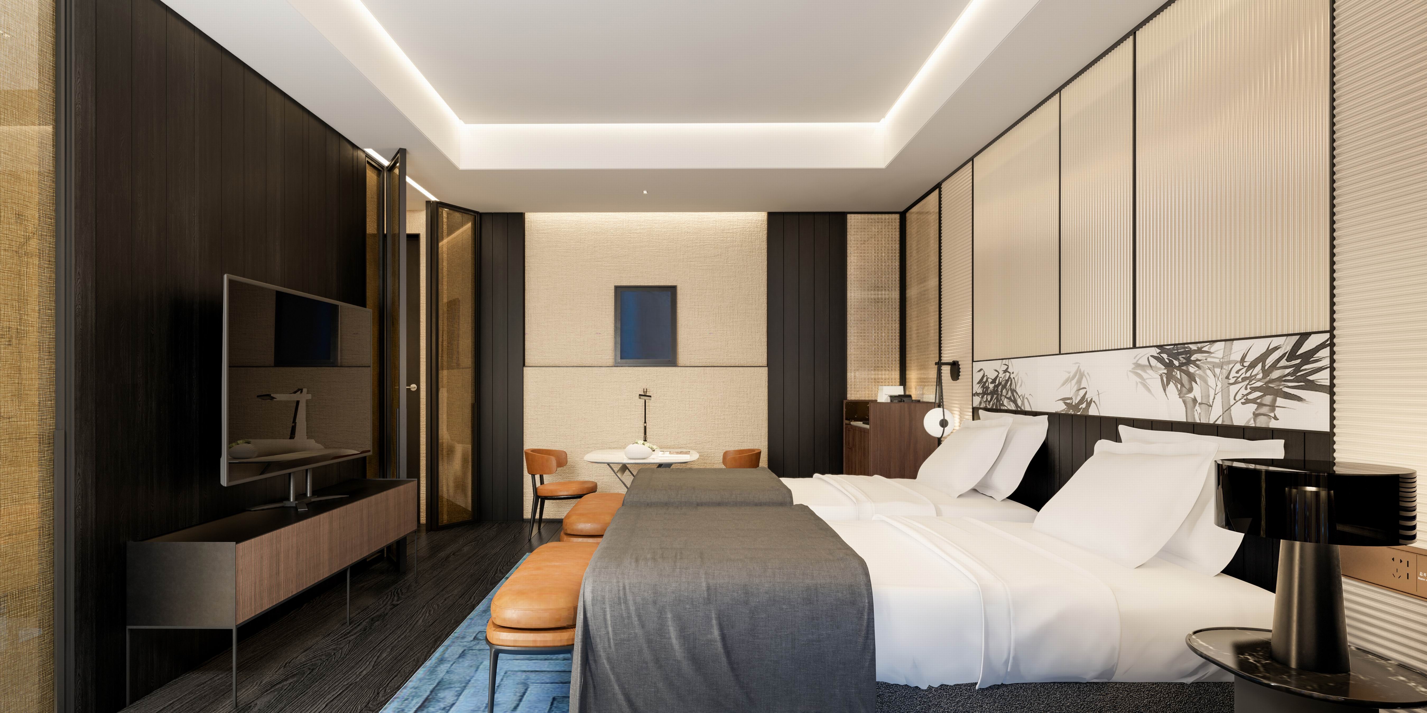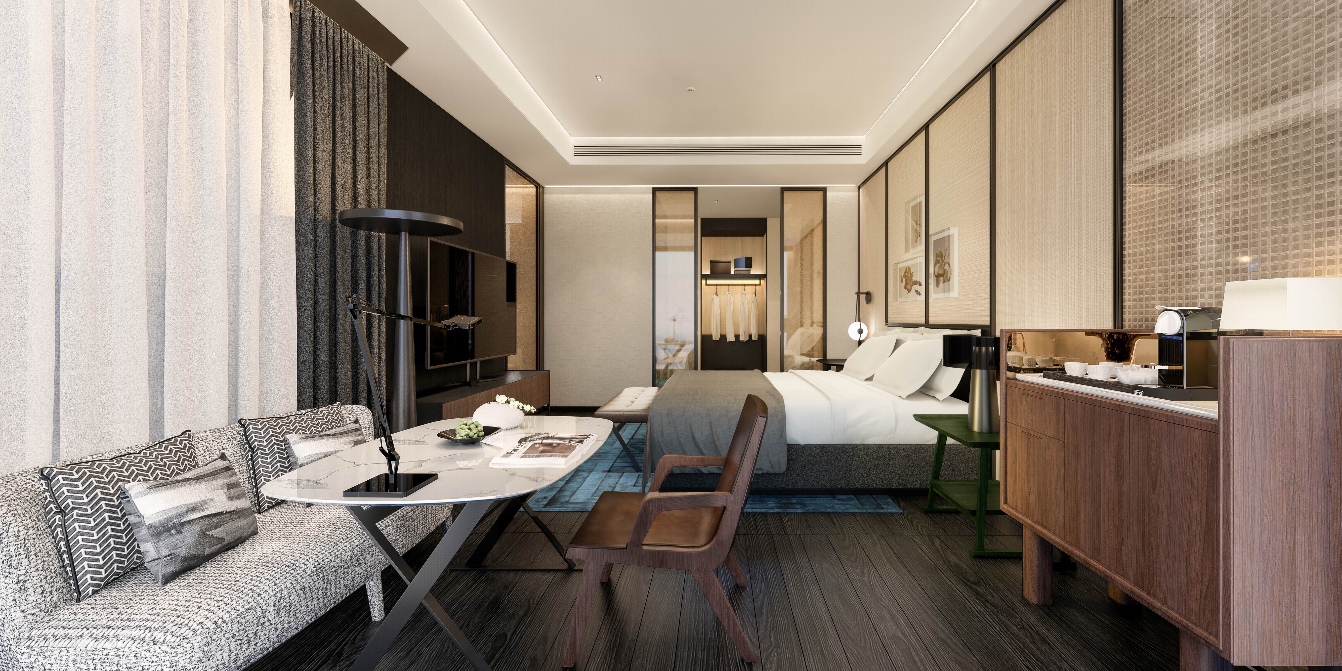 The guest room design is ingeniously crafted, with designers effortlessly blending classical and contemporary, Chinese and Italian cultures, combining tradition and modernity, showcasing a simple and luxurious style, spacious space, and comfortable furniture arrangement, giving people a sense of tranquility.