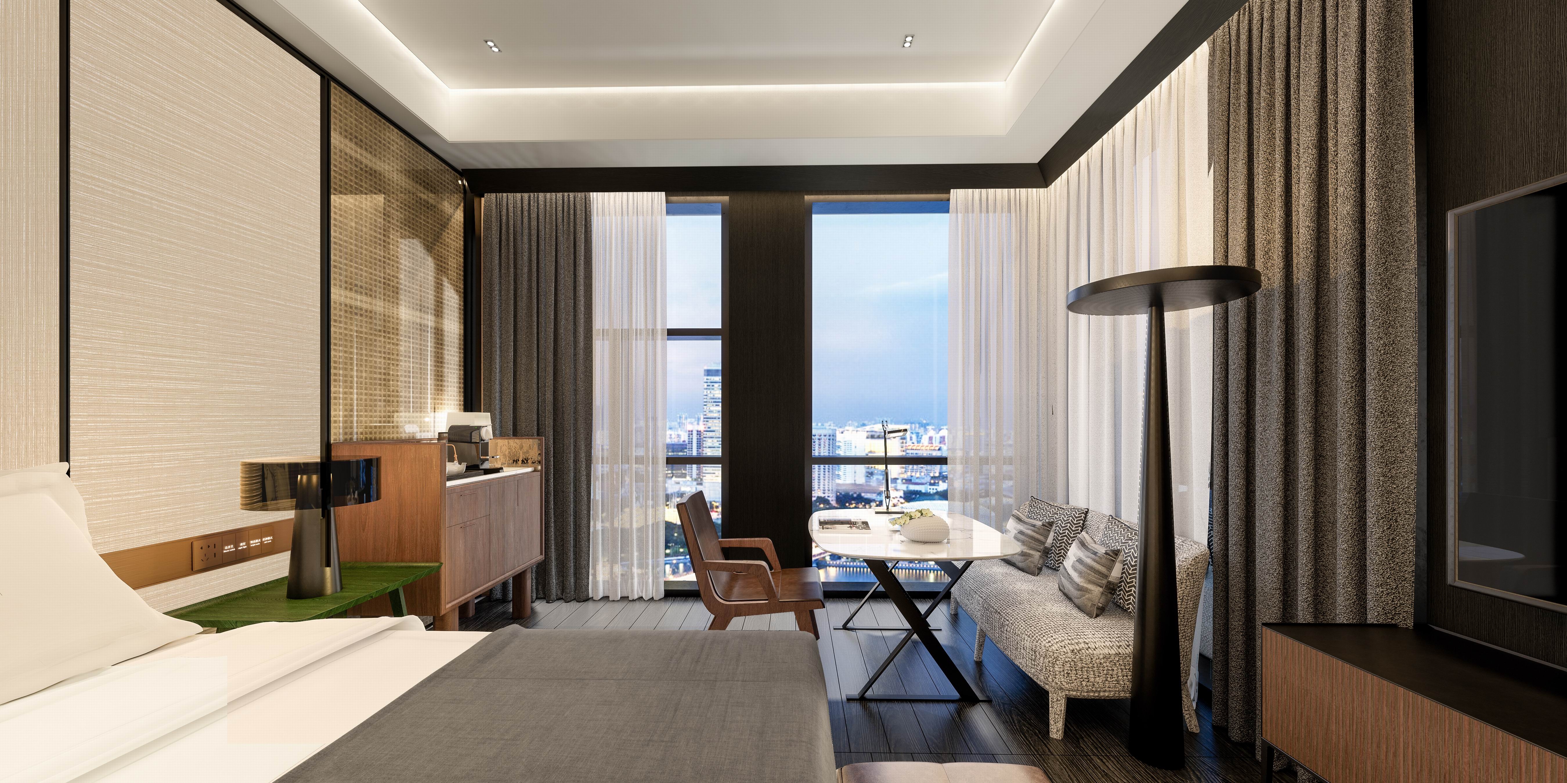 The designer hopes to create a lifestyle in the hotel that is different from traditional ones, bringing guests comfort, convenience, and perfect service beyond expectations. The hotel is mainly made of matte black granite and light colored stone, with detailed design complemented by carefully polished teak and brass, which complement each other and interpret a low-key luxury aesthetic.