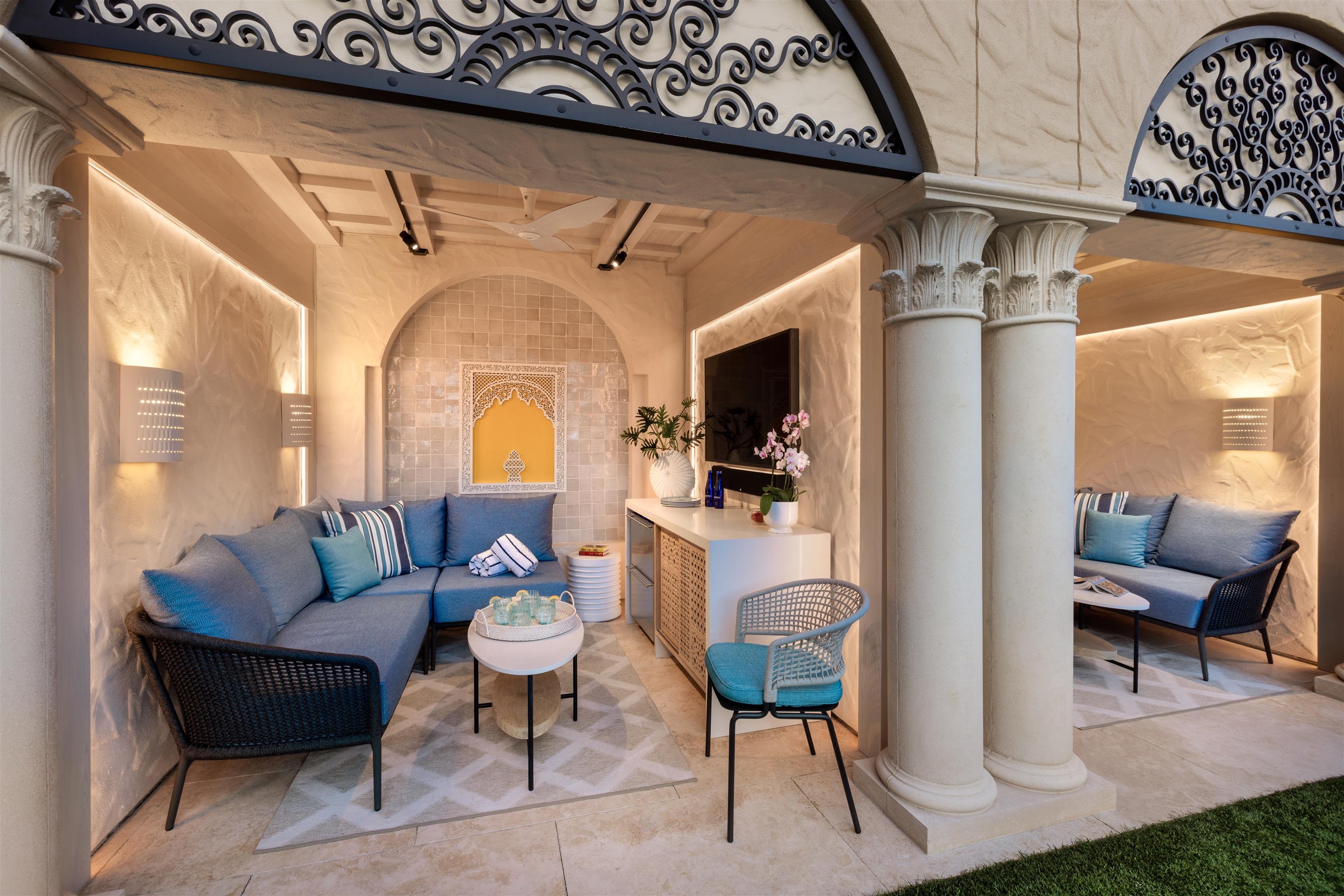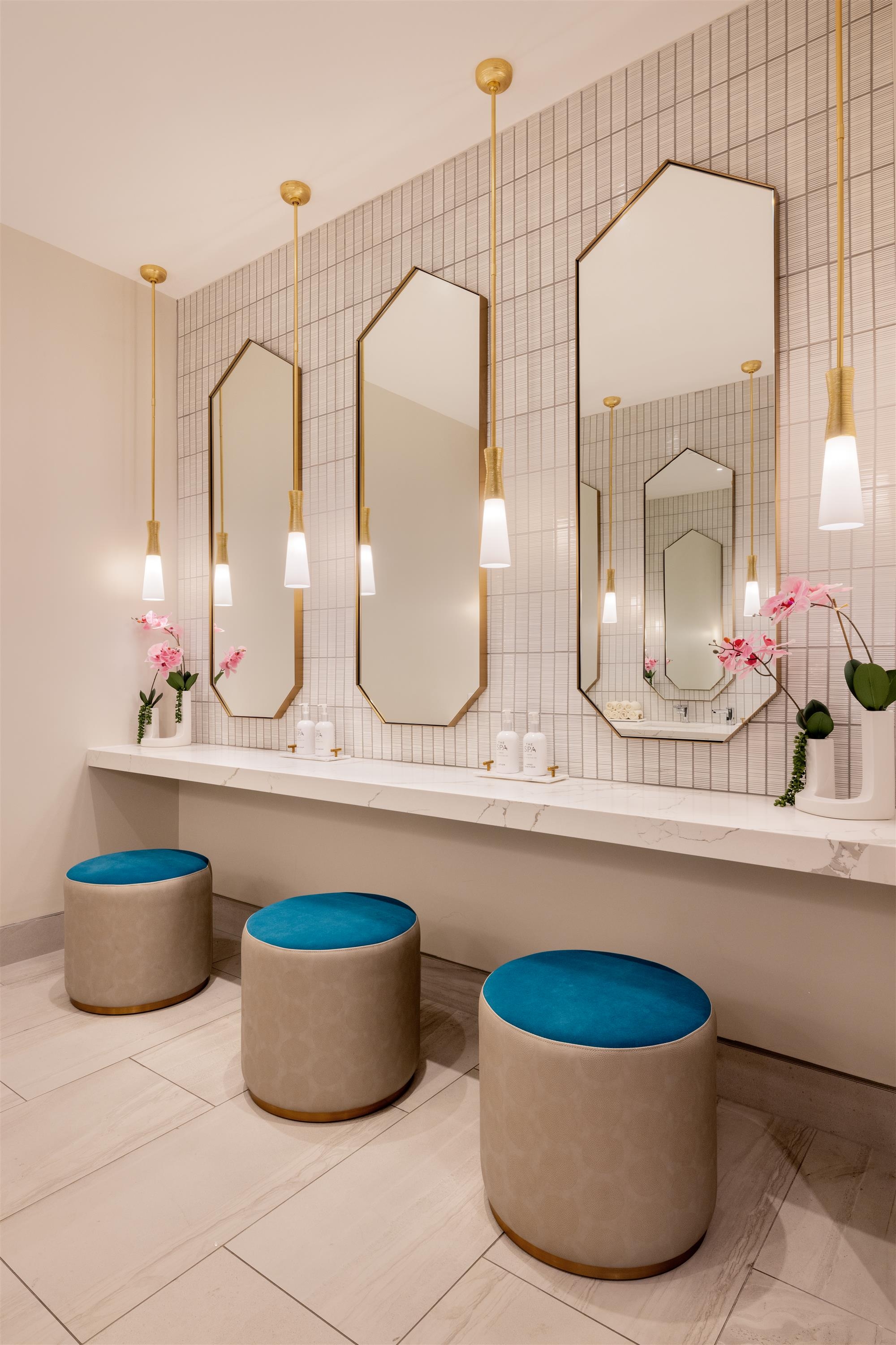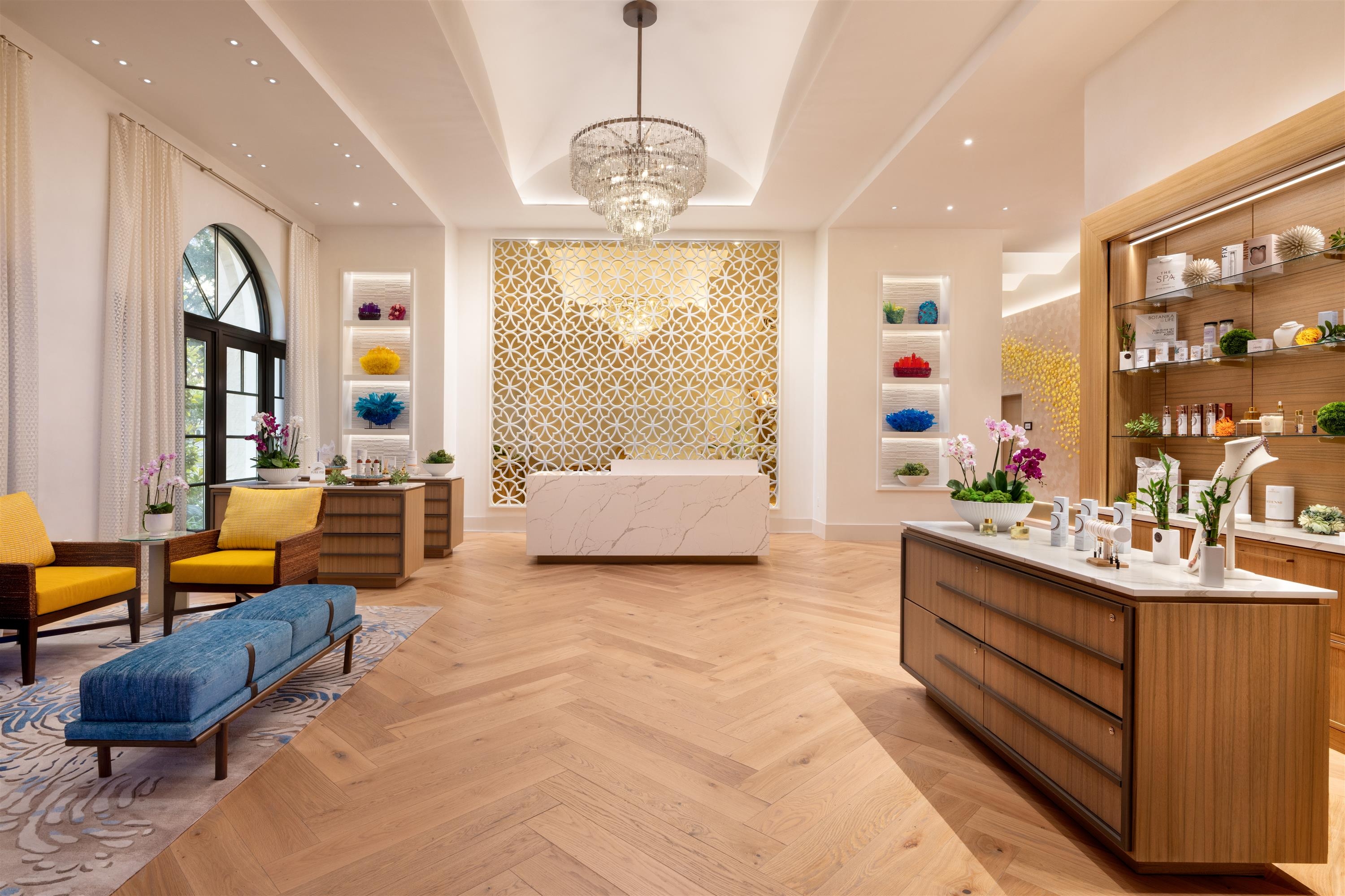 The 13,500-square-foot Spa offers an oasis of floral-inspired elegance, with seven treatment rooms, hydrotherapy amenities, and a fitness center. Outdoors, a 6,000-square-foot deck features a pool, cabanas, and a Moroccan-inspired social space for evening events, blending serenity and vibrancy.