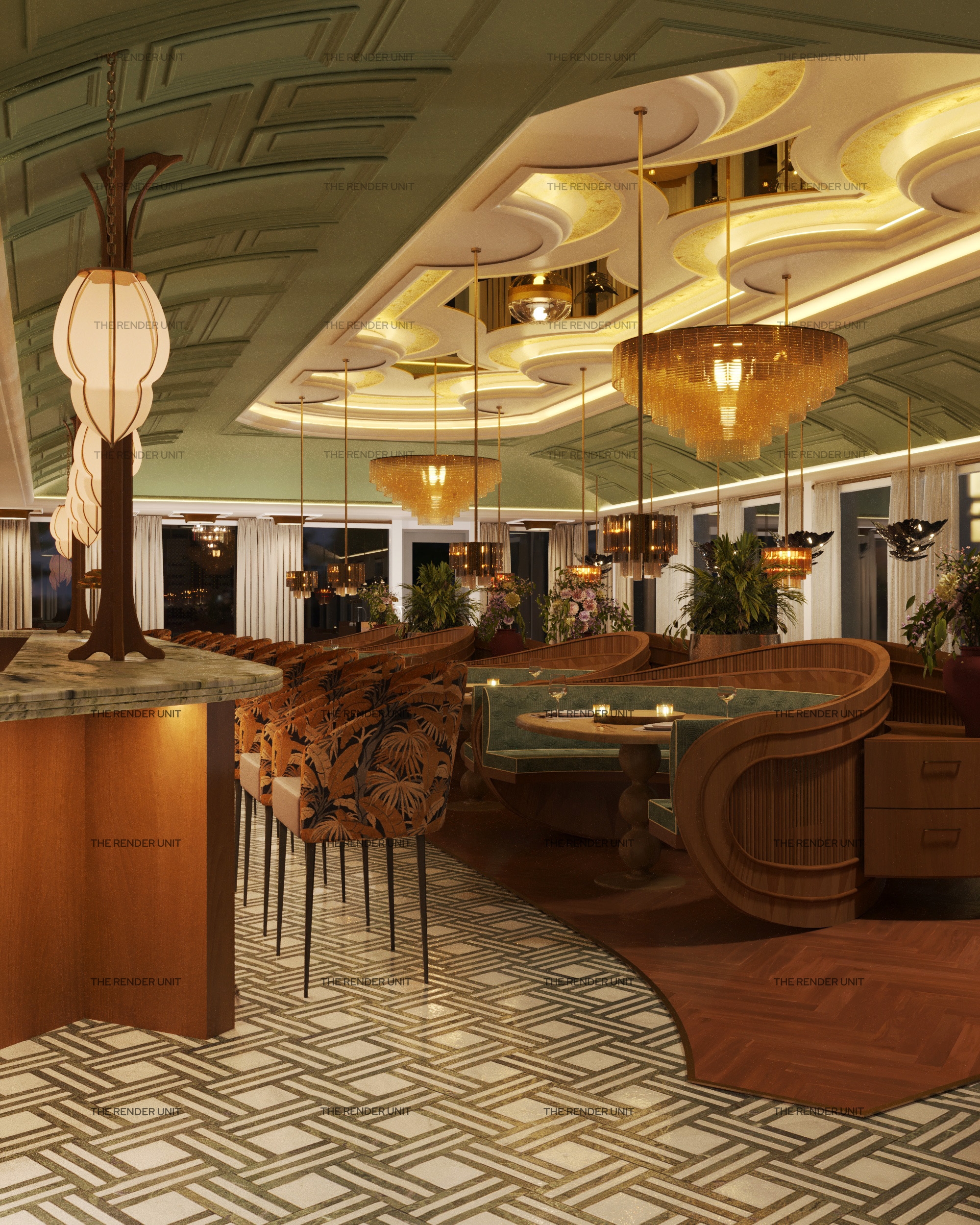 DEPWAH will provide a refined and immersive dining experience in the heart of Scottsdale. Both indoor and outdoor dining areas draw inspiration from classic French cafes and brasseries with a modern Vietnamese-inspired tone. Showstopper moments include an intricate Art Nouveau bar and the vaulted ceiling with abstract picture frame molding.