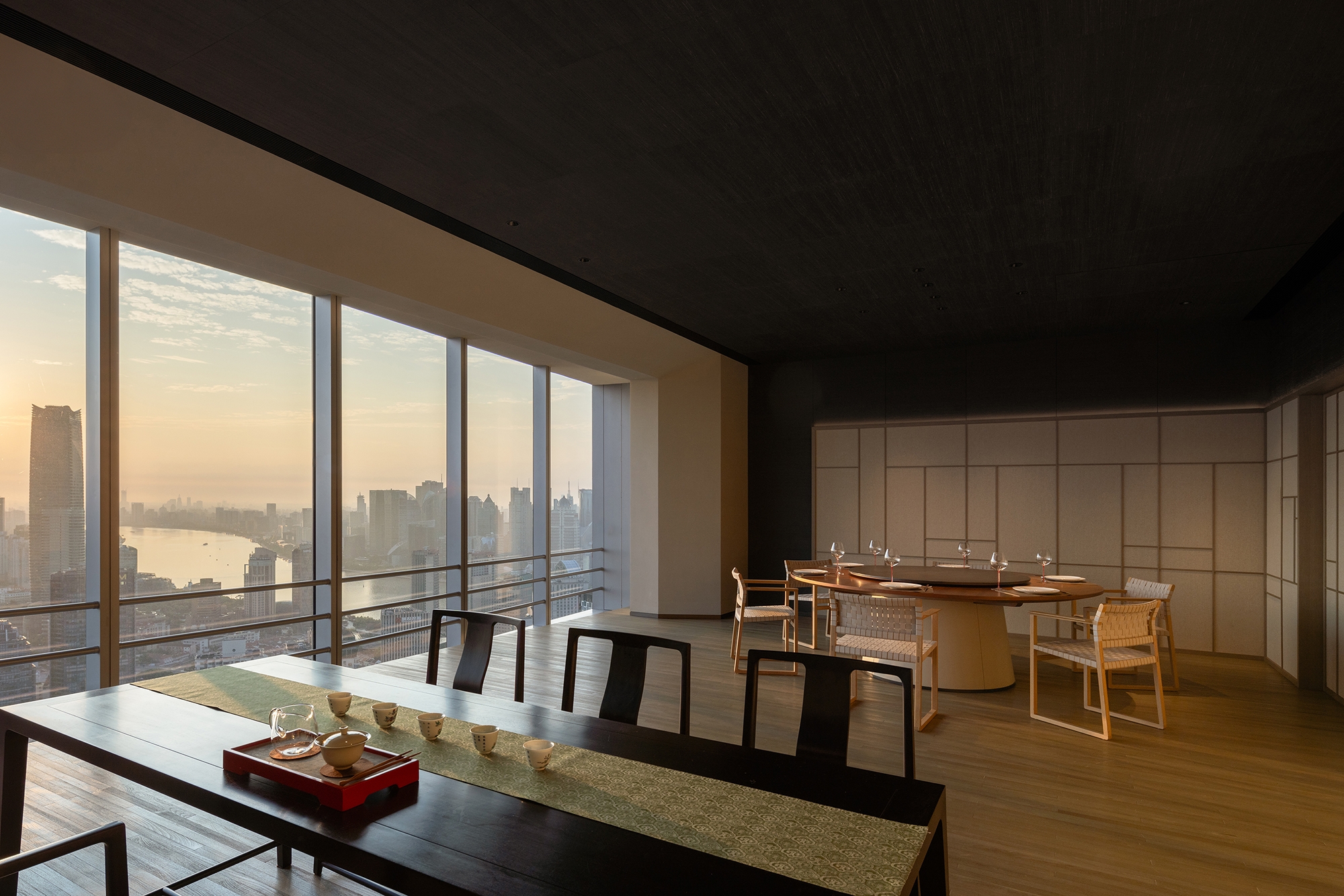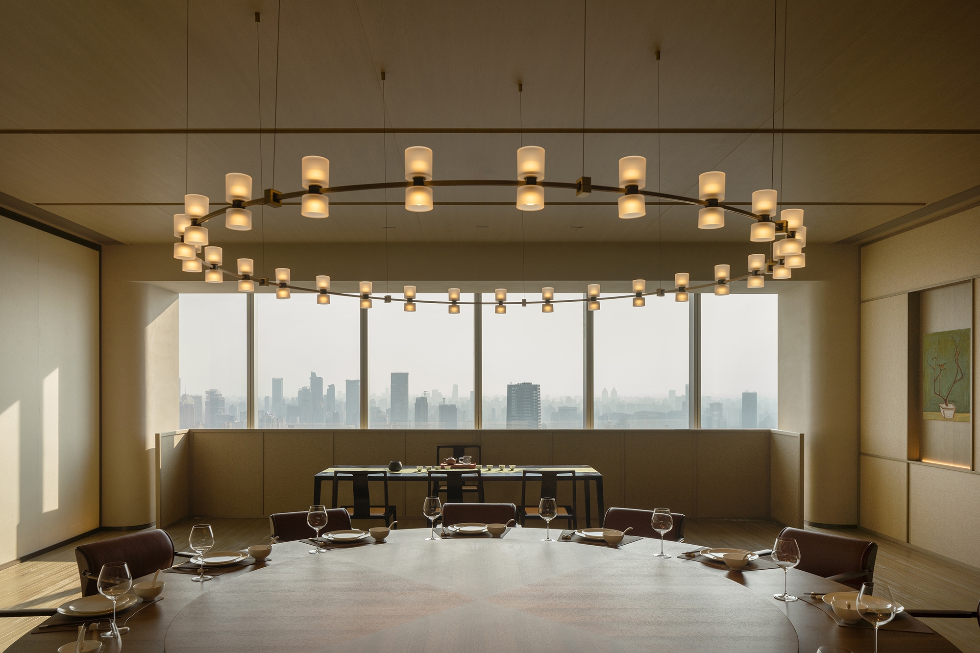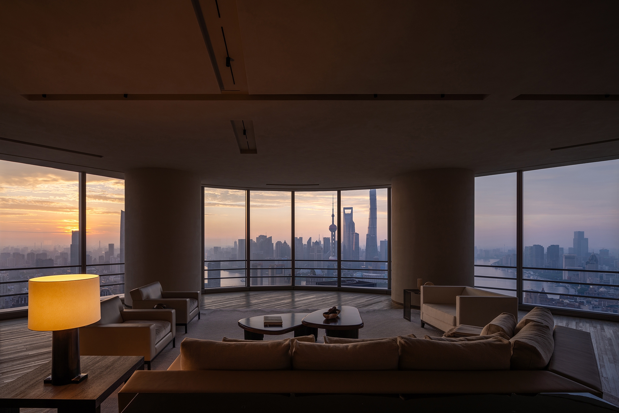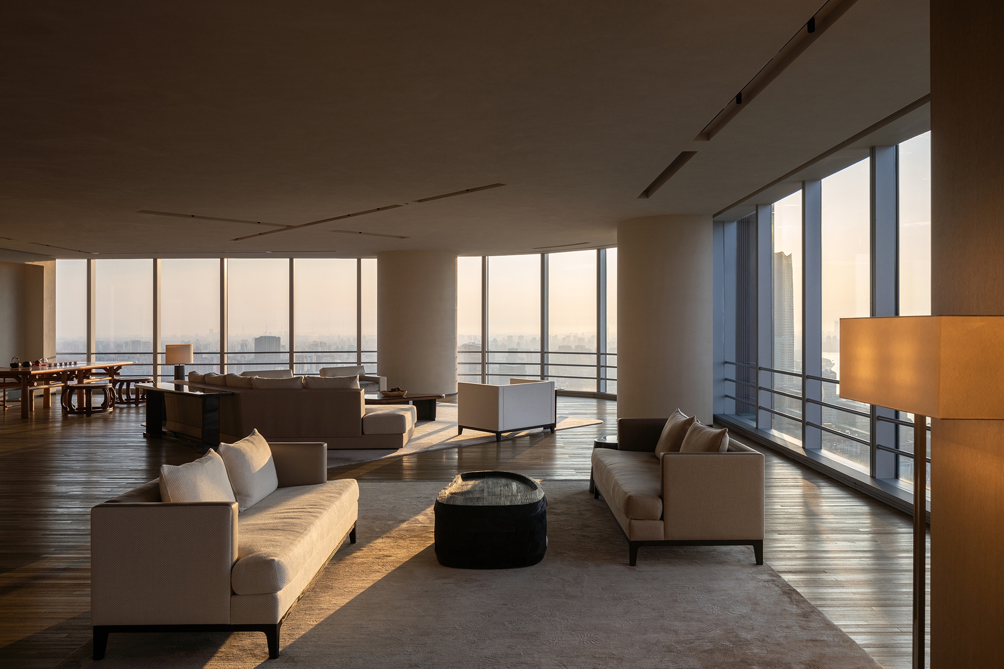 H!TIME ART CENTRE, a "cloud lounge" exclusively for BUND ONE residents, sits on the 53rd floor of CITIC Plaza. Offering a breathtaking 360° panoramic view, it captures the iconic skyline of Lujiazui and the Bund, seamlessly blending the vibrancy and serenity of Shanghai.Embracing the elegant, authentic lifestyle coveted by the urban elite, the design combines exceptional location, unparalleled views, and serene luxurious spaces to effortlessly exude an understated sense of refinement.