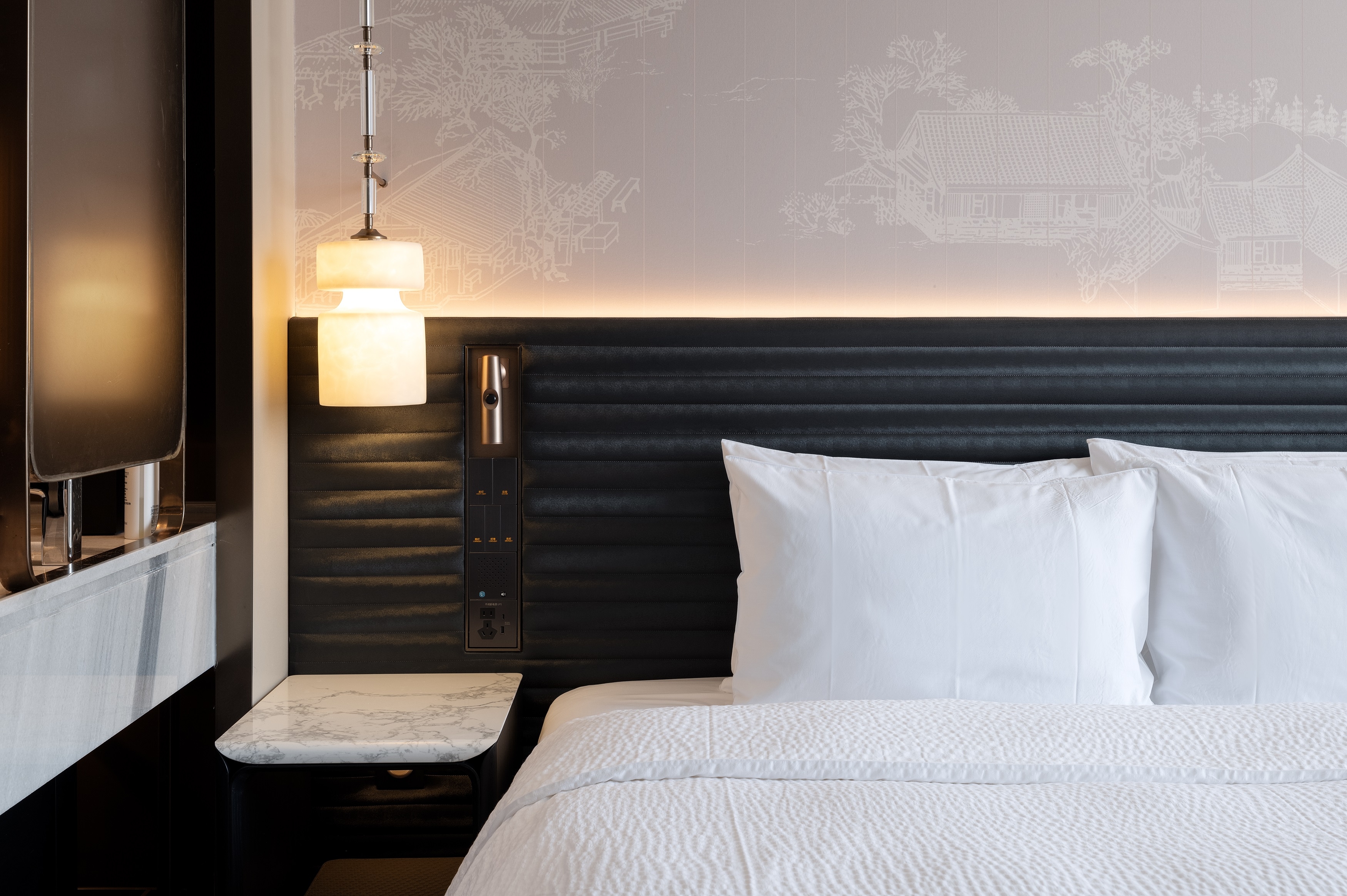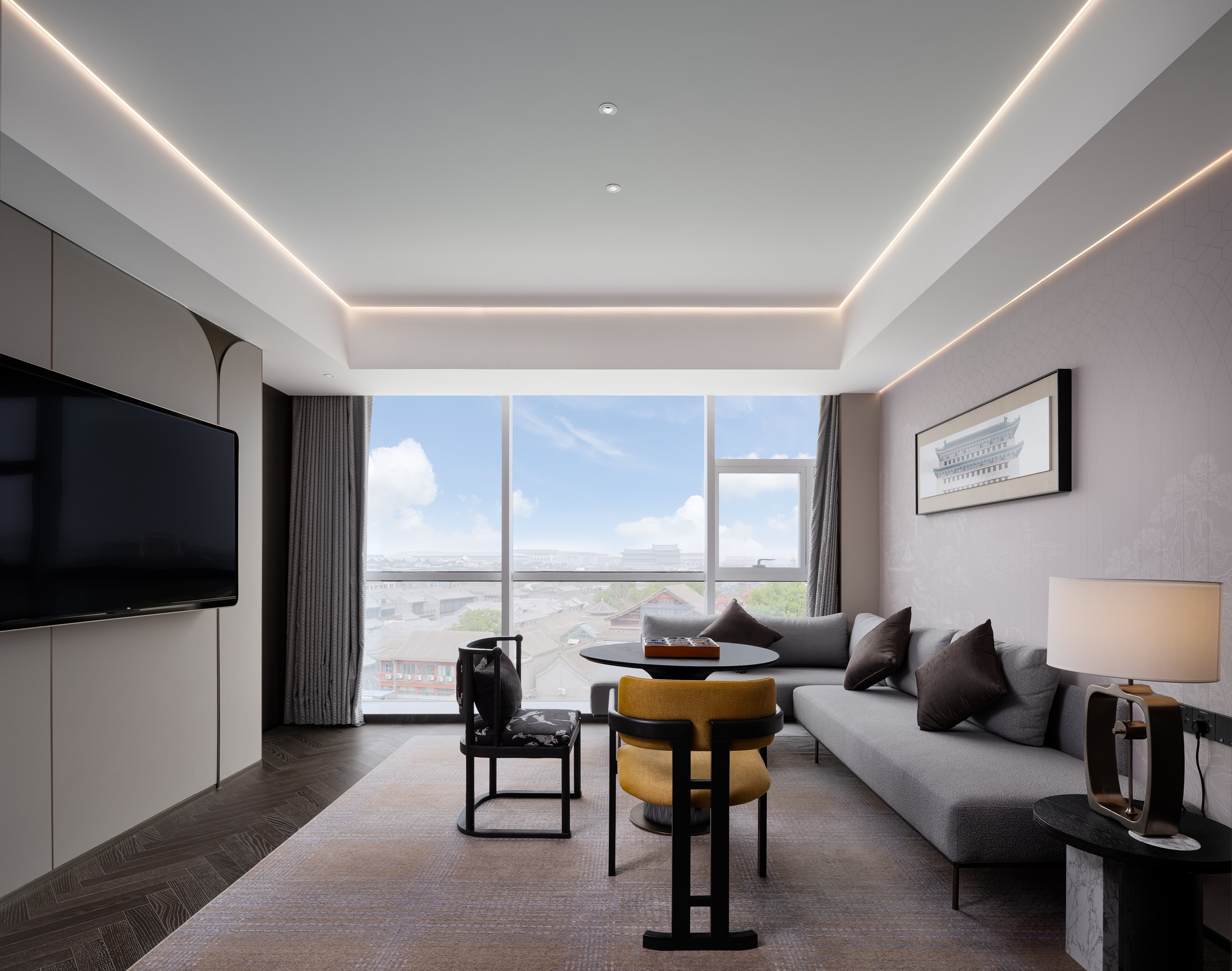 The hotel is situated adjacent to Qianmen Street, which lies along Beijing’s central axis. This ancient thoroughfare, first established in the 29th year of the Jiajing reign during the Ming Dynasty (1550), carries profound historical significance and cultural heritage. The hotel adopts the “Academy” as its central theme, offering an in-depth interpretation of Beijing’s cultural essence while closely aligning with the historical and cultural legacy of Qianmen Street. This creates a distinctive atmosphere where tranquility coexists with wisdom. The hotel’s design masterfully combines classical elements with contemporary design philosophy, embodying the unique character of “simplicity within complexity, innovation within tradition”, allowing guests to experience the cultural charm of ancient and modern convergence amid the bustling metropolis.