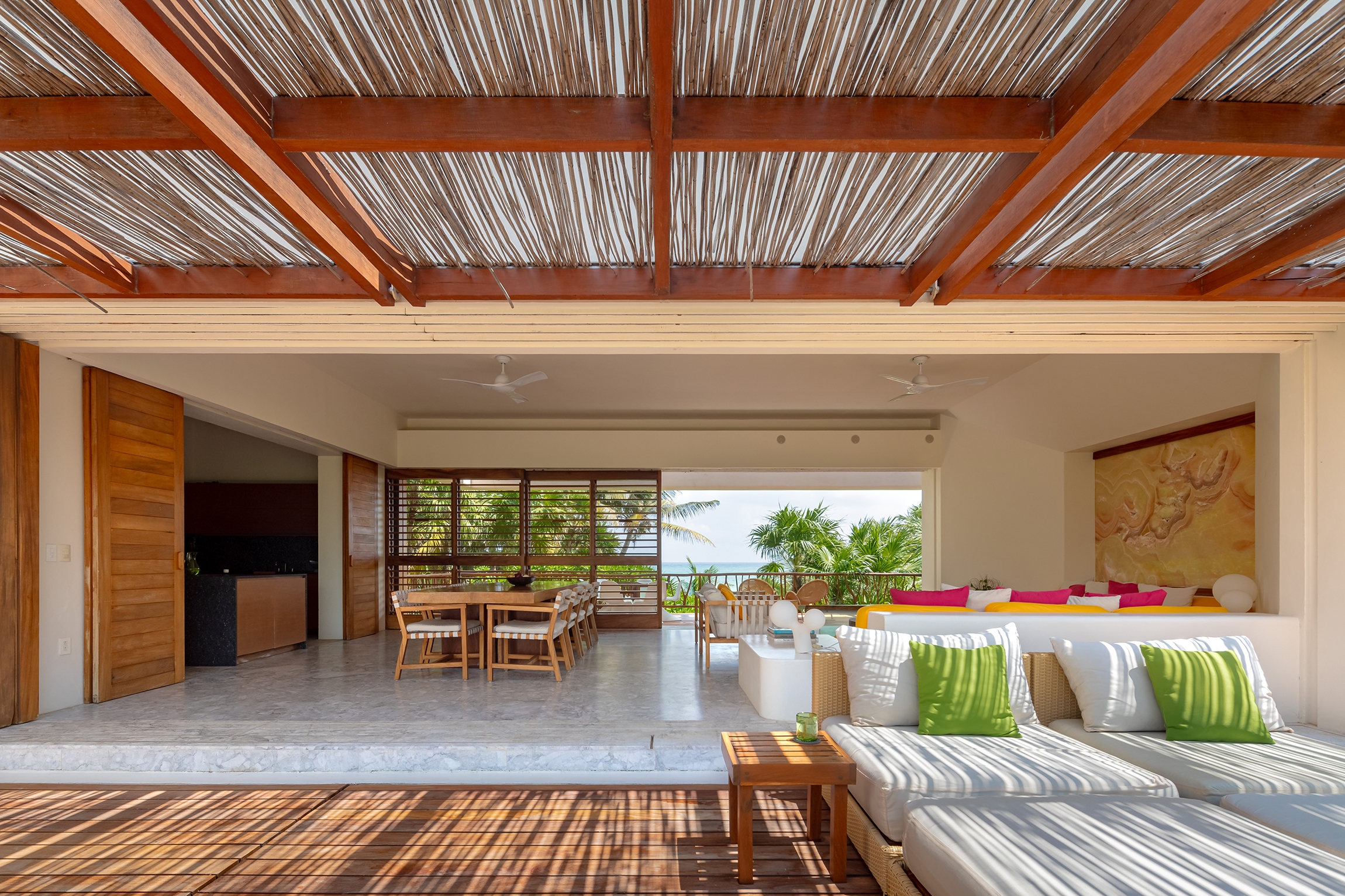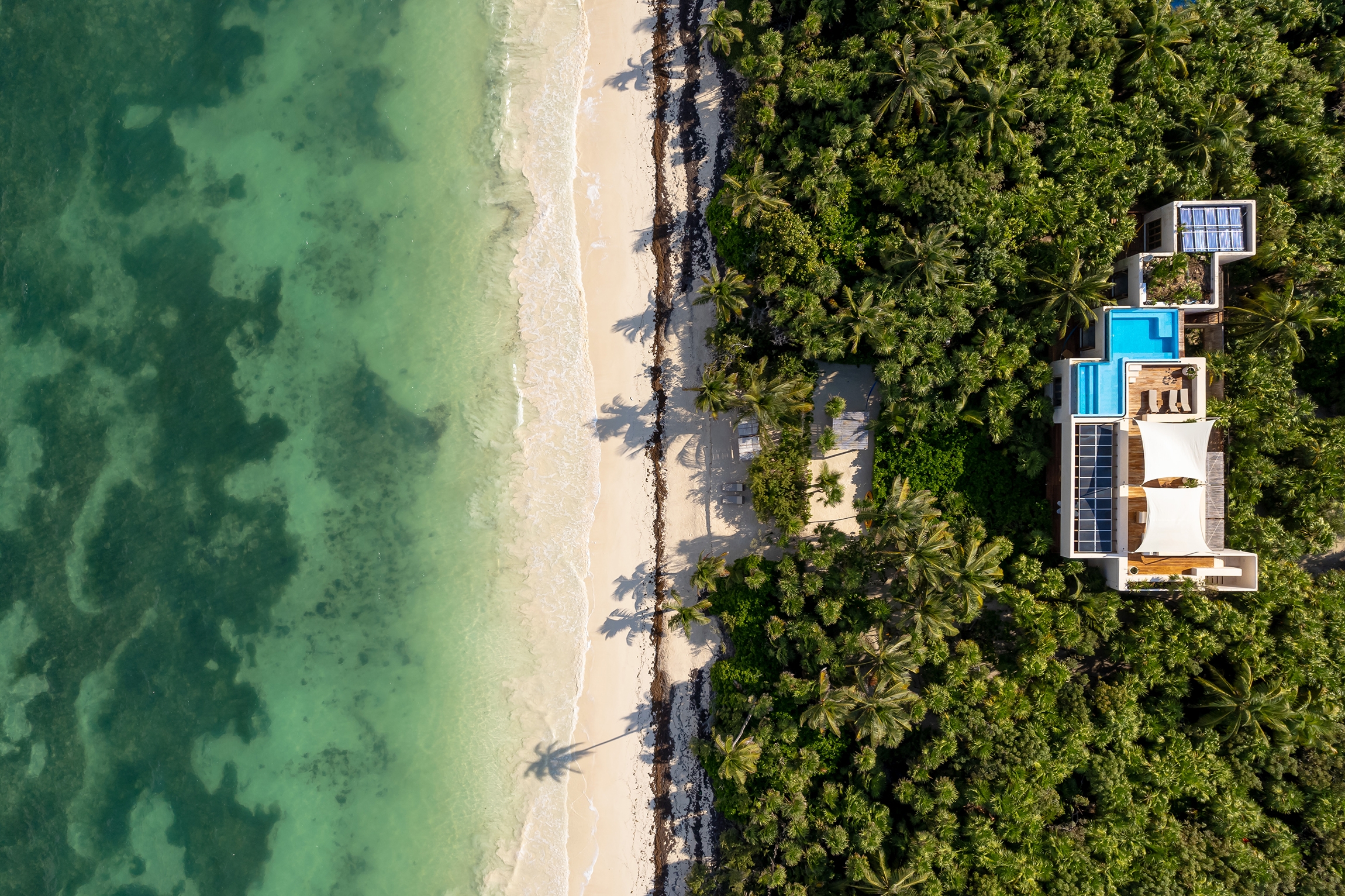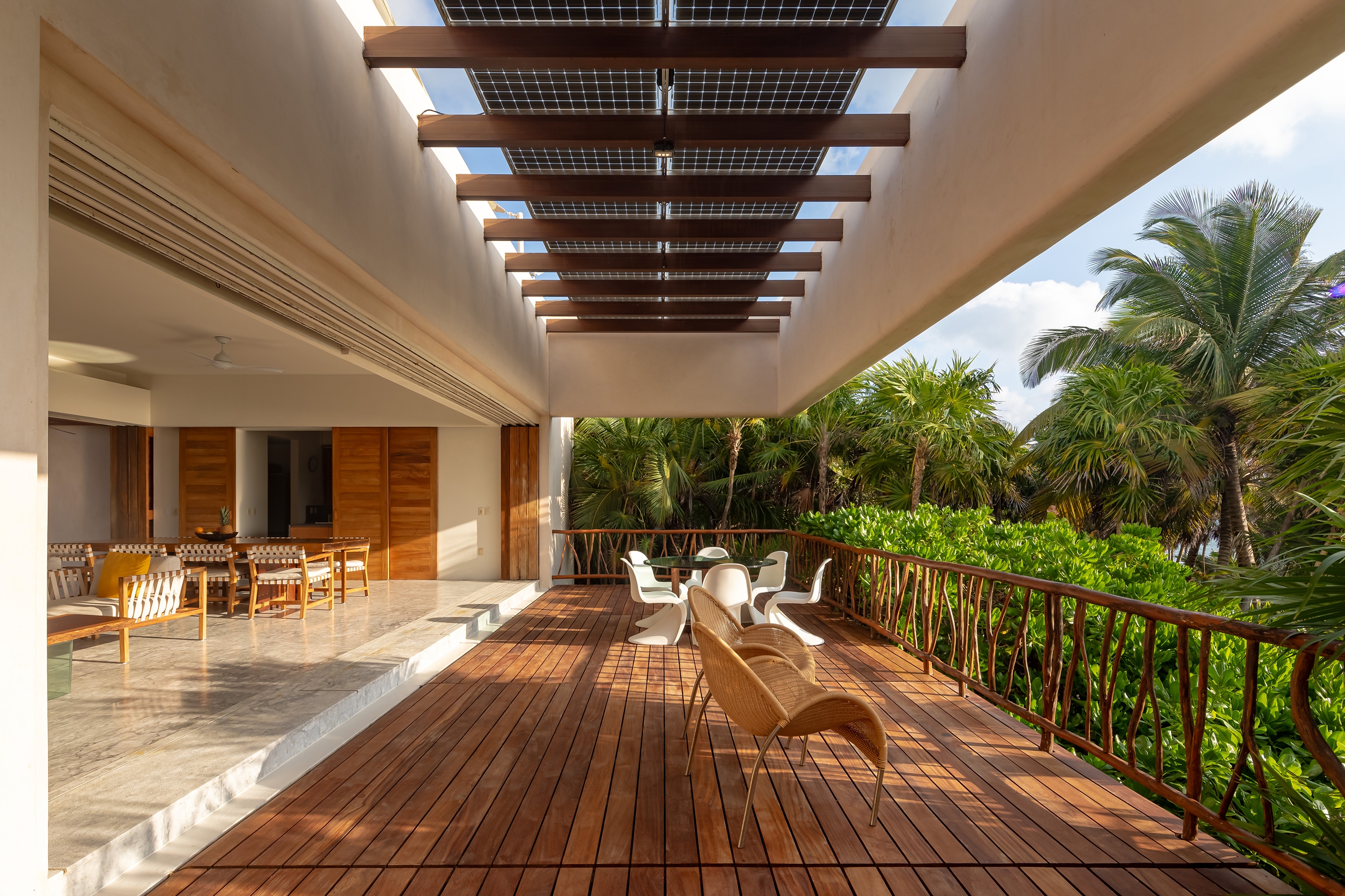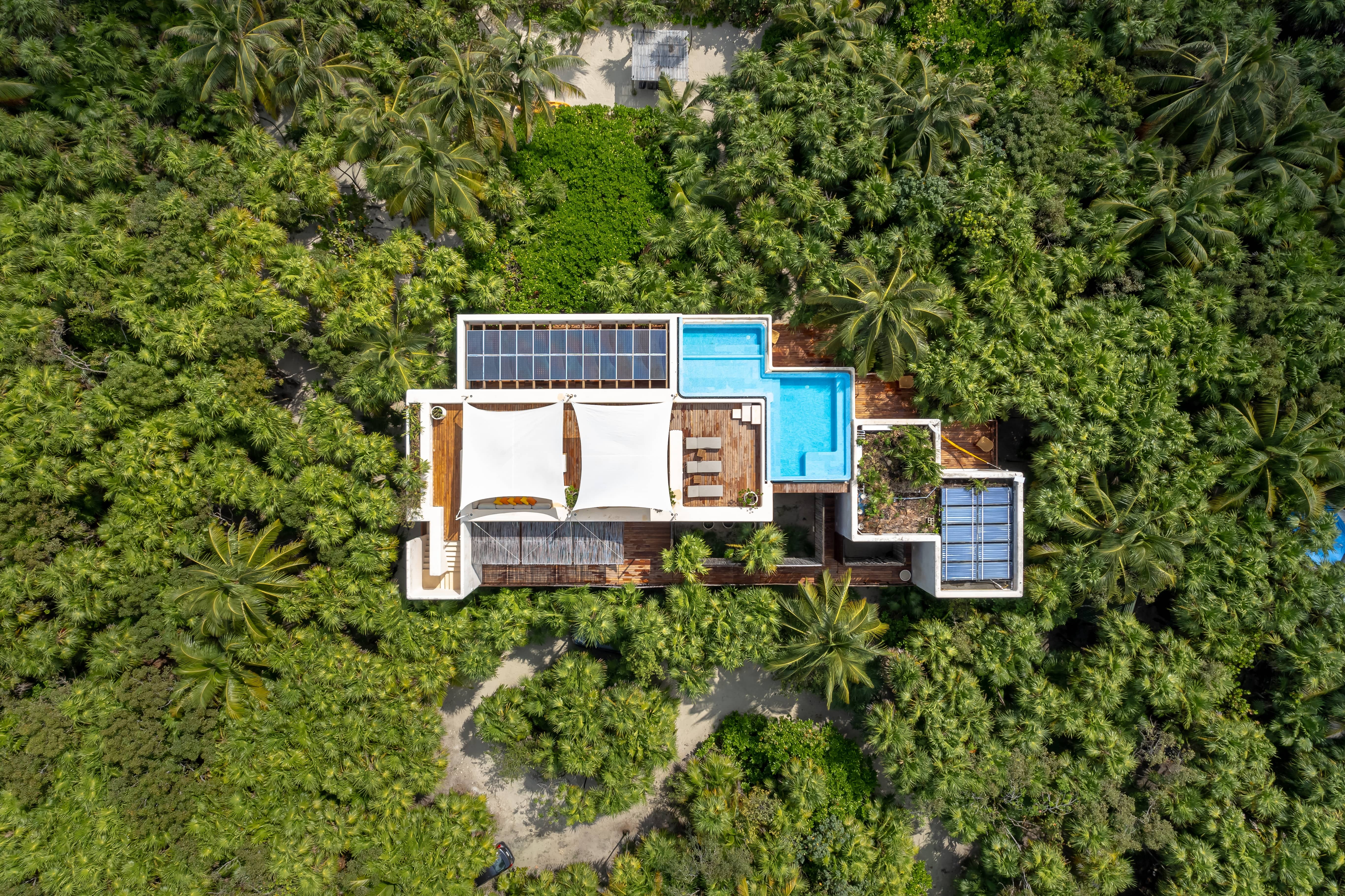 Casa Ikal is a secluded beach retreat located in Boca Paila, within the Sian Ka’an Biosphere Reserve in Quintana Roo, Mexico. Set between the Caribbean Sea and a mangrove lagoon, the house blends contemporary design with deep environmental respect. Elevated on concrete stilts, it allows native vegetation and wildlife to thrive beneath, minimizing ecological impact. Designed as a family vacation home, the project uses local materials like chukum and certified machiche wood, enhancing sustainability and regional identity. The layout orients all spaces toward the sea and lagoon, with terraces, patios, and native gardens fostering constant interaction with the surroundings. Passive strategies—cross ventilation, natural shading, thermal-mass walls—combine with active systems like solar panels, wind turbines, and water harvesting to ensure energy efficiency and self-sufficiency. More than a home, Casa Ikal is a beach destination that redefines responsible luxury, offering a sensory, immersive experience fully integrated into one of Mexico’s most extraordinary natural settings.