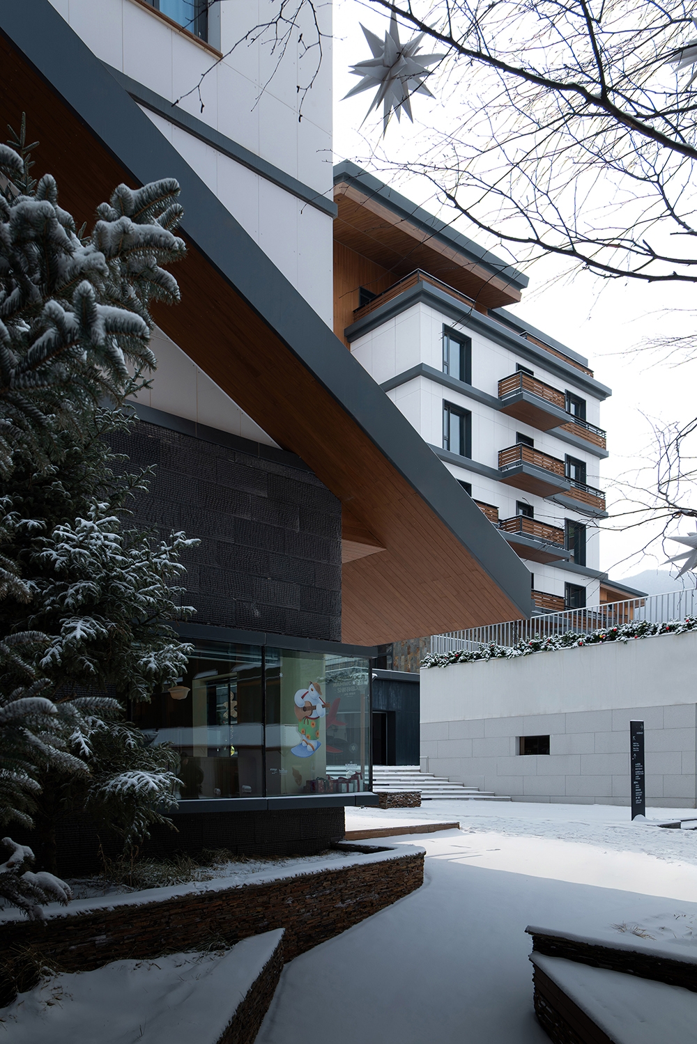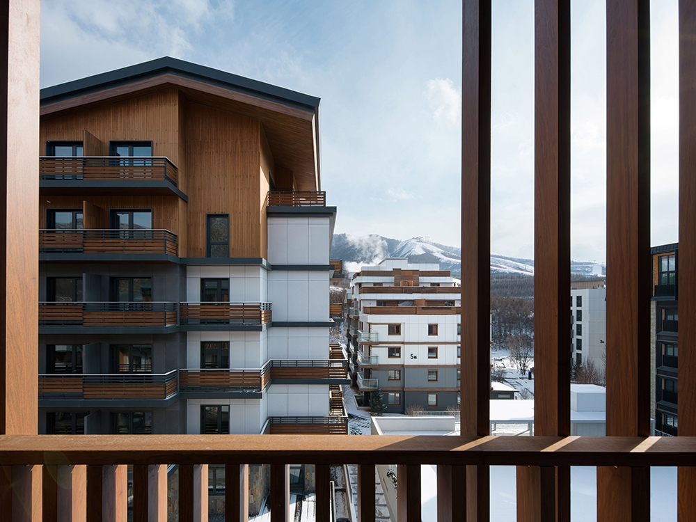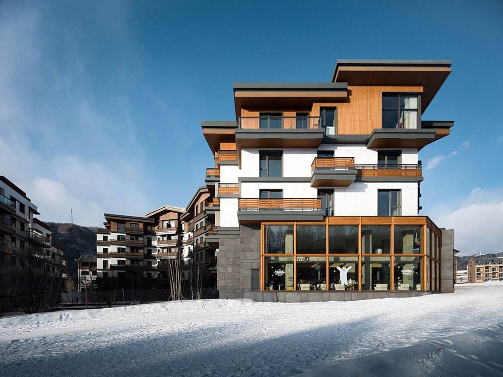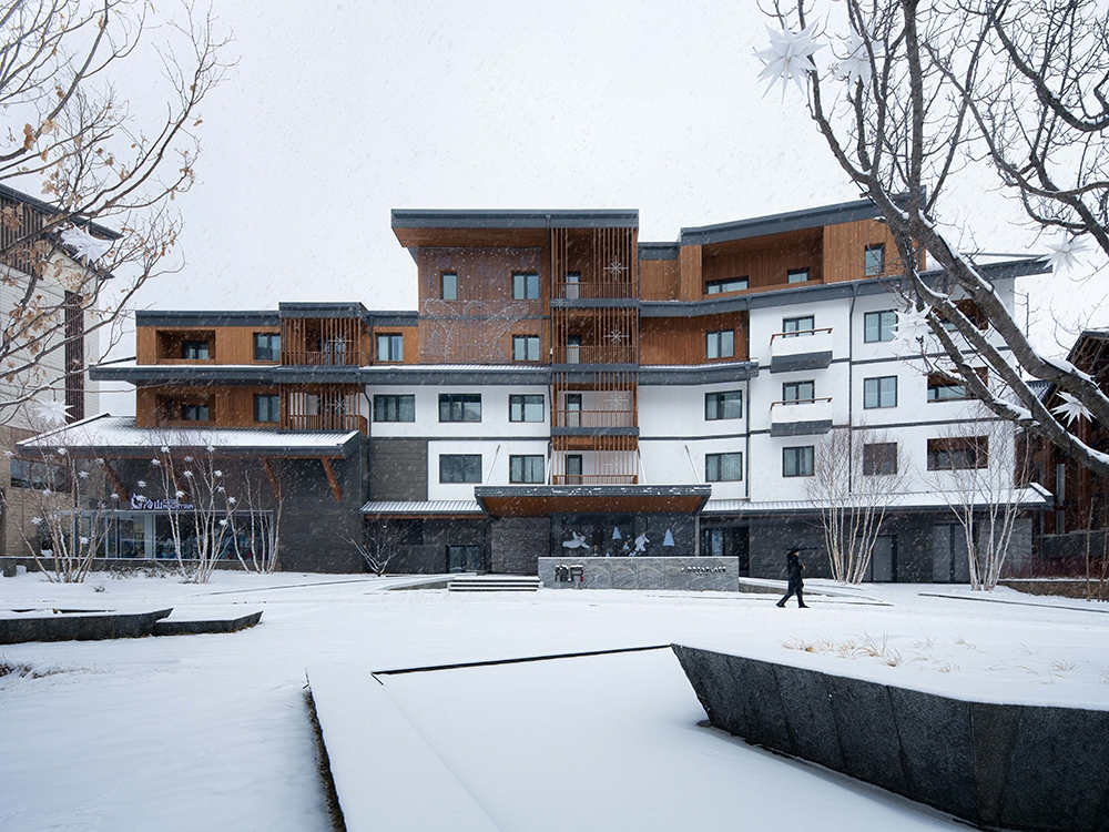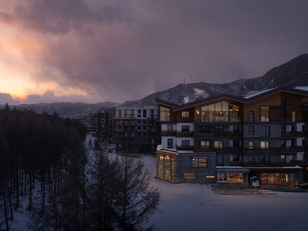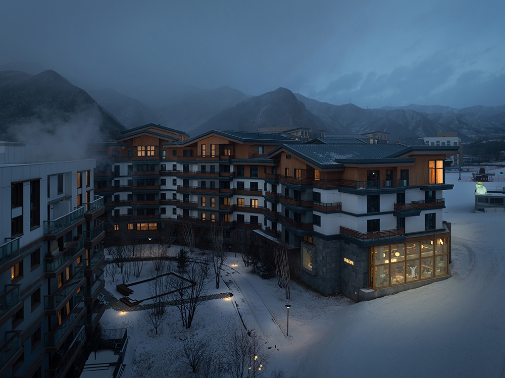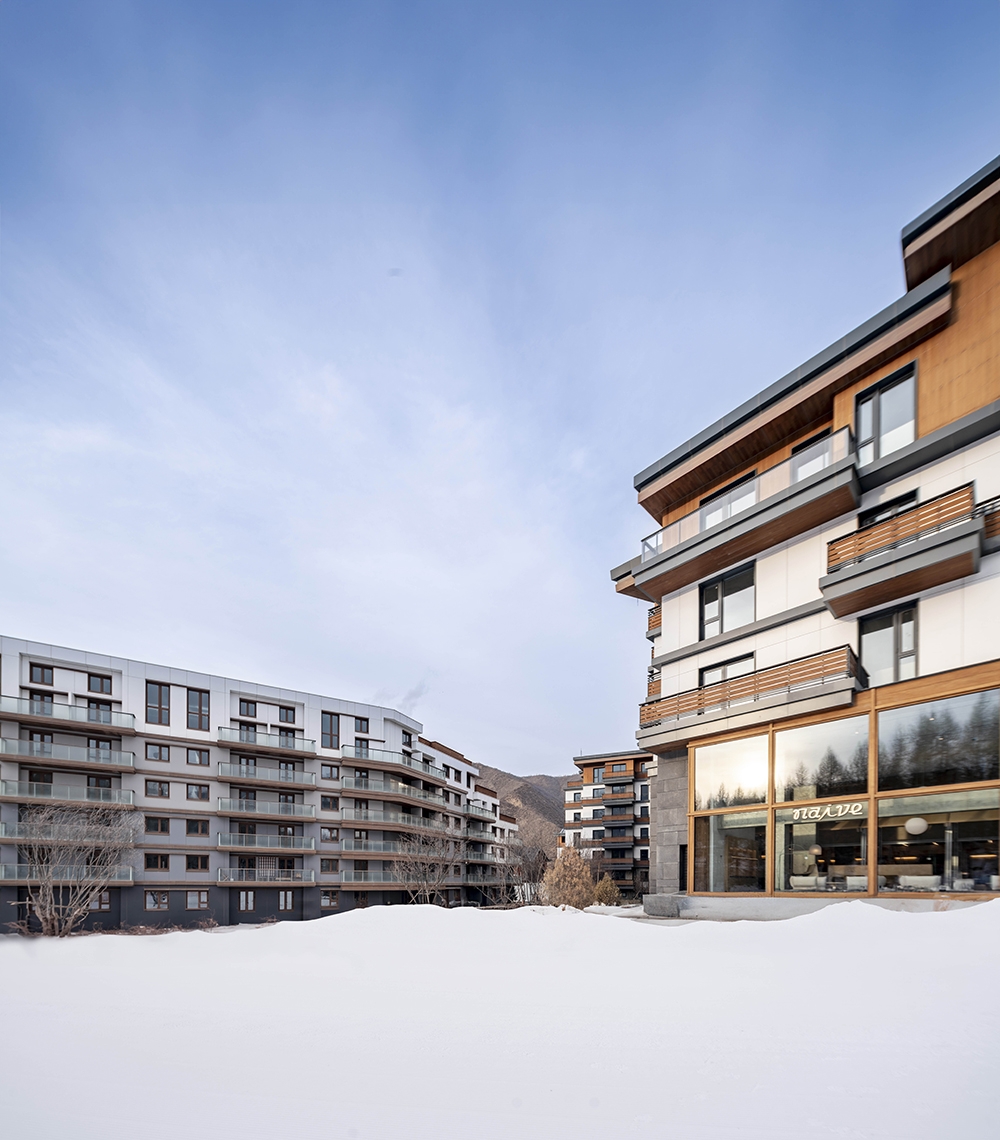 As one of the main venues for the 2022 Beijing Winter Olympics, Chongli has become a hub for China’s ice-and-snow economy. After years of robust development, the region is now renowned for the country’s most concentrated ski resorts, with ski tourism now serving as the backbone of local economy. As chief planner and architecture consultant, designRESERVE has contributed to create a new landmark in the valley. The design philosophy breaks away from the traditional Alpine cottage prototype, instead drawing inspiration from rural settlements of East Asia in sub-frigid zone to explore a contemporary architectural language for mountain dwelling. To address Chongli’s harsh climate, the team crafted flexible, undulating rooflines and meticulously calibrated openings to optimize indoor comfort. Building profiles were strategically shaped to balance natural light and enclosure during winter, creating a rhythm akin to natural mountain contours. Vertically, stepped balconies and gradients of materials and colors soften the buildings’ visual mass while hinting at change of function.