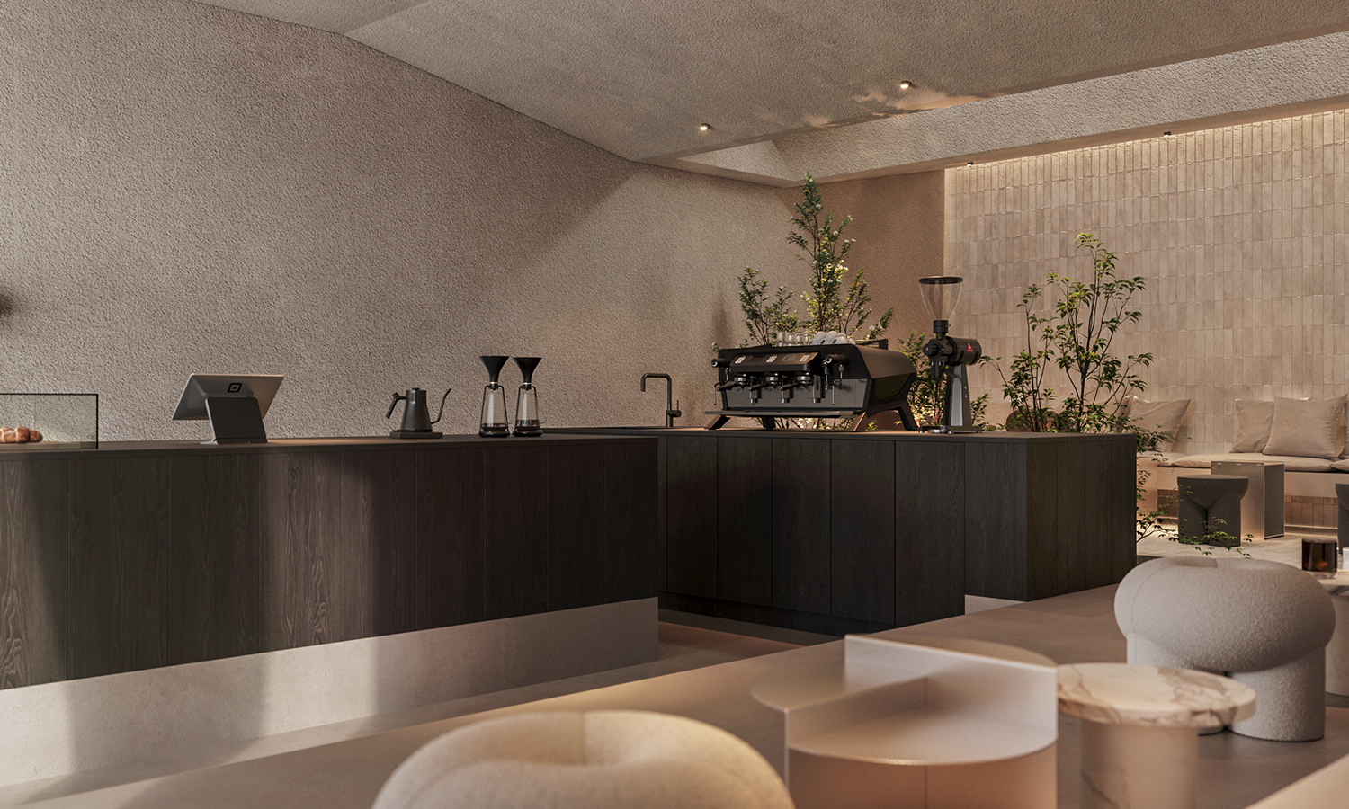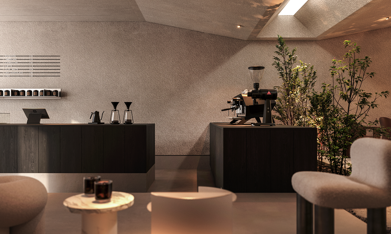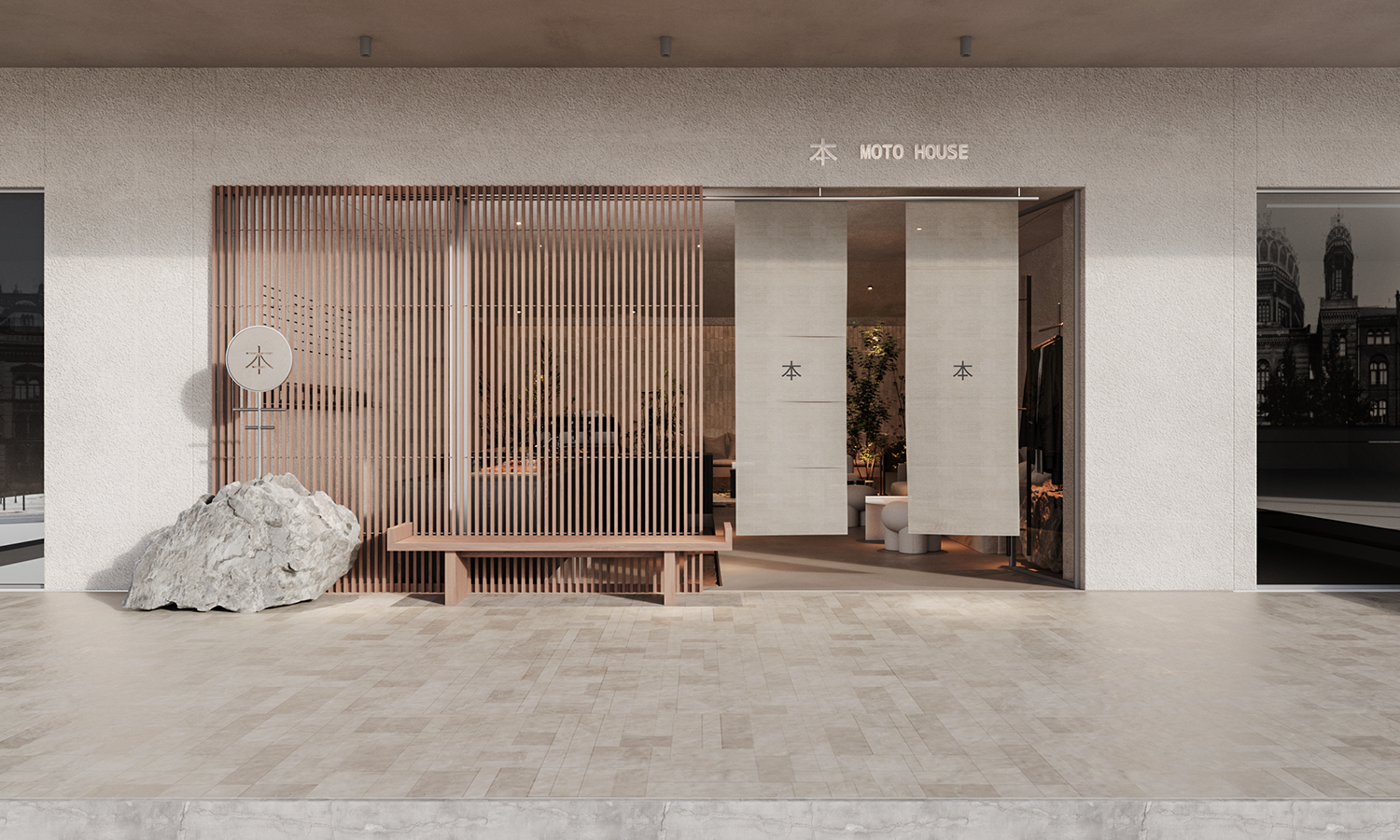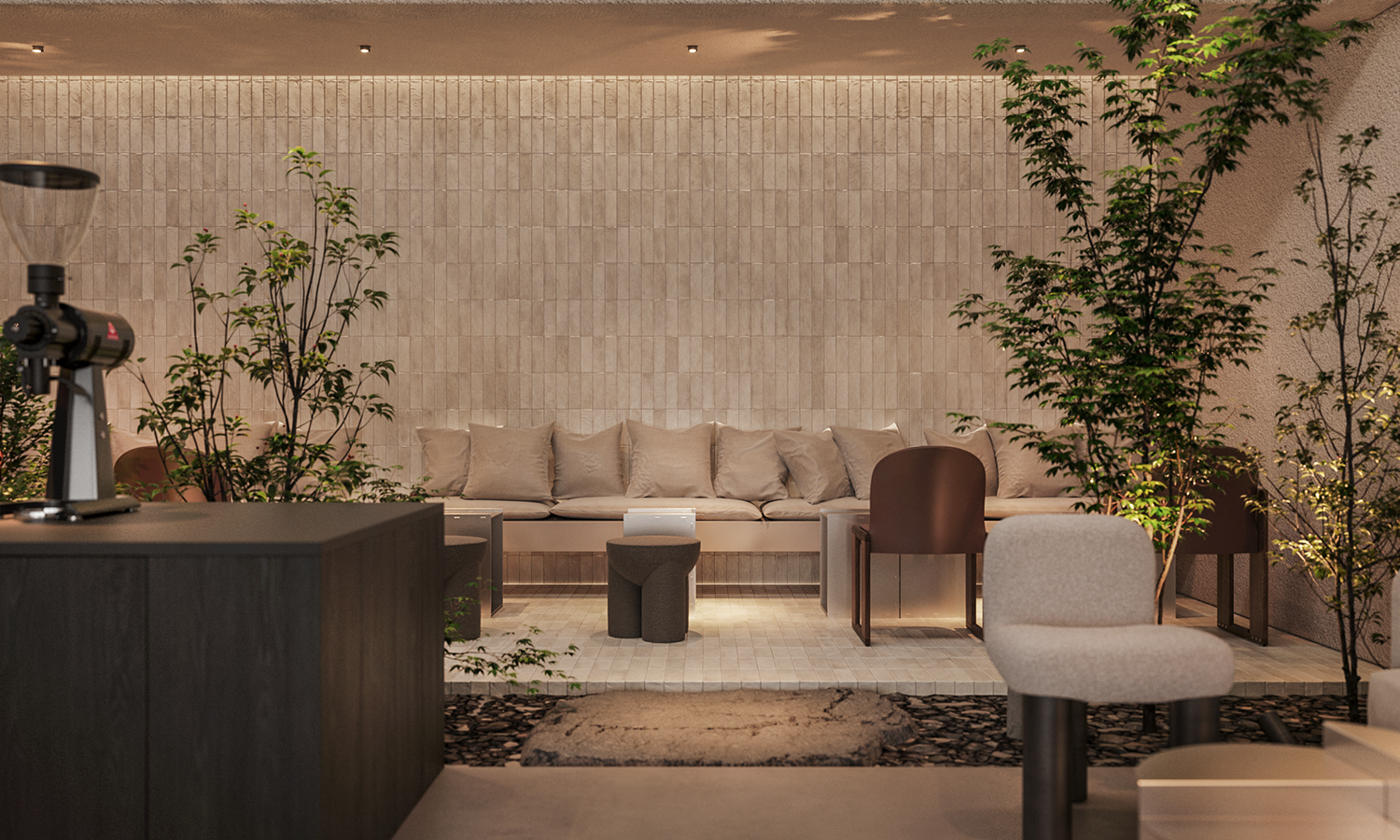The interior of the Japanese coffee shop Moto House embodies elegance, functionality, and thoughtful aesthetics, creating the perfect space for relaxation and socializing.