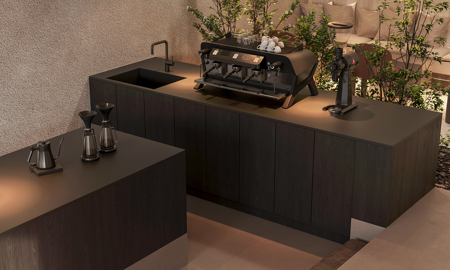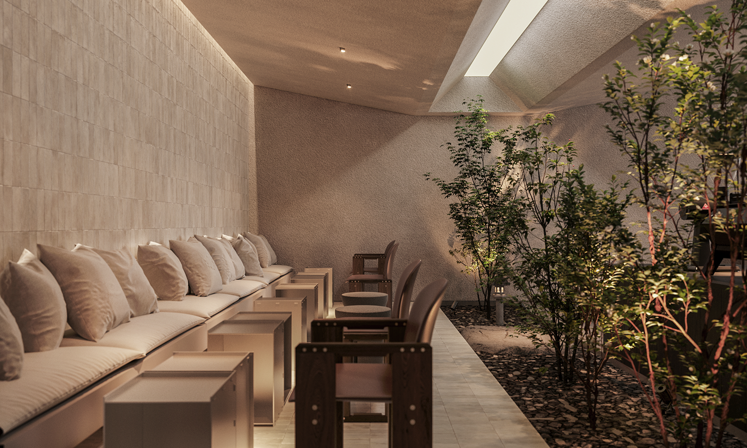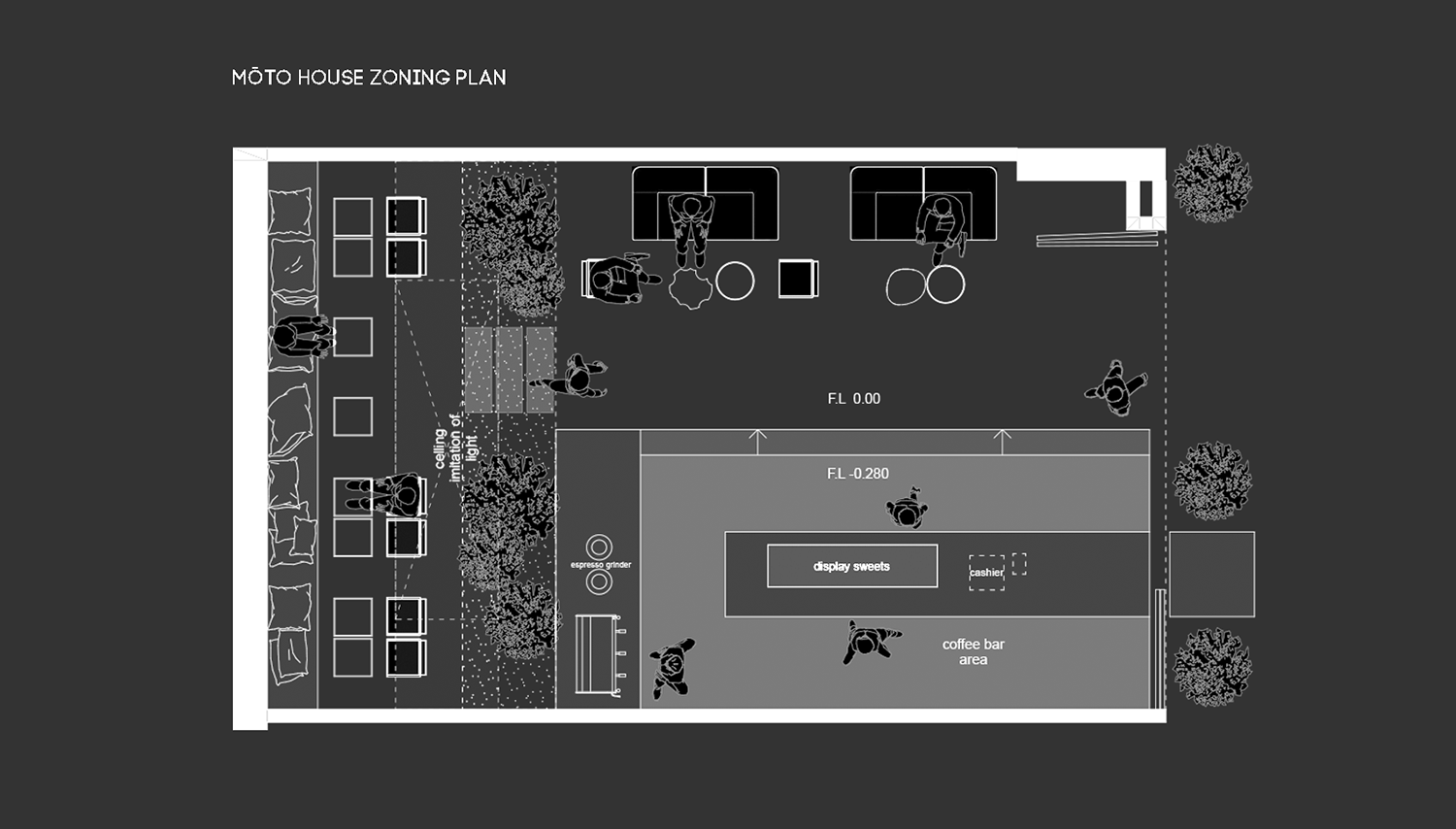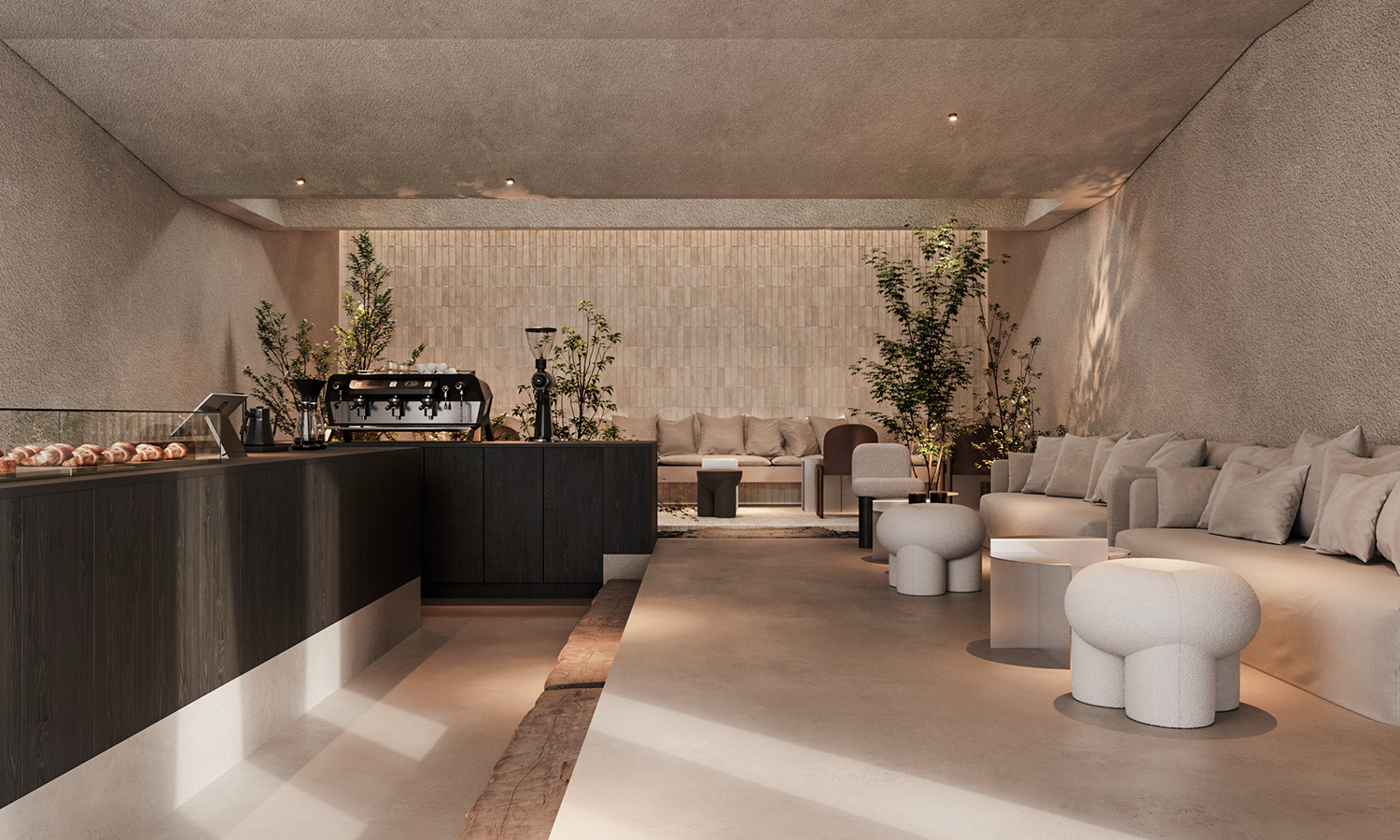The interior of the Japanese coffee shop Moto House embodies elegance, functionality, and thoughtful aesthetics, creating the perfect space for relaxation and socializing.