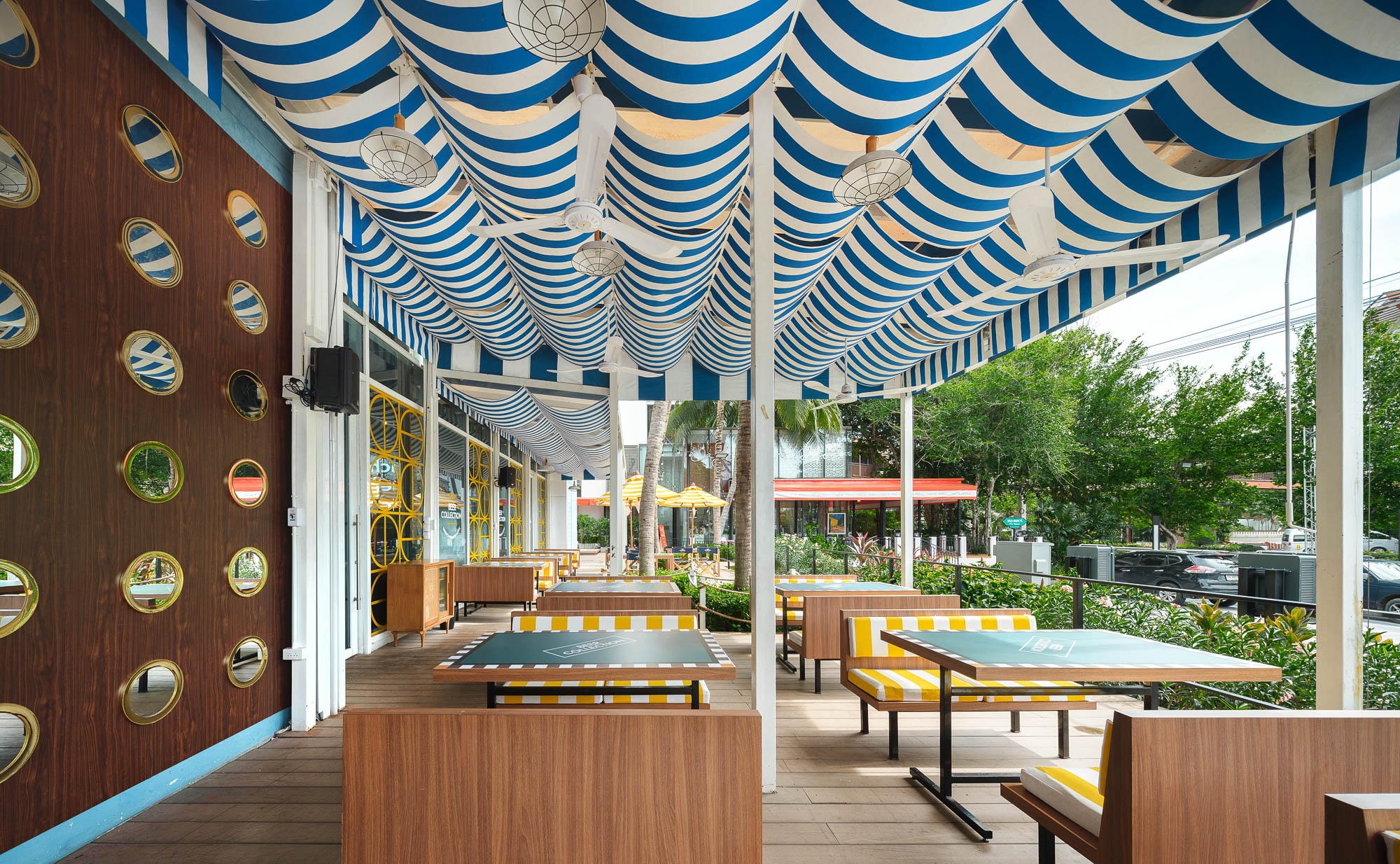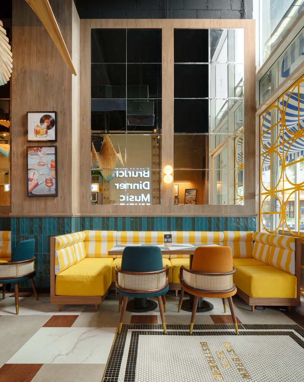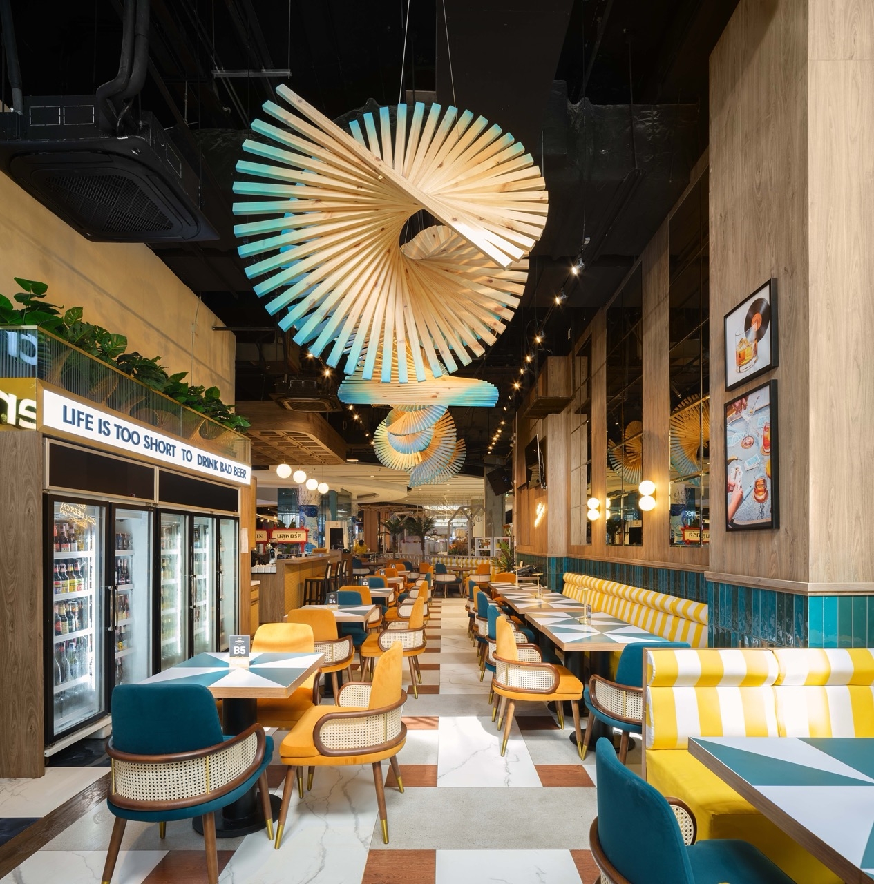 Beer Collection redefines dining with a Retro Beach style inspired by the vibrant charm of 1950s-70s Palm Springs blended with Hua Hin’s coastal essence. The design embraces playful yellows, the brand’s CI color, paired with ocean blue to echo the refreshing vibe of the sea. Geometric shapes throughout the décor evoke a lively, social atmosphere, embodying the “Best Brew with Best Friend” concept—a destination where beer lovers can unwind and connect.