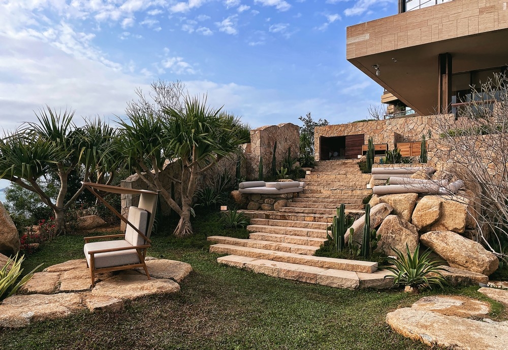 The guestroom volumes are poetically dissolved through dual asymptotic lines-a visual convergence mimicking split mountain rocks. Seen from above, the dynamic momentum plunging seaward echoes the primal tension between reef and surf.Outward:The 9-meter-wide oceanfront suites capture the sunlit cadence of waves, while 270°semi-open terraces frame the horizon as an infinite canvas. Inward: Along semi-enclosed corridors, wild vines cast dappled shadows through fissures onto basalt stone tiles, evoking a sliver of sea glimpsed through rock fissures-a dialogue affirming the connection between geology and cosmos.