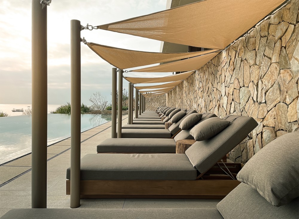 Hyatt’s first island resort in China which Zhuhai Gree Island Investment Co., Ltd. in collaboration with ZNA to create,debuted at Alila Zhuhai Dong’ao Island. ZNA Architects rejected “conquering” the cliffs, instead using a humble asymptotic layout to nestle 104 ocean-view suites within weather-beaten granite textures, making architecture a chromatic extension of the terrain. The iconic 15m cantilevered infinity pool, precisely incised into basalt strata, aligns with sea level at high tide.