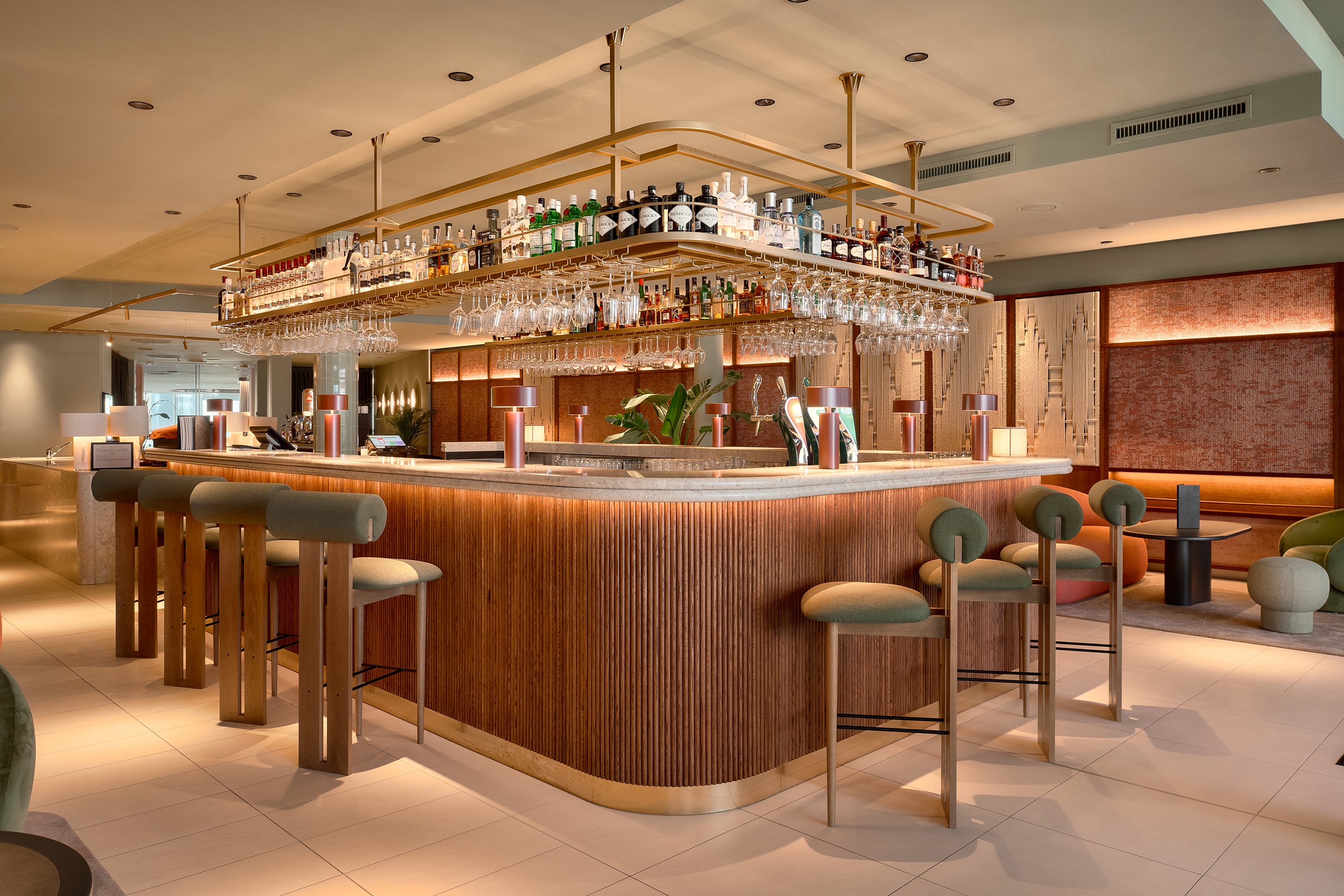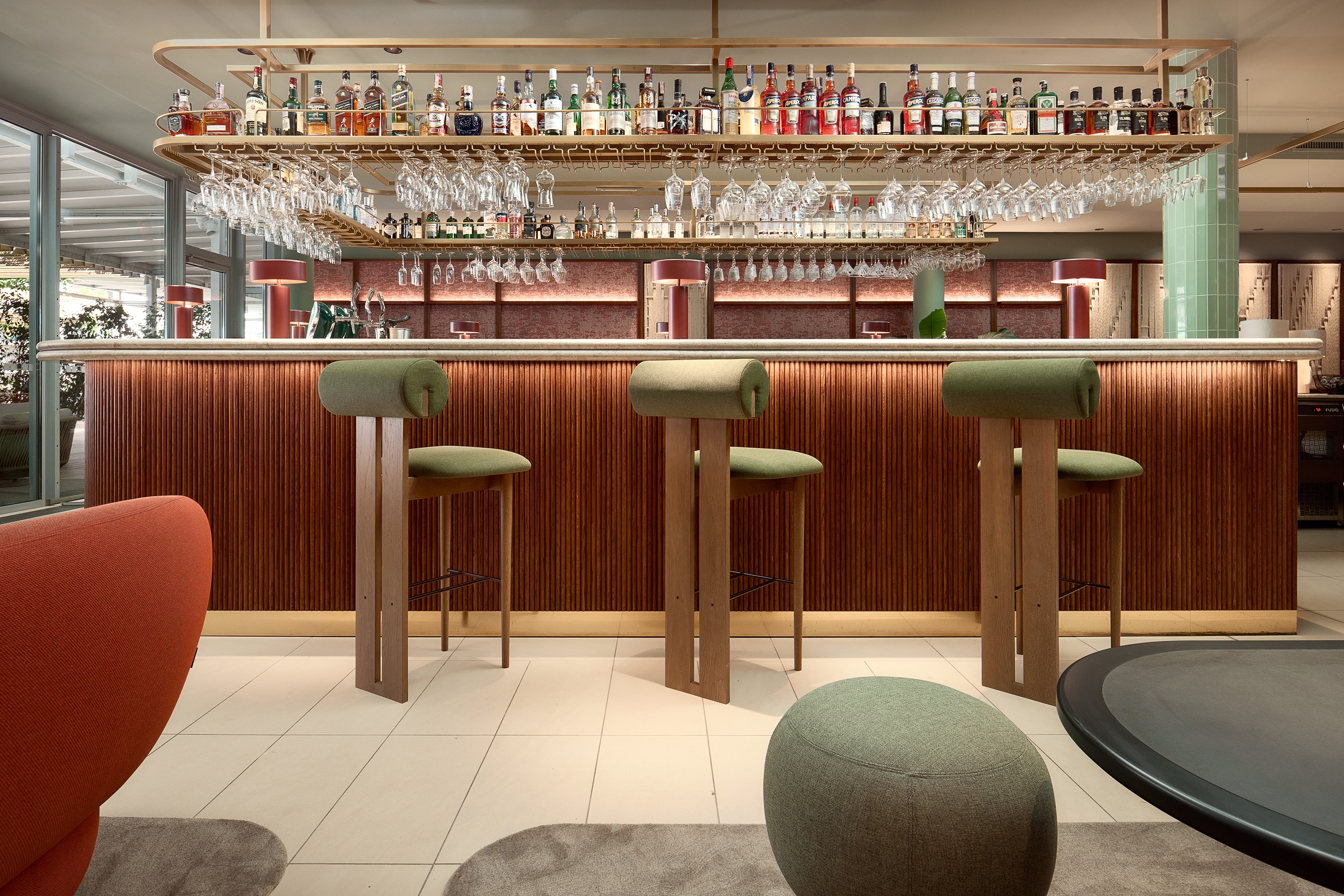 Located at the heart of the hotel, Mint Bar connects seamlessly to an expansive terrace. Guests are welcomed by a striking stone-clad barista counter, displaying fine pastries. Behind it, a cocktail bar with warm wood tones and a mixology station offers both day and night experiences, from artisanal coffee to handcrafted cocktails.