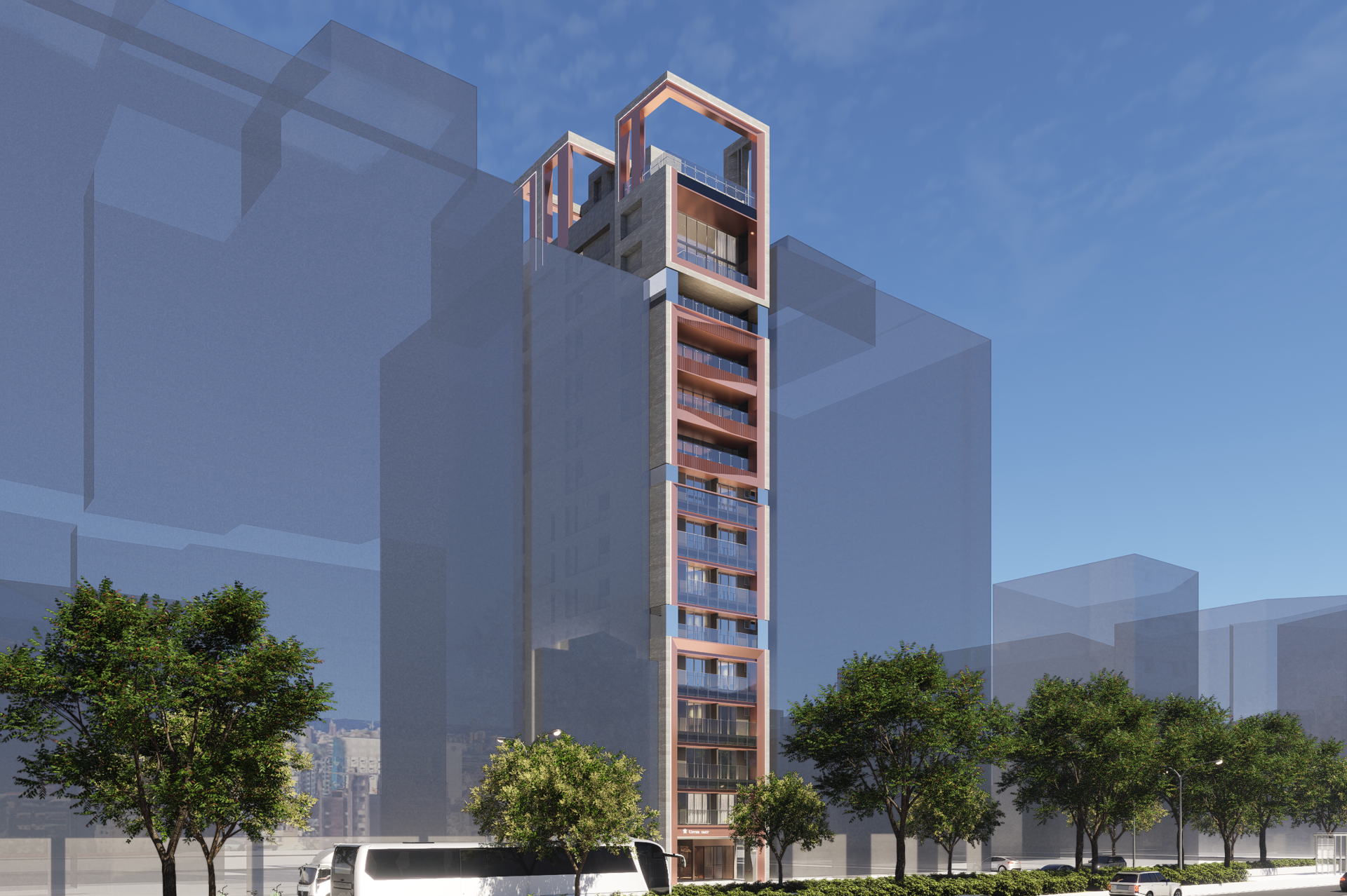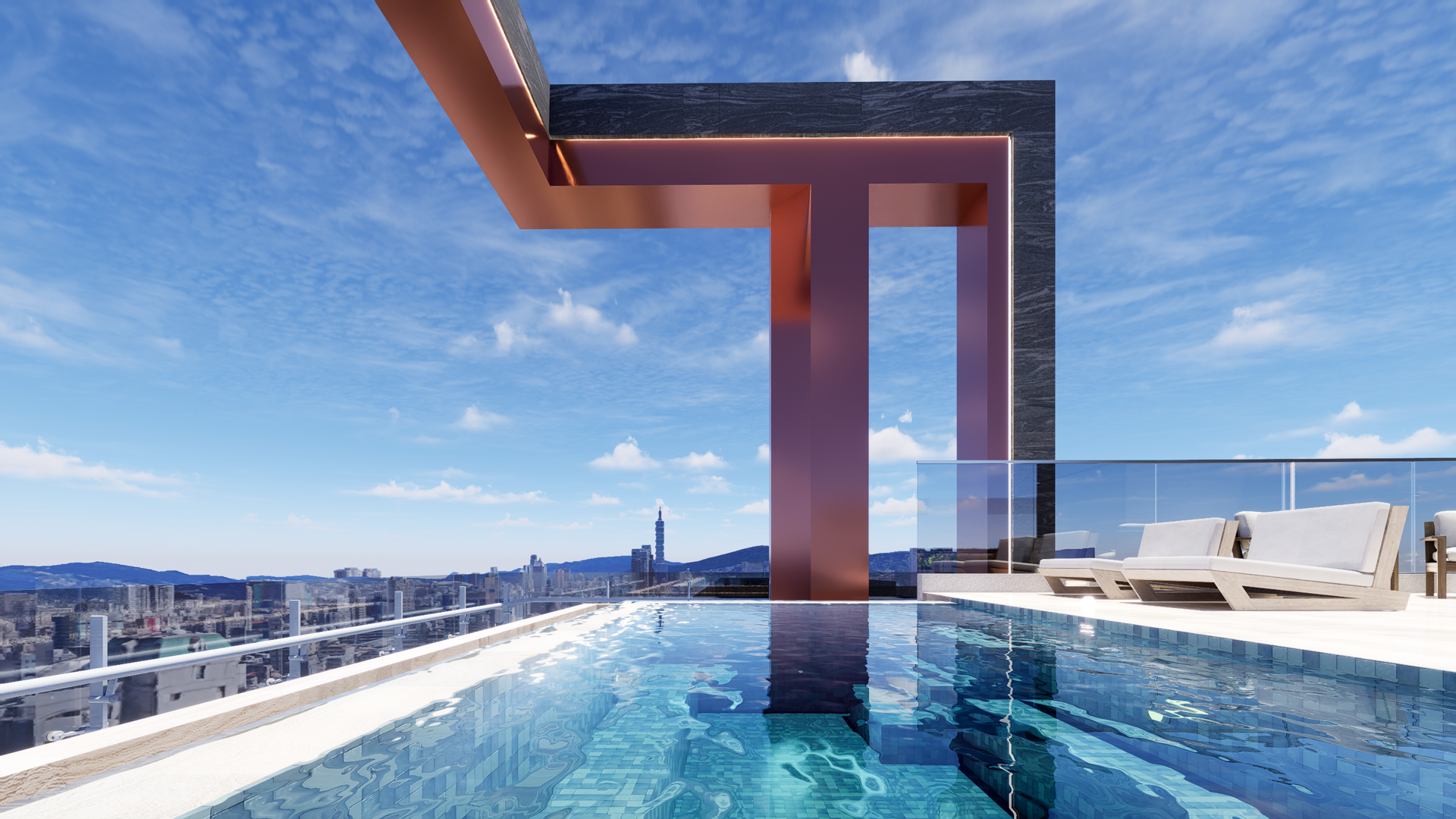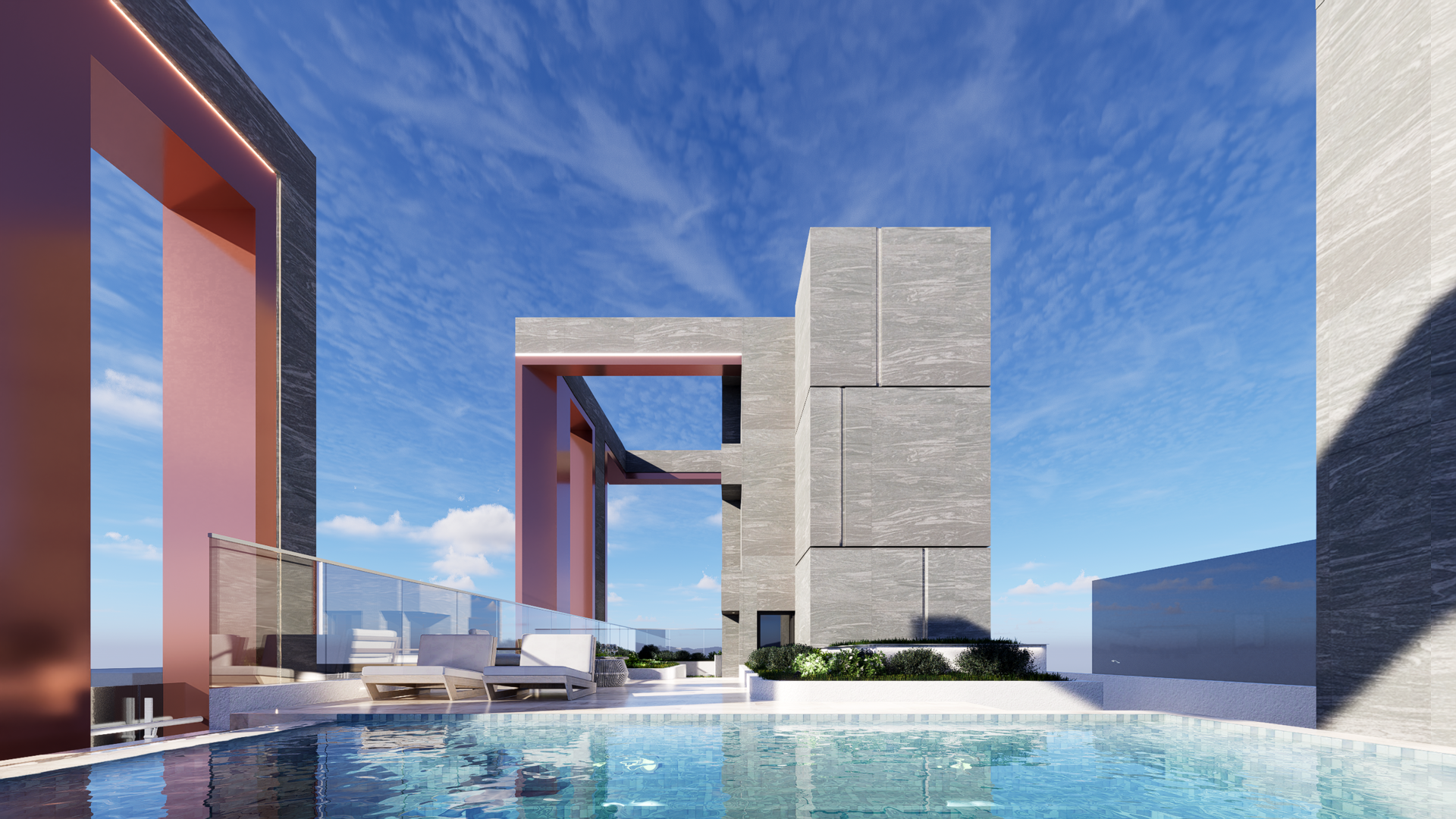 The building features a 4.2-meter-high entrance, a rose gold exterior, and large windows, creating a distinctive urban facade. From the first-floor hall, public area, and intelligent parking tower to the rooftop pool and the skip-floor suite layout, the design language remains consistent. Unlike typical high-end residences, this project emphasizes "vertical community integration":