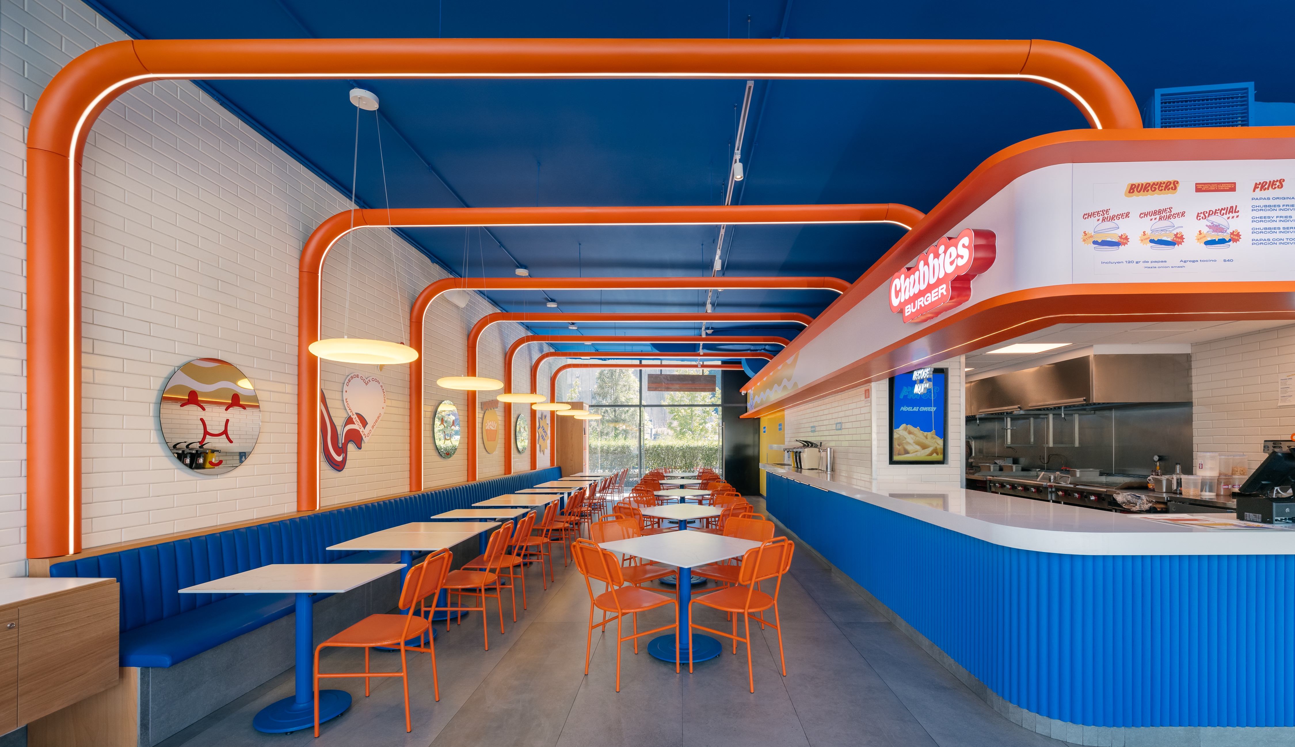 Chubbies is a fast-casual culinary project that stands out not only for its burgers but for an architectural design that turns every corner into an immersive experience. Located in Parque La Mexicana, Mexico City, it merges gastronomy and architecture to create a warm, dynamic, and visually engaging environment.