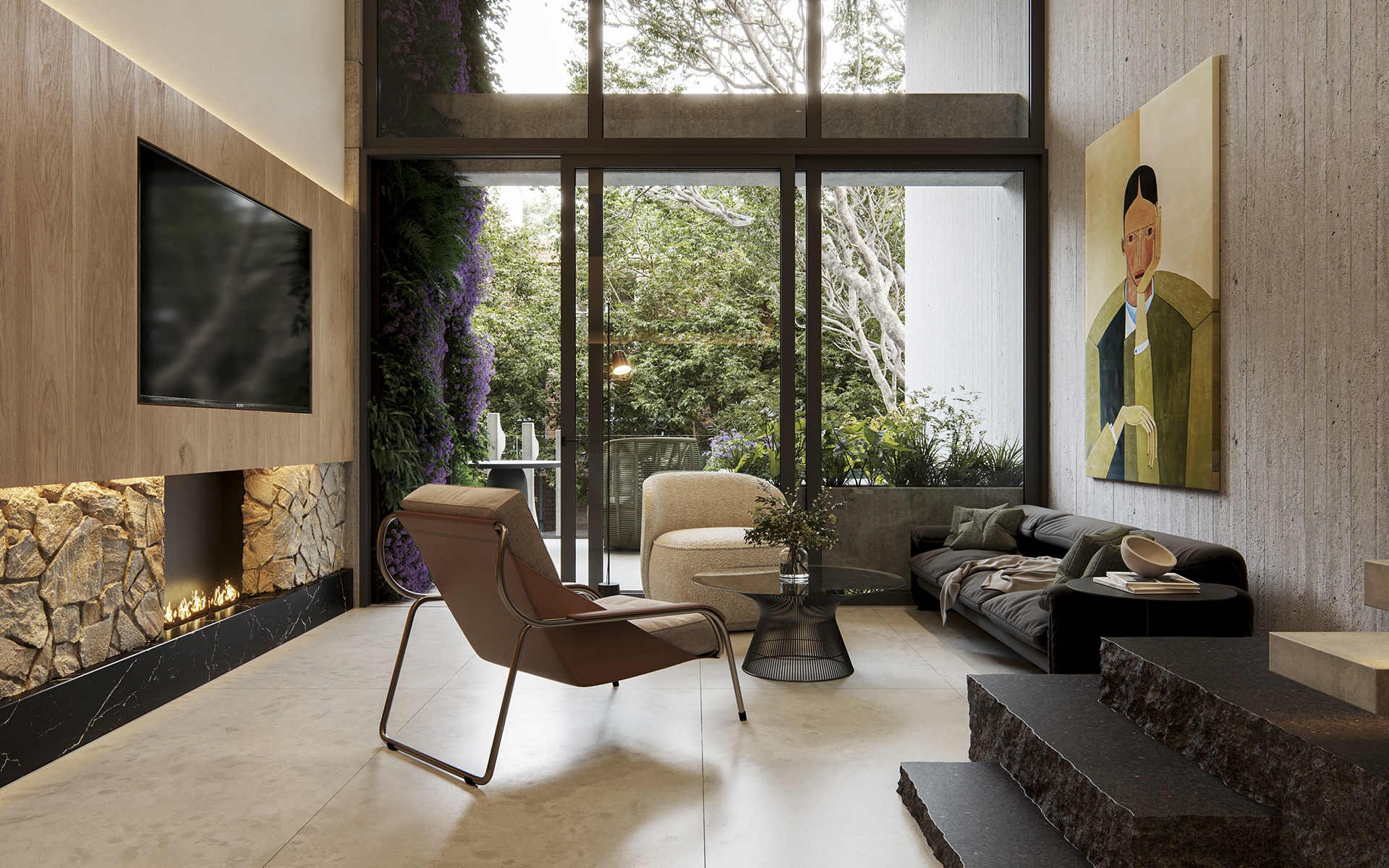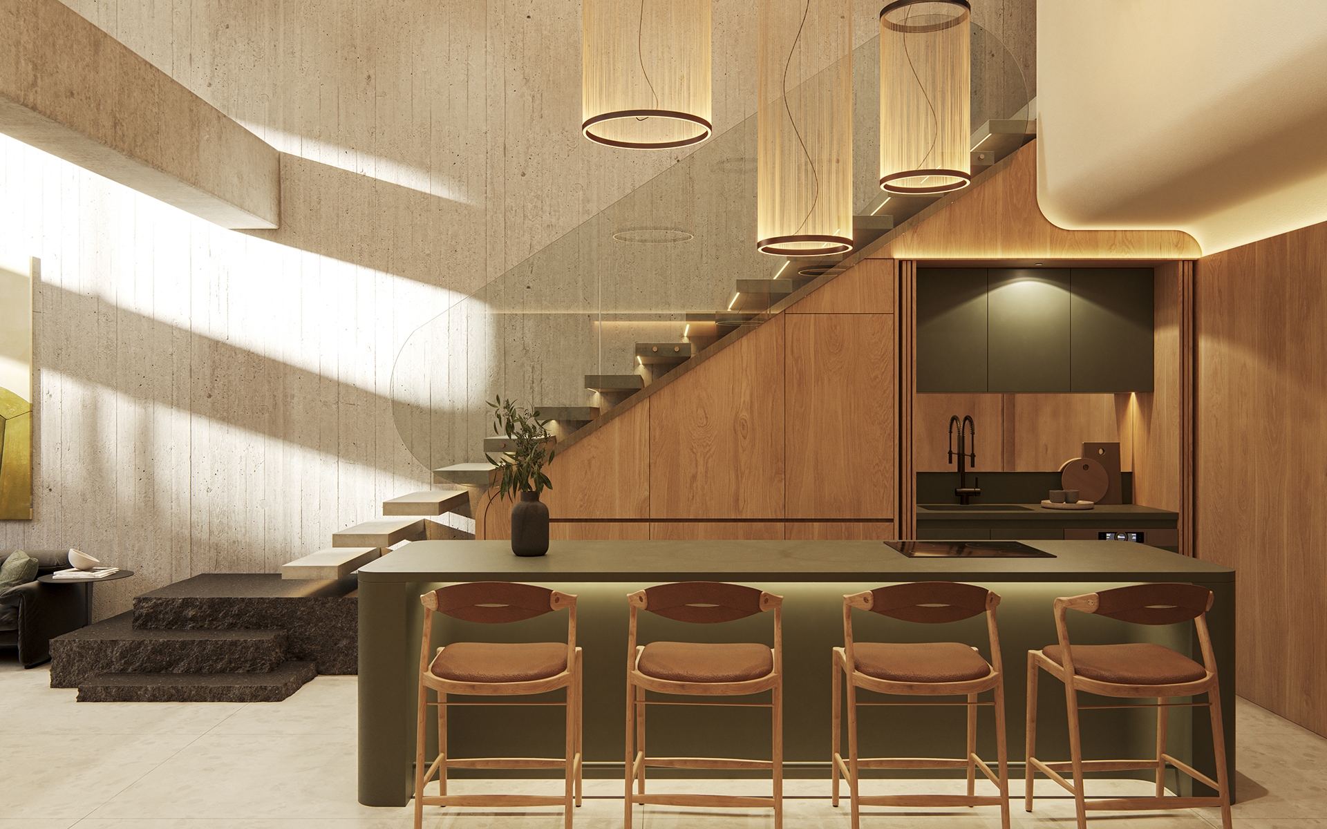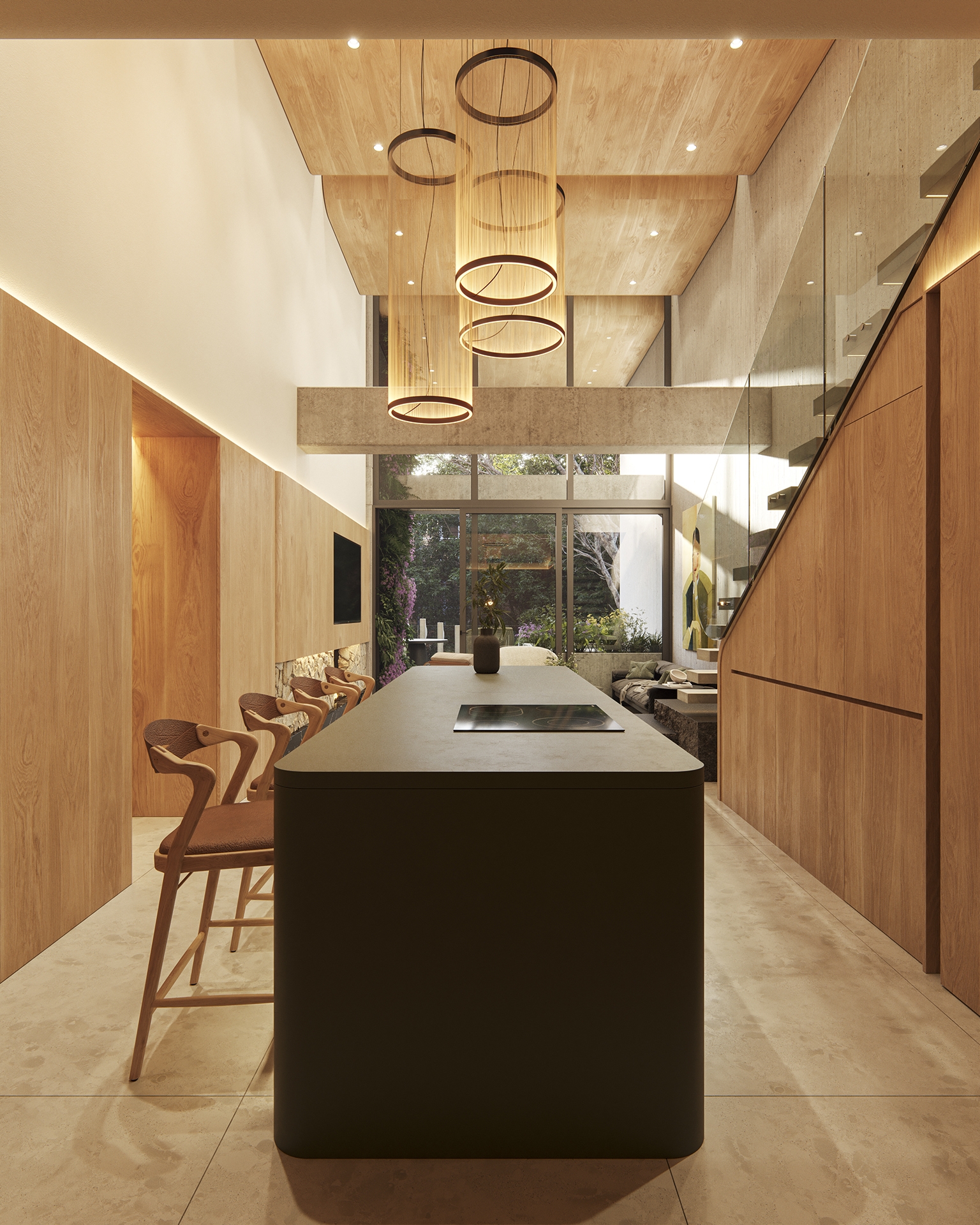 Inspired by Cattleya trianae, Colombia’s national orchid, the building’s vertical composition mirrors the flower’s form—roots, stem, leaves, petals—creating a botanical narrative expressed through light & flow. Its six suites feature full kitchens, laundry, & workspace for extended stays, while open areas encourage both privacy and connection.