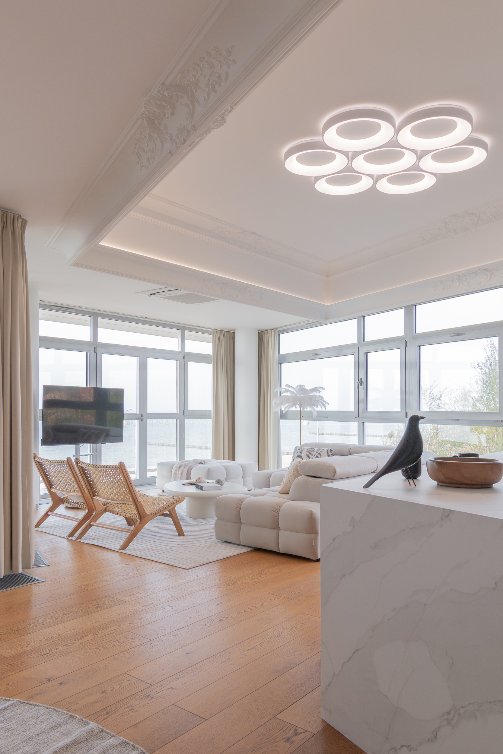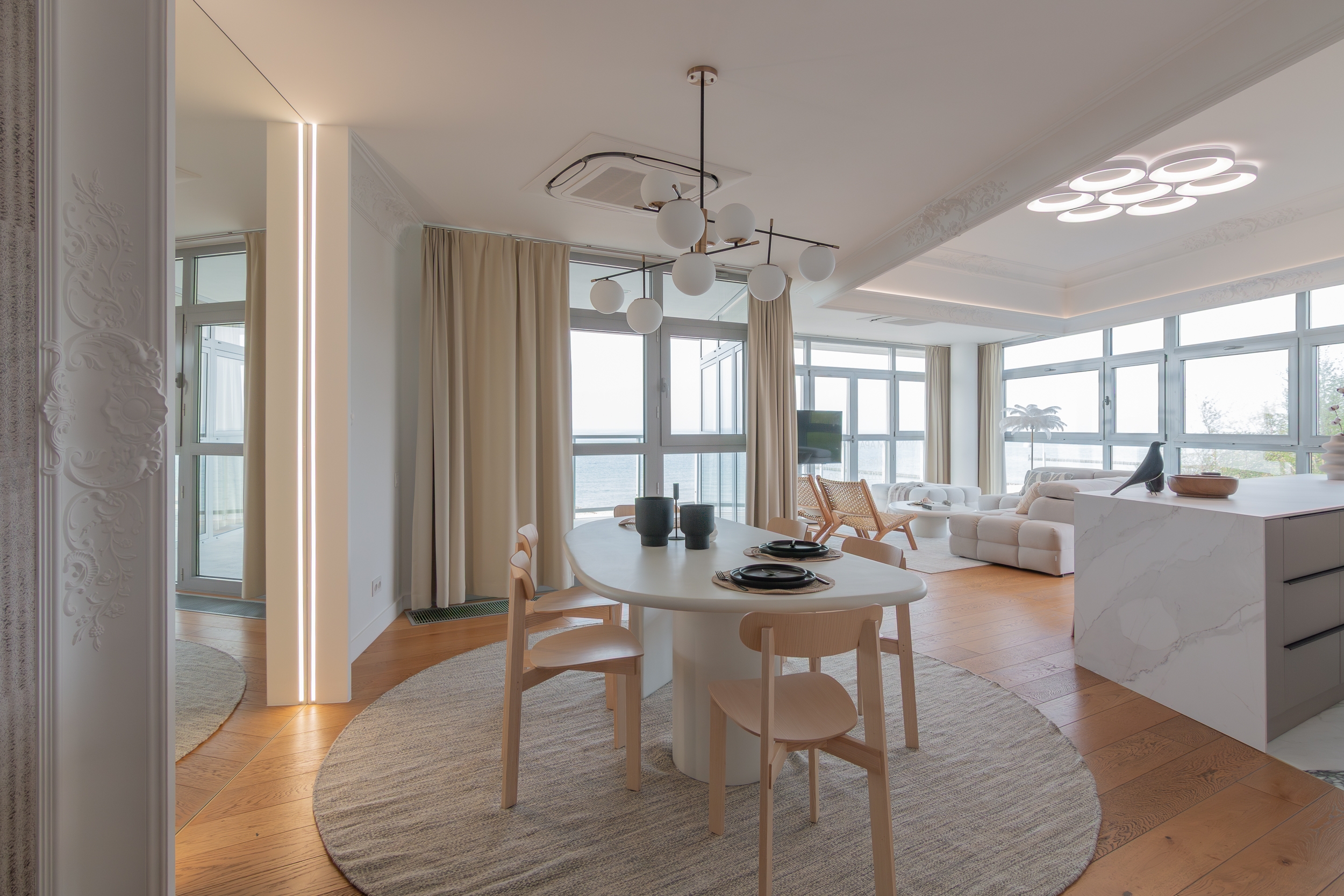 A luxurious flat with a beautiful panoramic view of the sea was created on an area of 110 square metres,offering more privacy than a hotel,but not necessarily intended as an everyday residence.