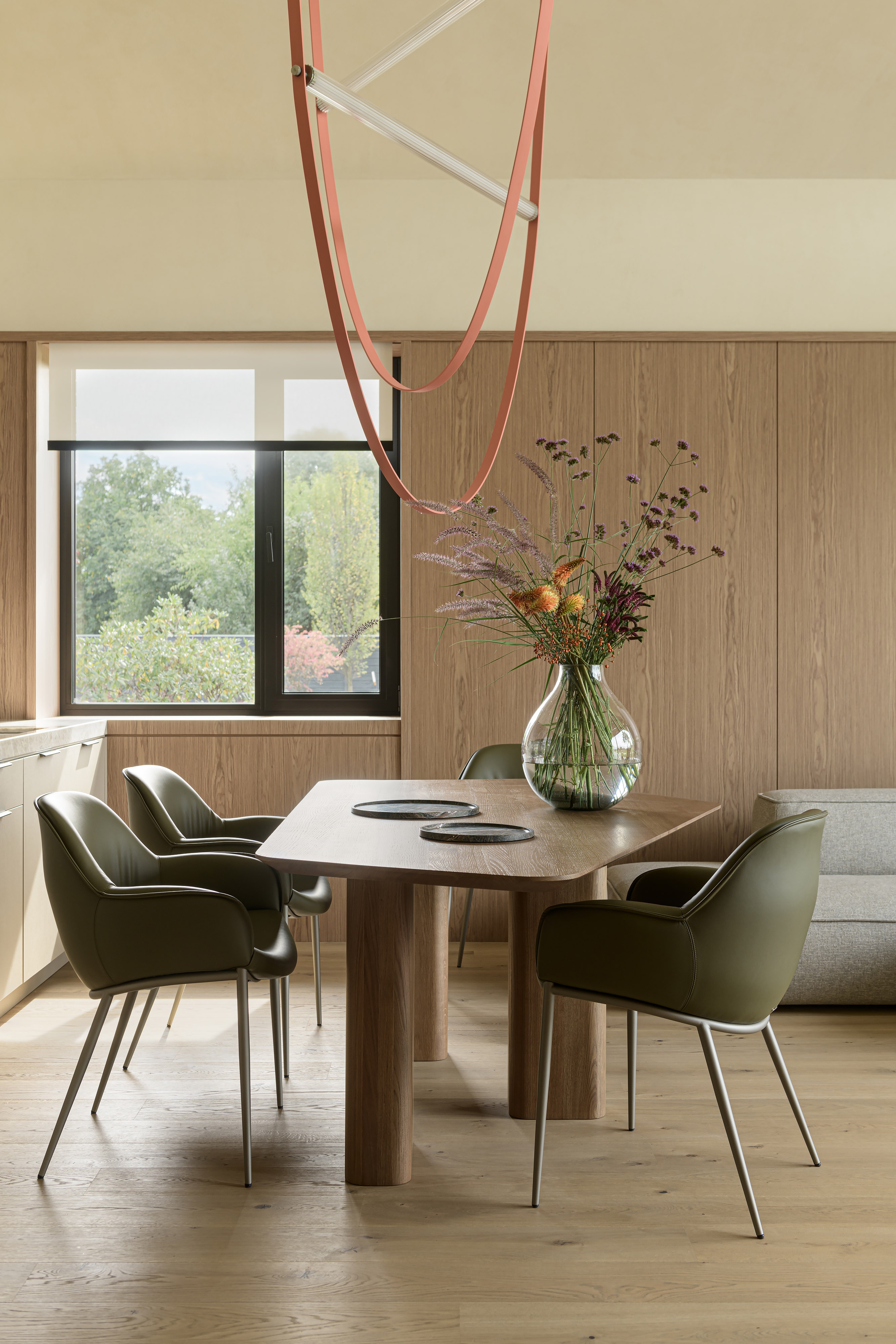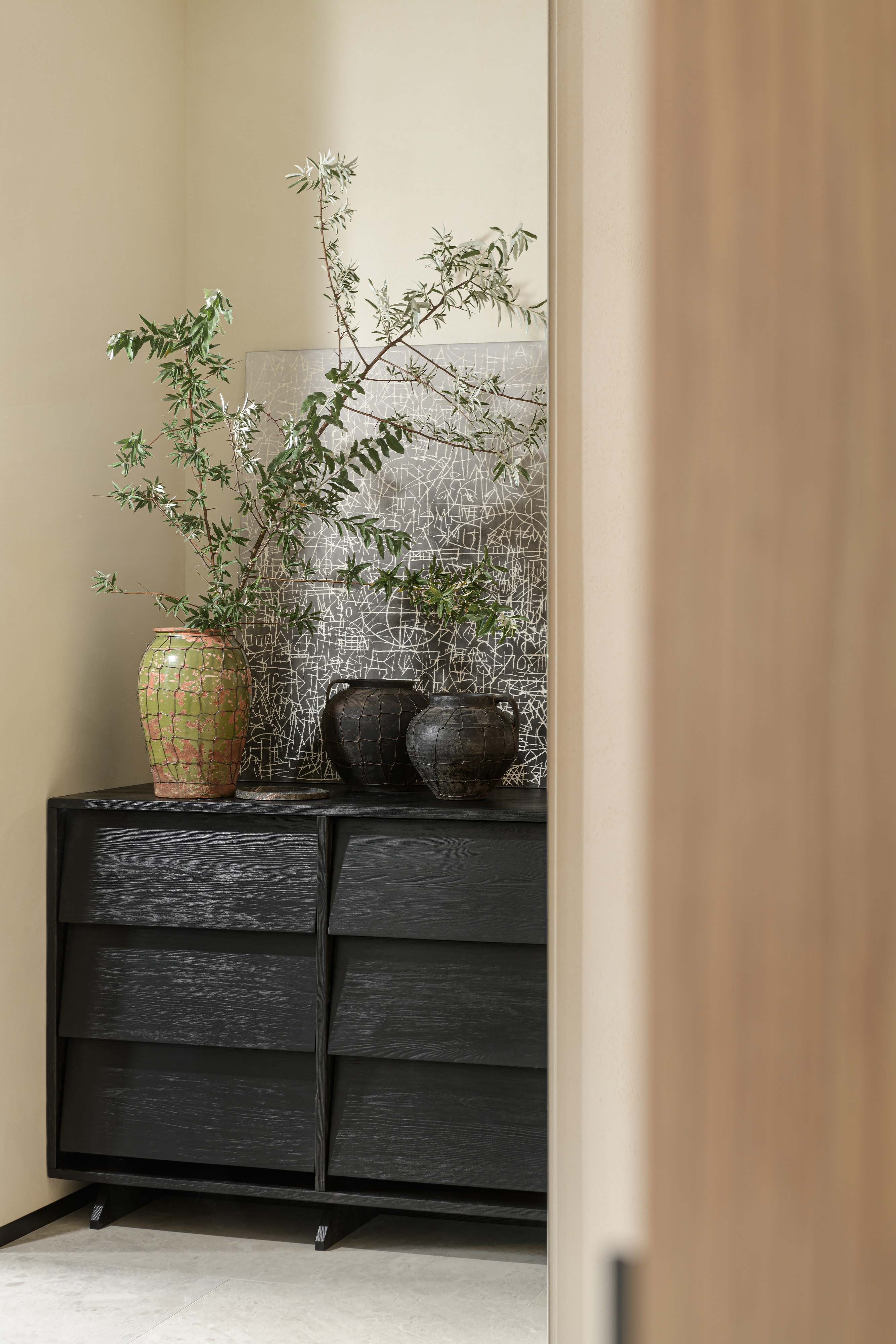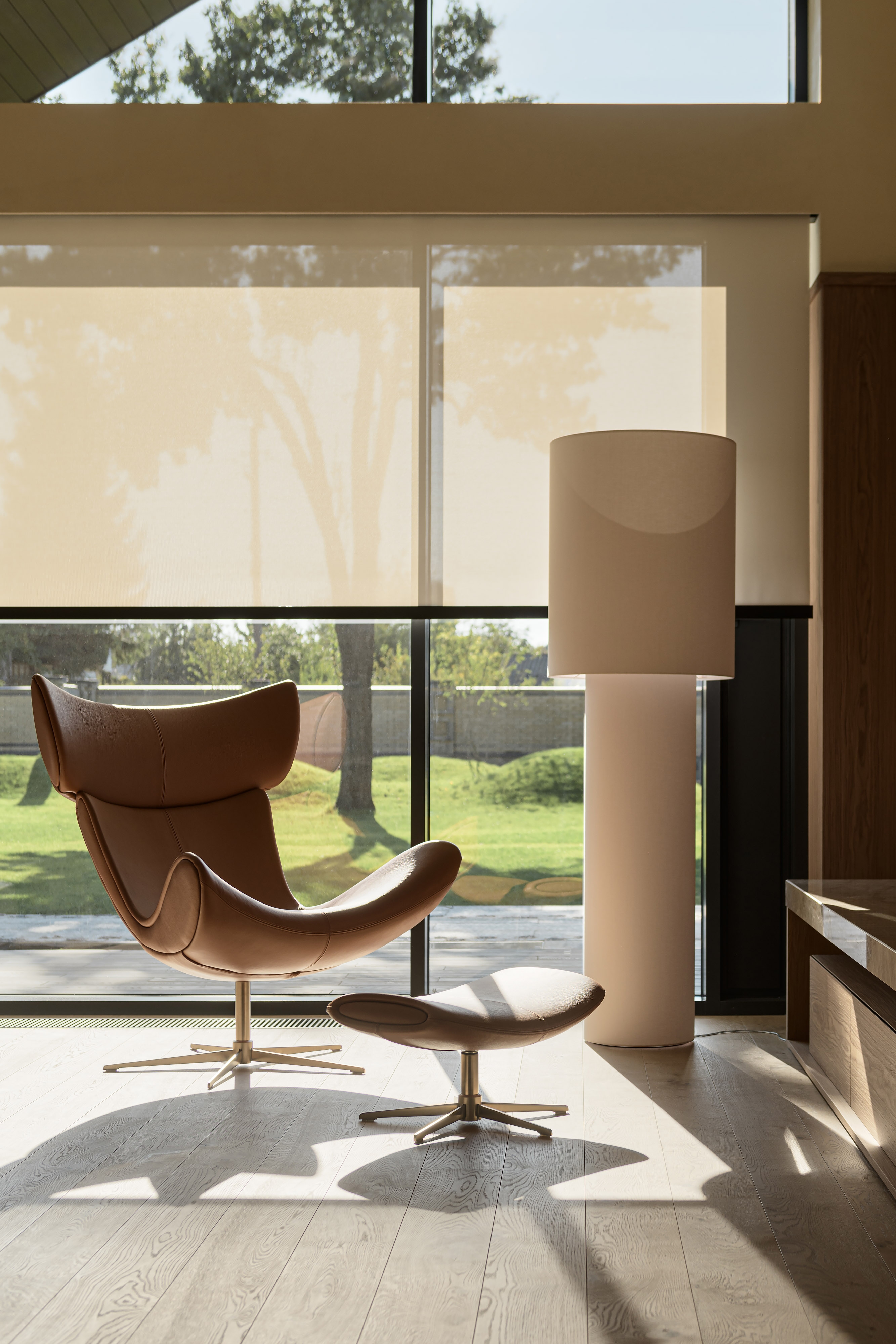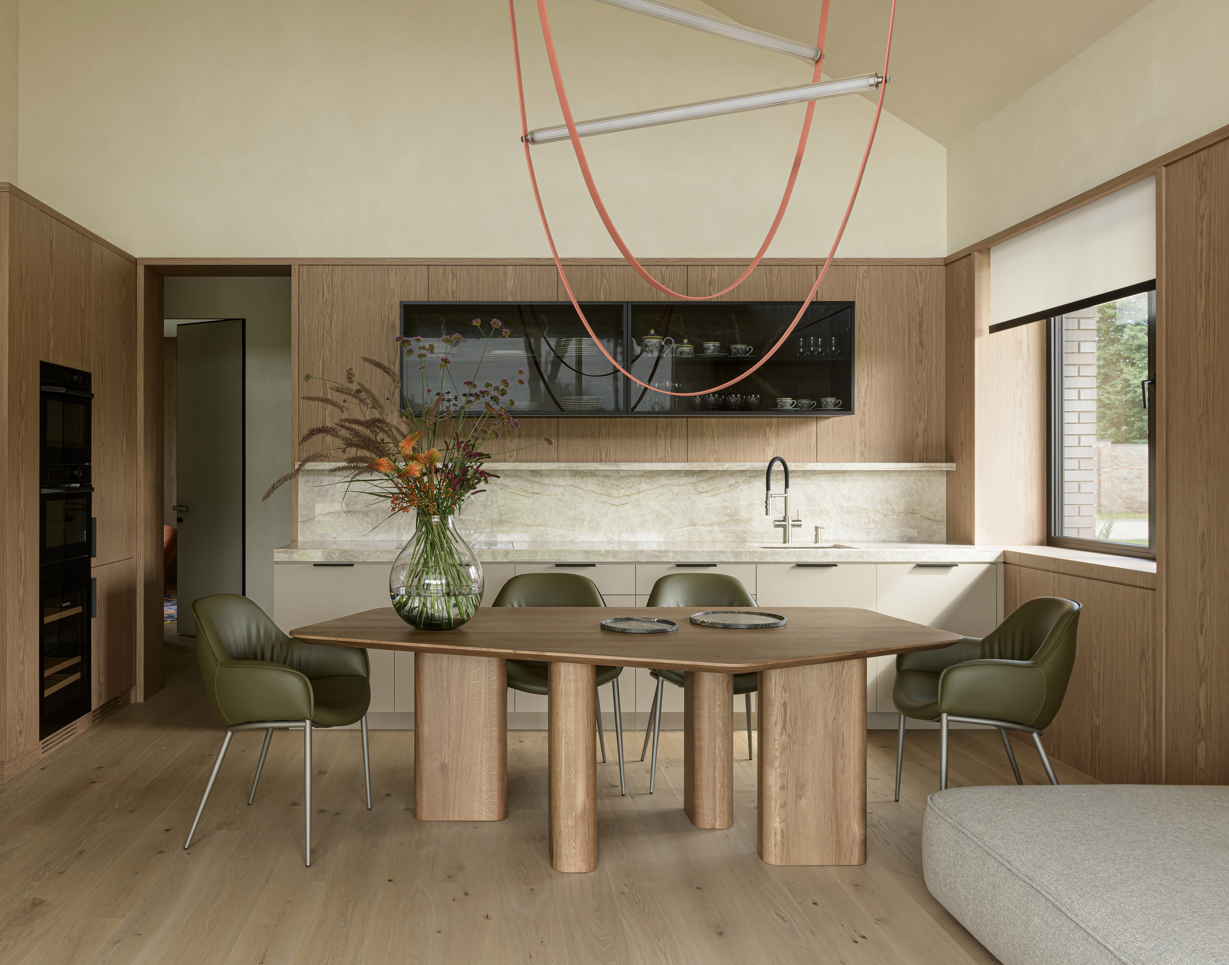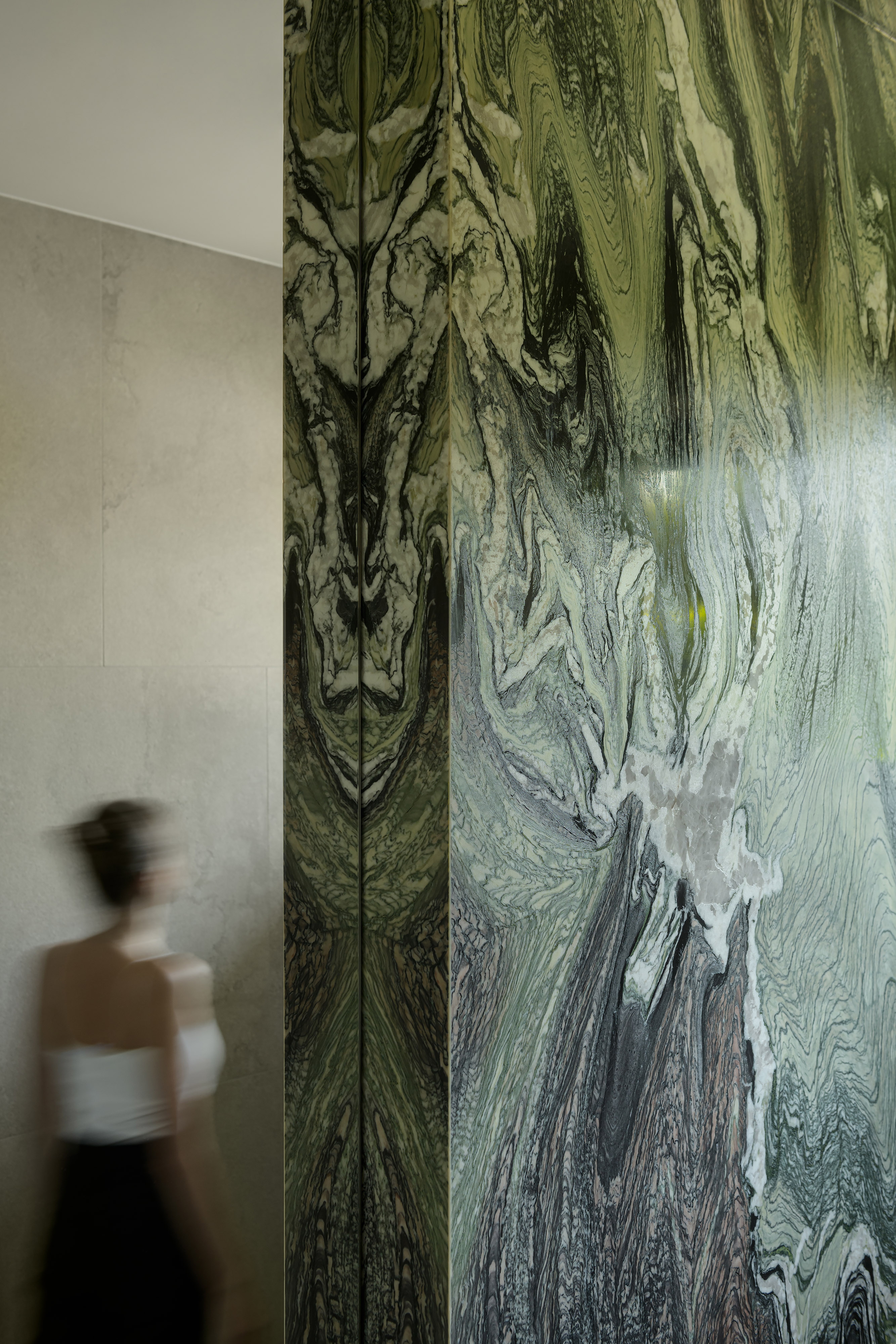 This countryside guesthouse is conceived as a retreat of lightness and calm, offering a pause to restore balance after the fast city rhythm. Panoramic windows of the living room dissolve the boundary between interior and garden, filling the space with natural light by day. By night, it transforms into a sanctuary of comfort and quiet reflection about contemporary Ukrainian art. Clean lines and tactile materials - stone, wood, and soft textures - create an atmosphere of refined simplicity and silence.