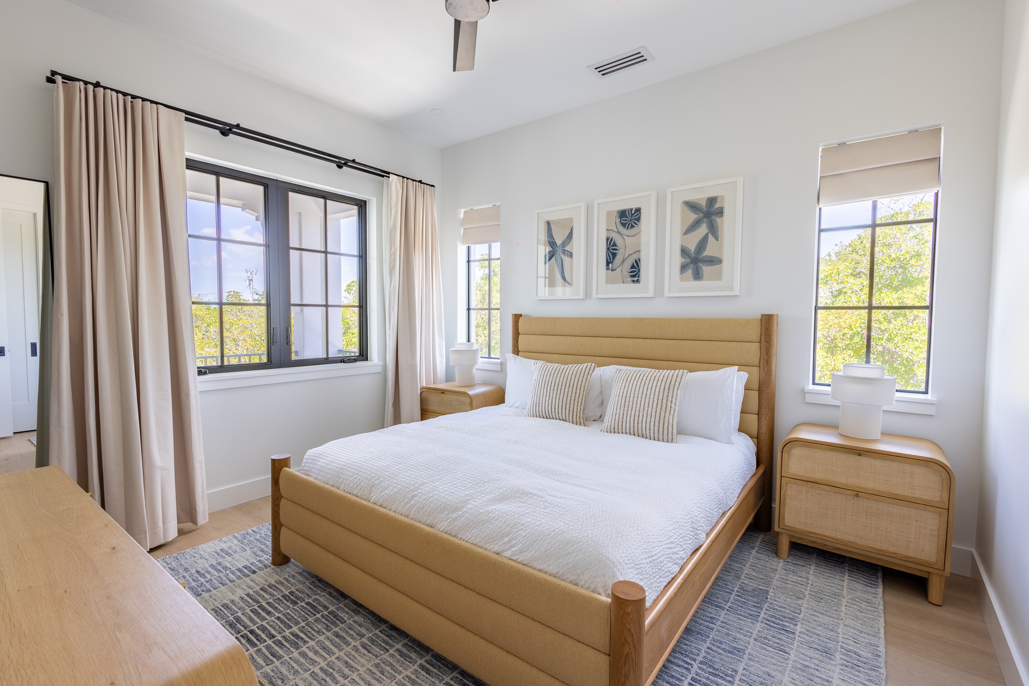 Starboard House embodies this vision—an eight-bedroom retreat designed for both togetherness and privacy. Set on a corner lot, it accommodates up to twenty guests and features a circular pool, outdoor lounge, fire pit, and private dock. Inspired by the sea and Key West’s working heritage, its rounded windows and curved lines recall ship design, while light oak, soft stone, and layered natural textures mirror the surrounding landscape. Starboard celebrates “idle time”—a new expression of hospitality that feels personal, relaxed, and quietly luxurious.