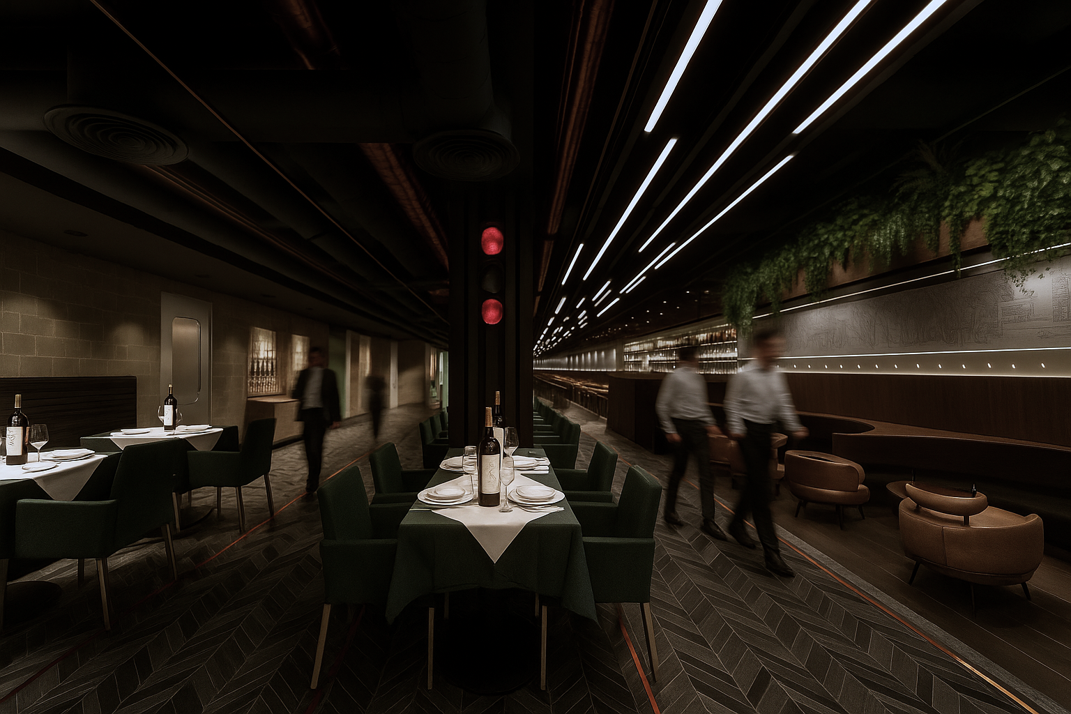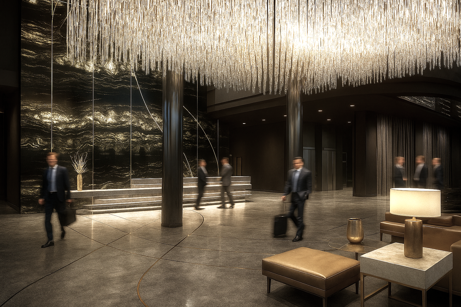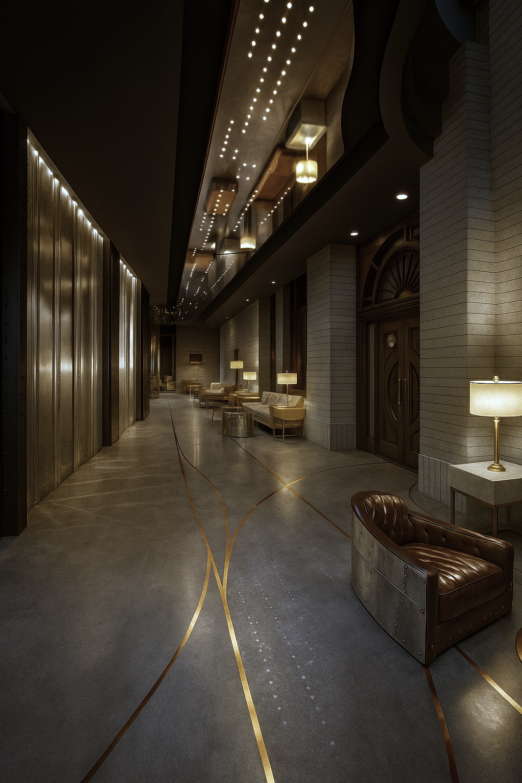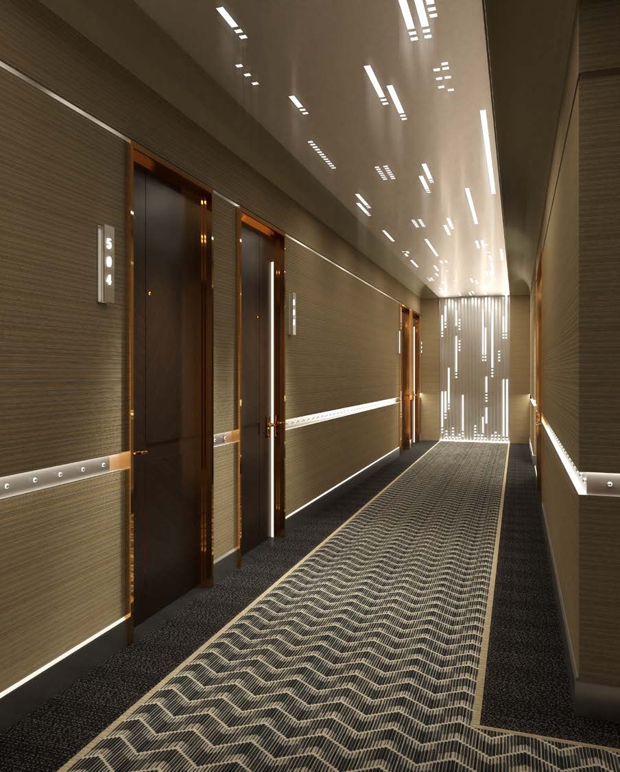 The concept begins with the sensations of the metro system. Movement, structure, and light from the underground are transformed into a refined expression of modern luxury. The hotel is imagined as a vertical slice of New York itself: the lower levels reference the subway and commuter pathways, while each higher level becomes more polished, more comfortable, and more luxurious.