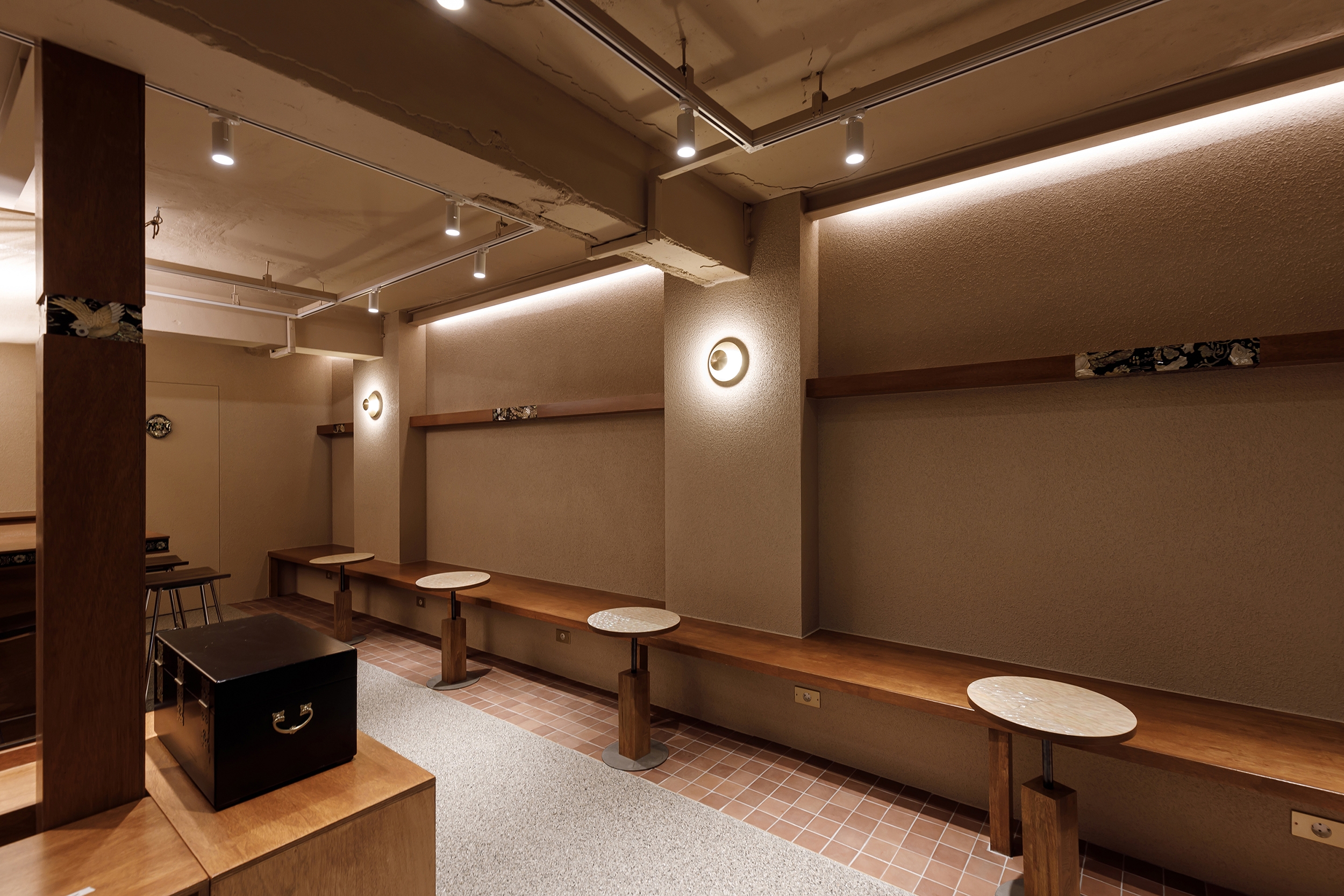 The space centers around the madang (yard), which in traditional Korean architecture exemplifies openness. Surrounded by key areas such as the daecheong, toe-maroo, low fences, and the anchae (main room) and sarangchae (guest room), the madang is designed to be visible from all directions. Combining the openness of the madang with the playful, performative spirit of madangnori, we sought to create a space that brings the past into the present, offering guests a vivid, sensory experience.
