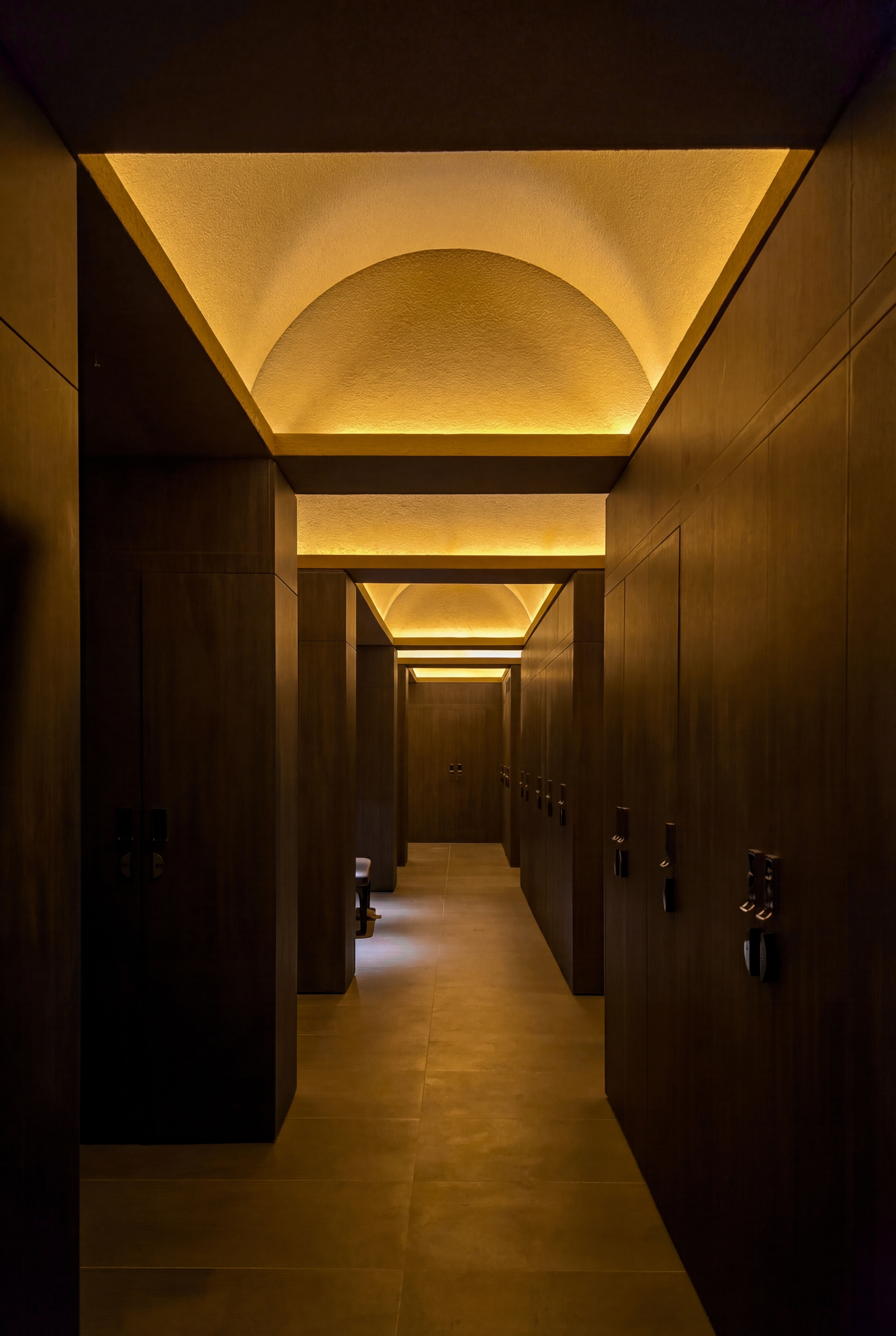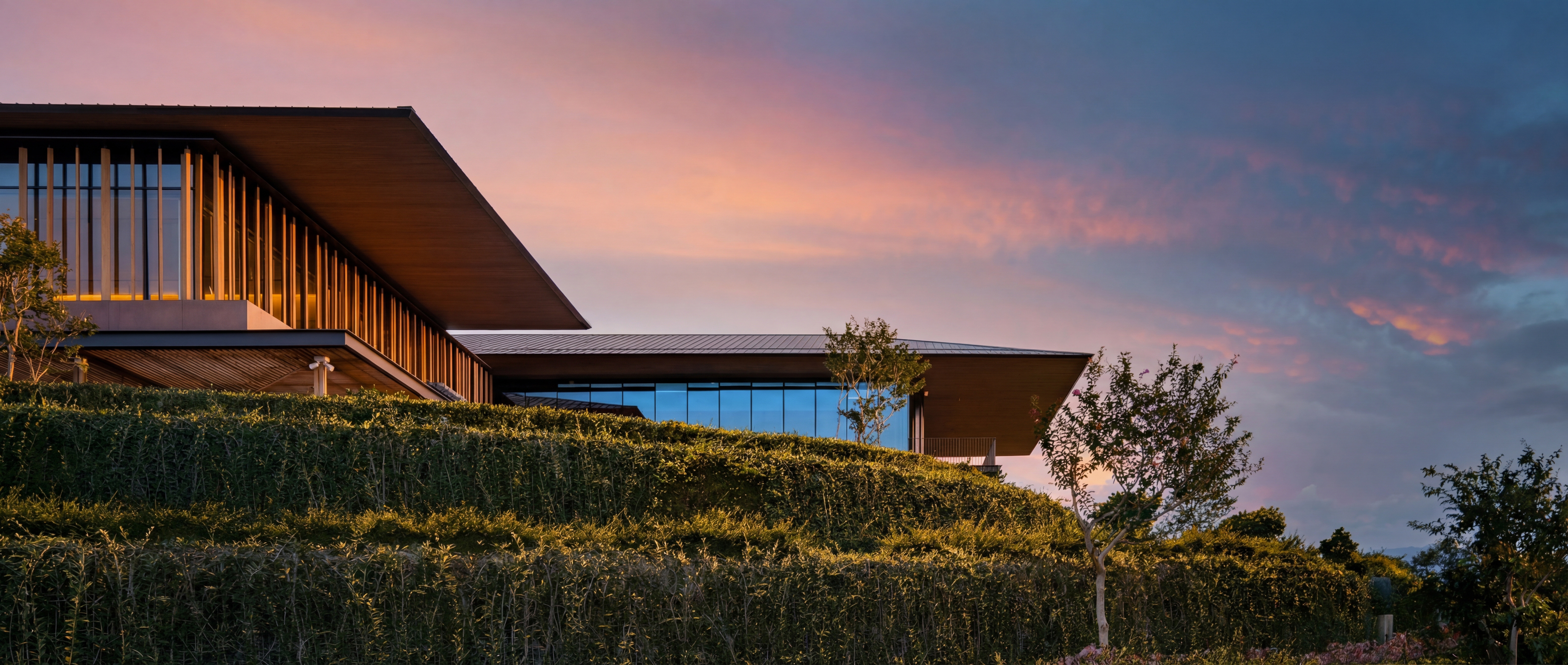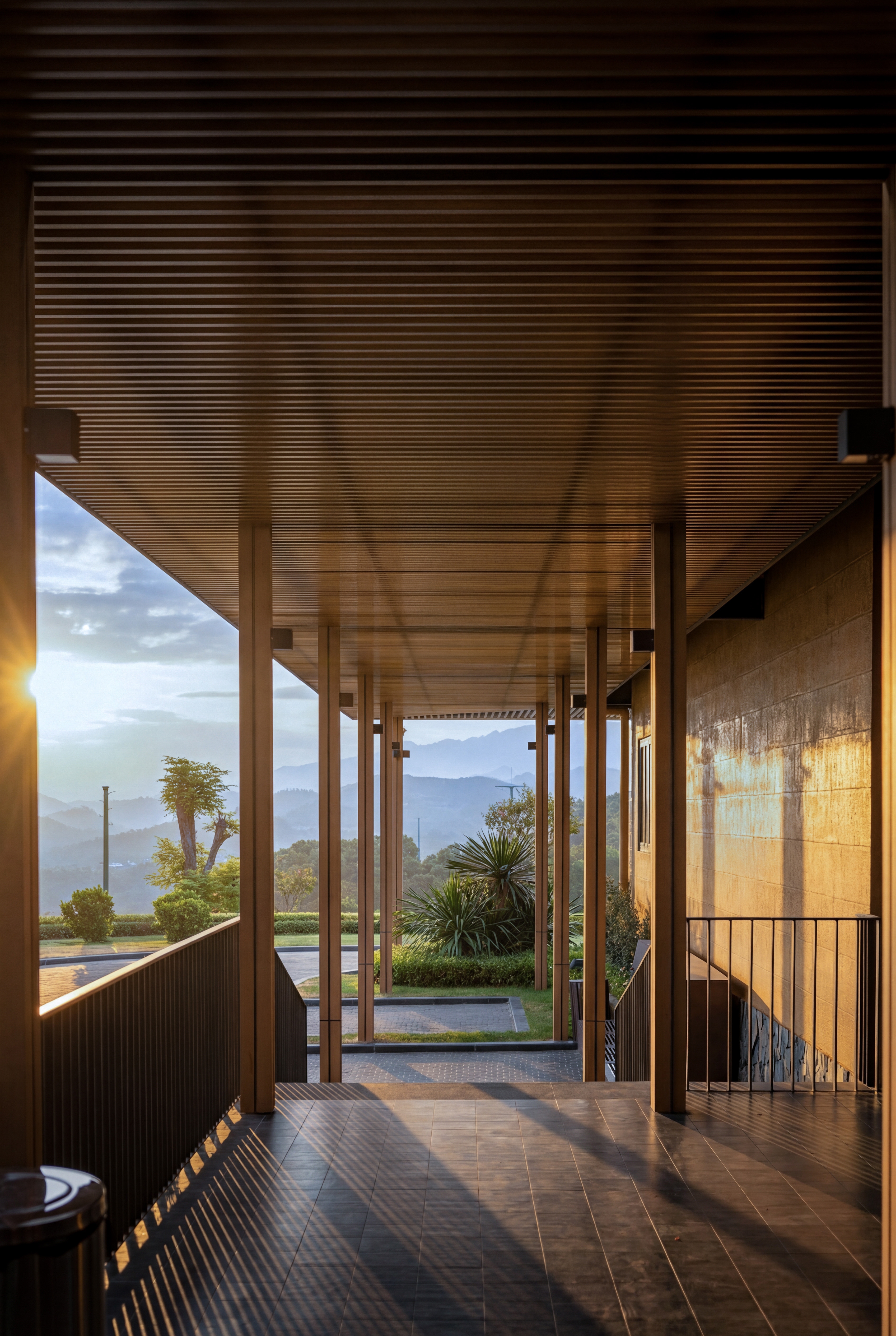 This approach expresses the integration of indigenous cultural forms into a contemporary context. Responding to intense sunlight and heavy rainfall, the projecting roofs create shaded buffer zones at key access points, reduce glare, and ensure comfortable views toward the golf course, further supported by external wooden louvers on the glazed façades.