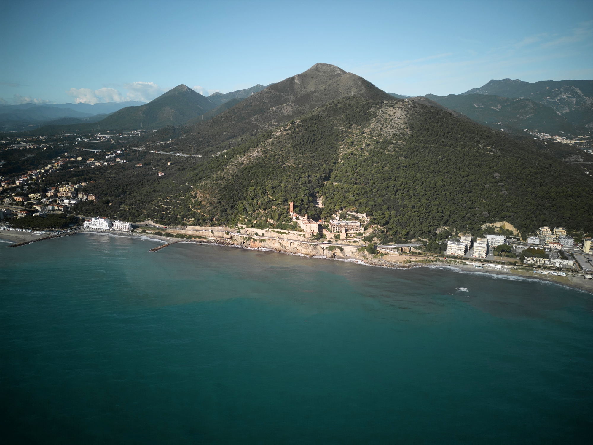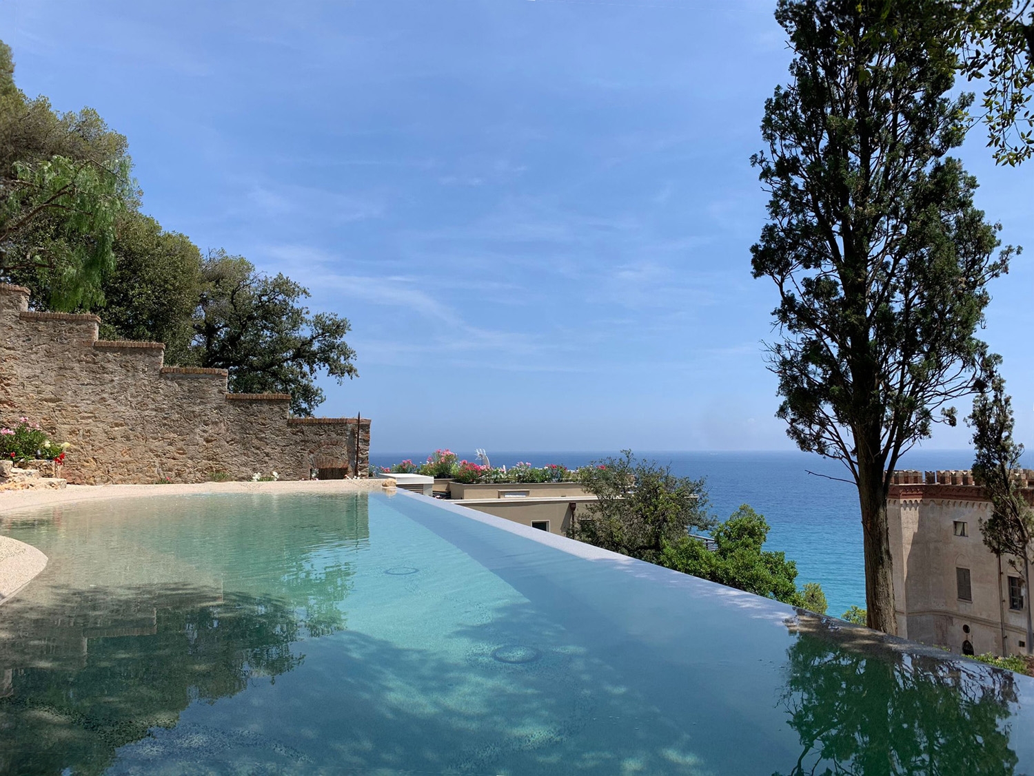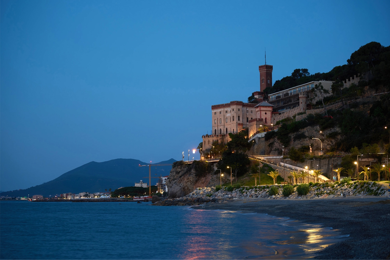 The project seeks a constant dialogue between ancient and past, with a decomposition of volumes on a technological backdrop in stave and glass in antithesis to the crenellated walls and towers of the castle. The new building observes the sea and blends into the greenery, hides between the walls and reveals itself to the observer who reaches and enters the complex.