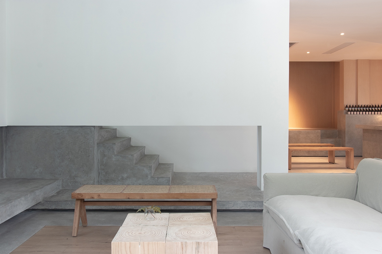 The hotel is located in Mogan Mountain, two hours’ drive from Shanghai. As a place for holiday relaxing, it is designed to be a minimalist and calming space. The space has minimized visual distractors and no proactive expressions. People feel its existence blurring and tend to focus more on its natural surroundings. White cement structures are consistently used to form moving lines and particular functional areas. In the time of the COVID-19 pandemic, a nature-connected way of living gives us the chance to cure and cleanse ourselves.