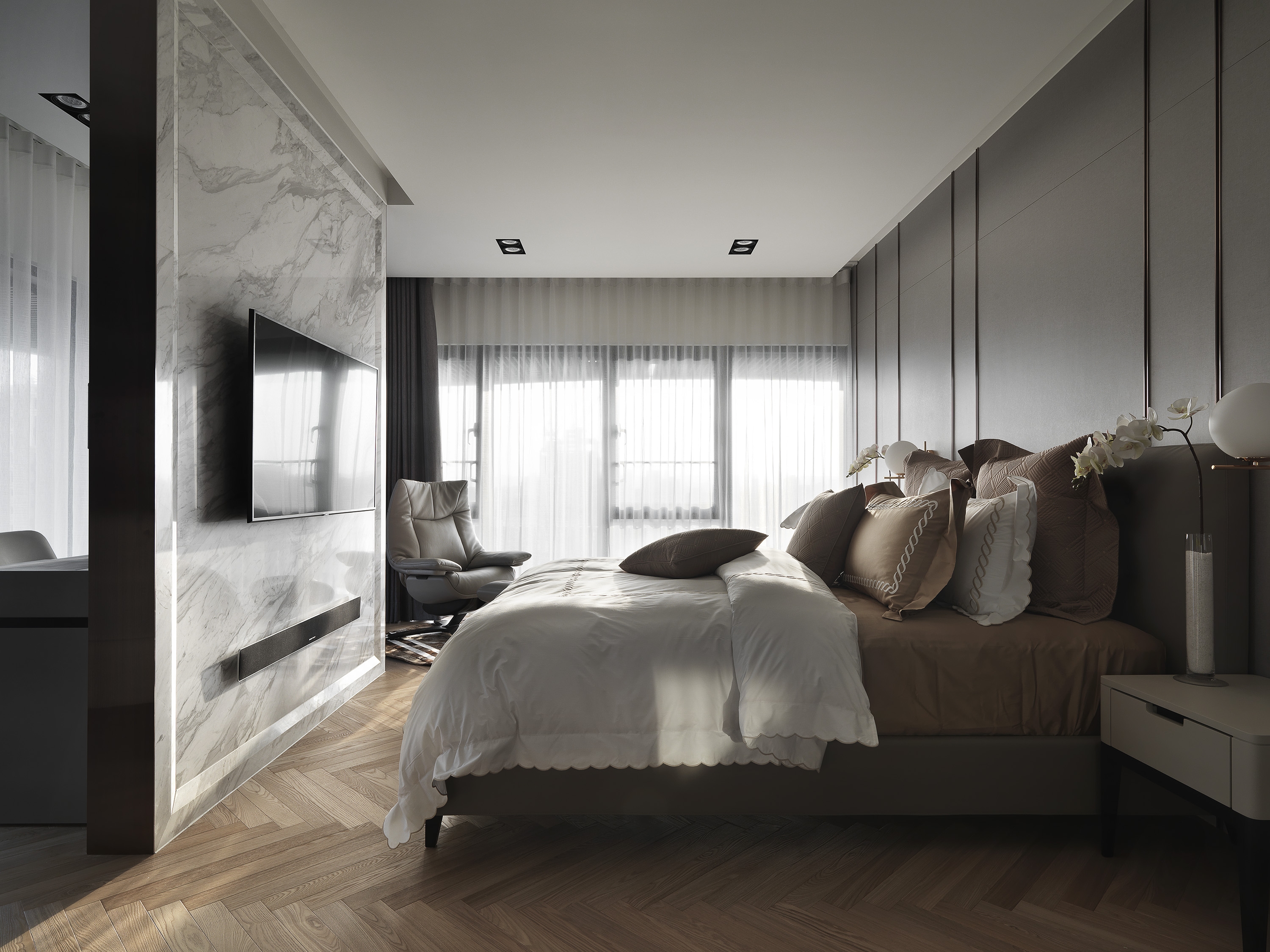 And the master bedroom room uses th
