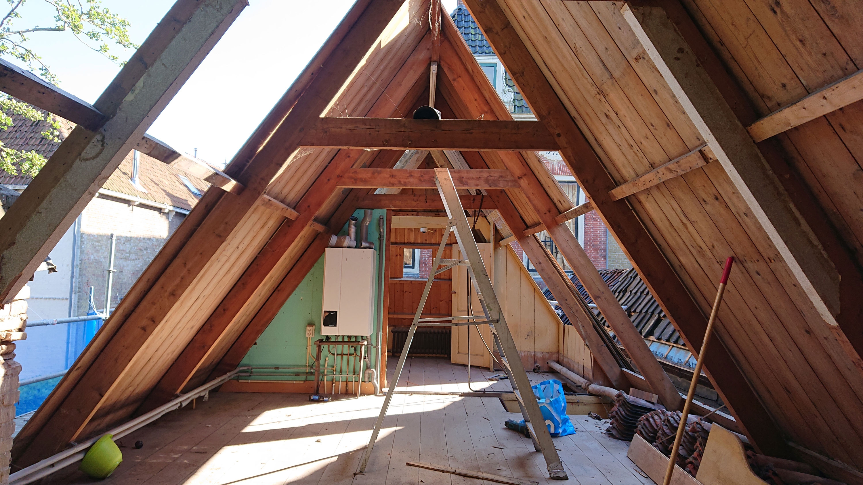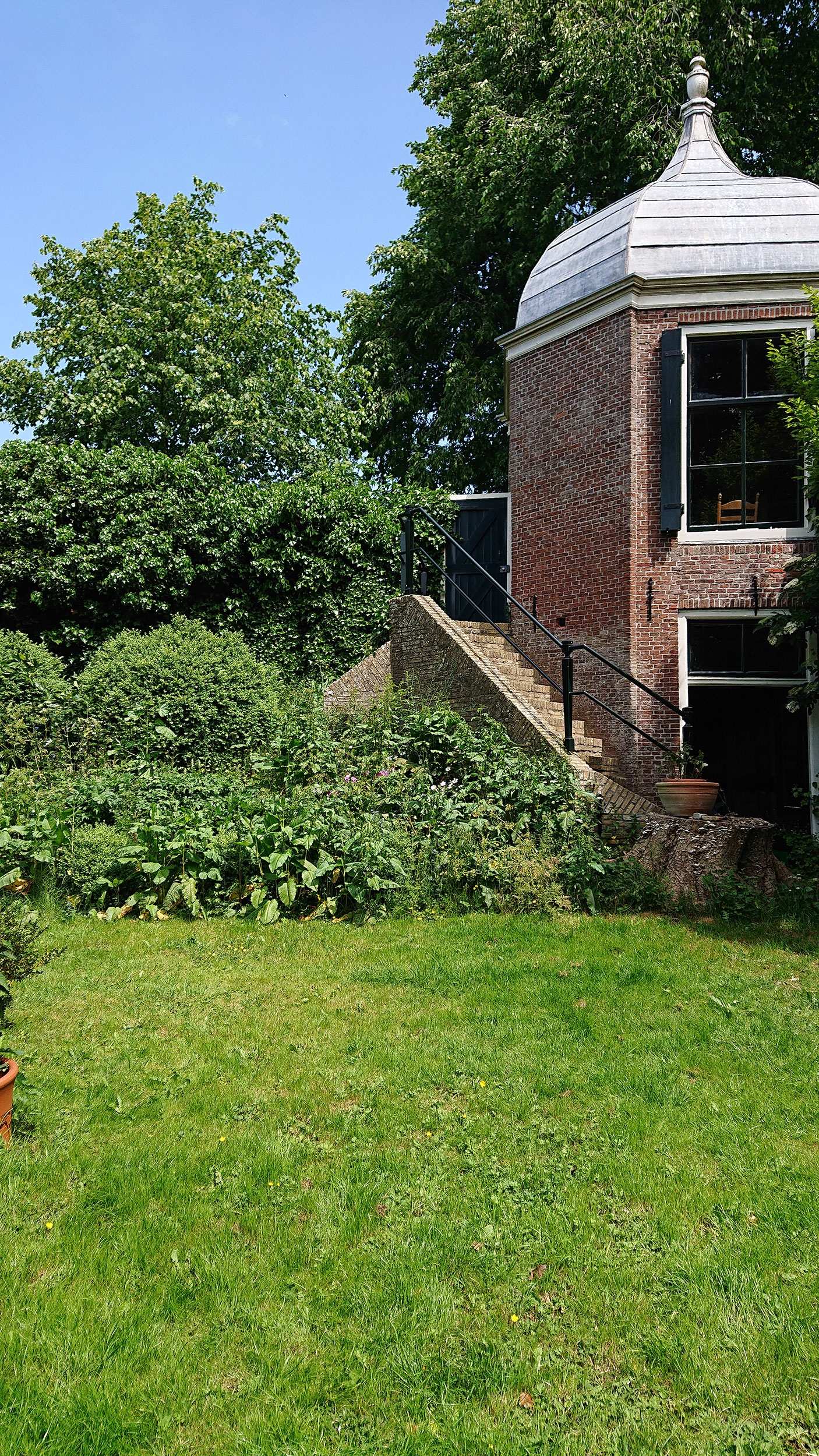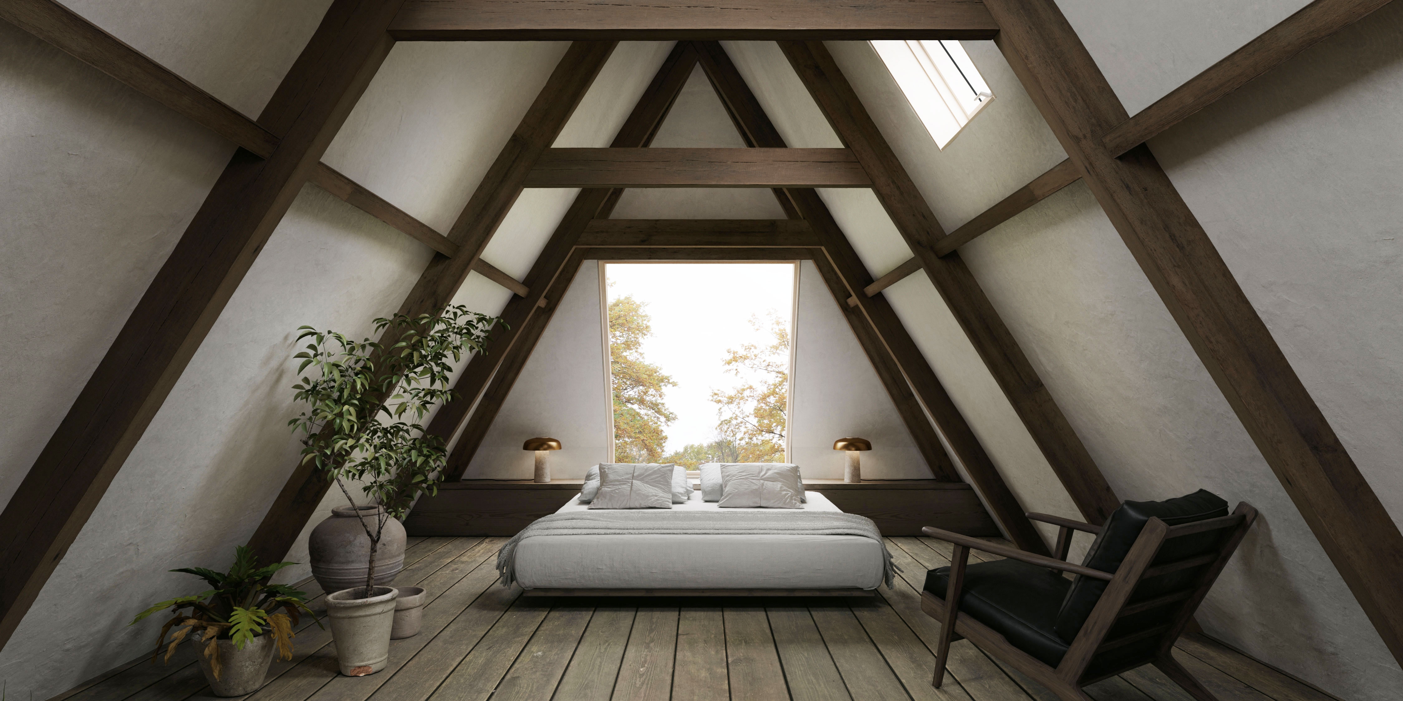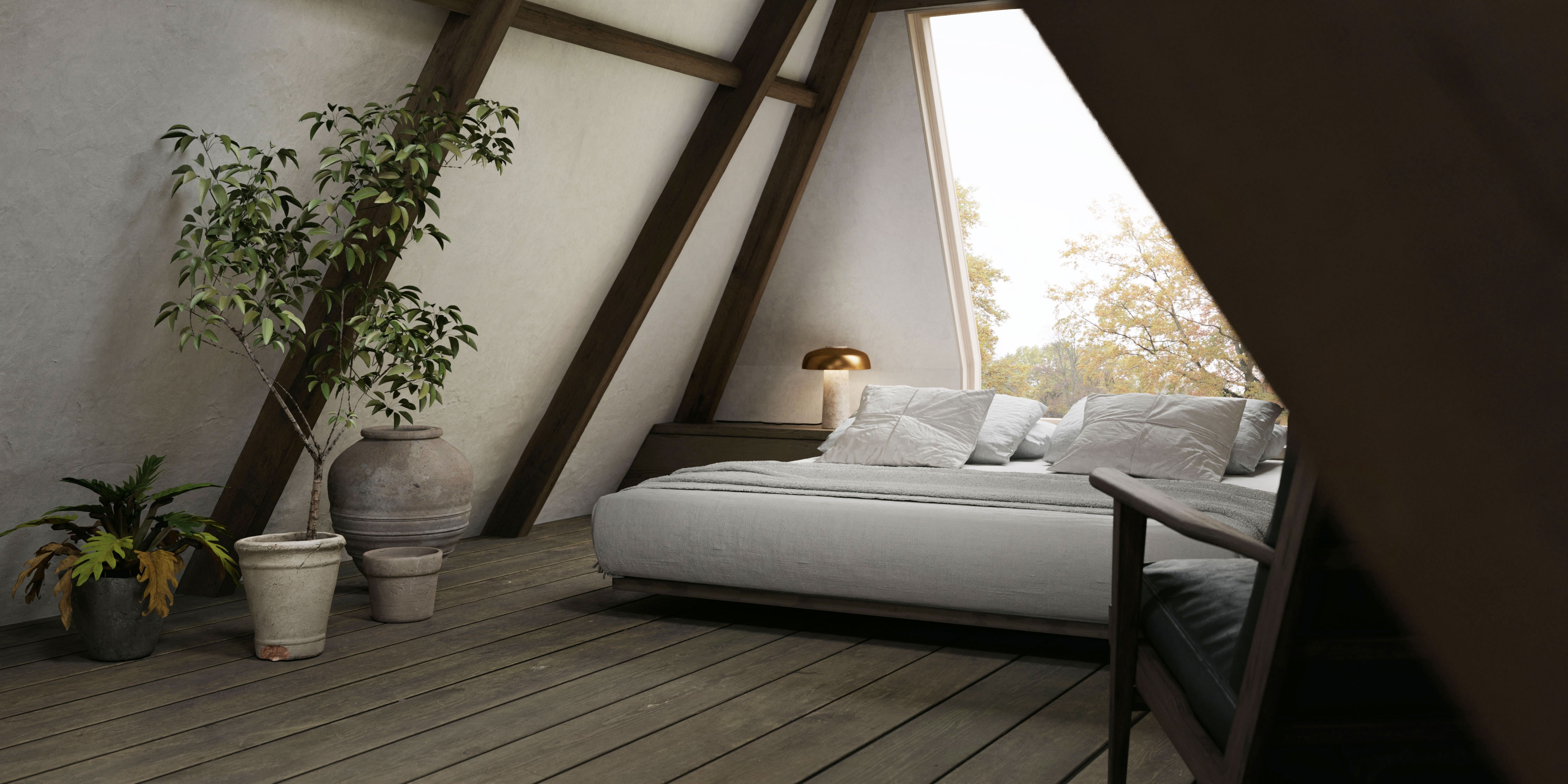 An enchanting 18th century building, was the inspirational canvas for MINIMUC to an atmospheric attic bedroom. A long corridor connects the main residence with the ‘Achterhuis’; the back-house. A smaller, separate building made for all the secondary needs. Its unused for years attic, was turned into a bedroom for all the family’s guests. Climbing up the staircase, a little fire corner welcomes you resting on an aged copper slate; an alluring entrance, yet fully protective of the original pine floor. On the left side, a double bed waits for you to recharge. Above it, a large opening makes sure you don’t miss the 800m2 garden view. On the right, her majesty; an antique brass bathtub standing audacious in the middle of a blue stone covered floor. The space offers a journey through time. The eclectic interior acts as a refreshing trimming to the aged building. With respect to the 18th century building’s heritage, intact remain all the original materials. The new additions were selected with sustainability in mind. Design choices imbue a sense of serenity and simplicity, formulating an emotional environment. The originality of the space speaks for itself; we just had to mute the noise.