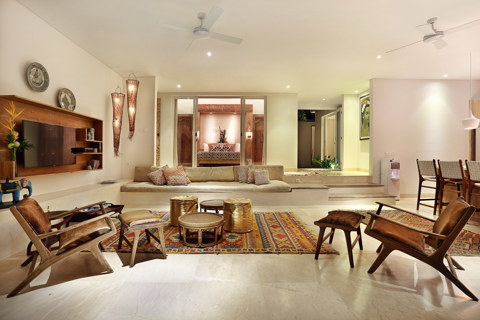 The villa is an exotic blend of traditional Balinese and contemporary architectural styles.