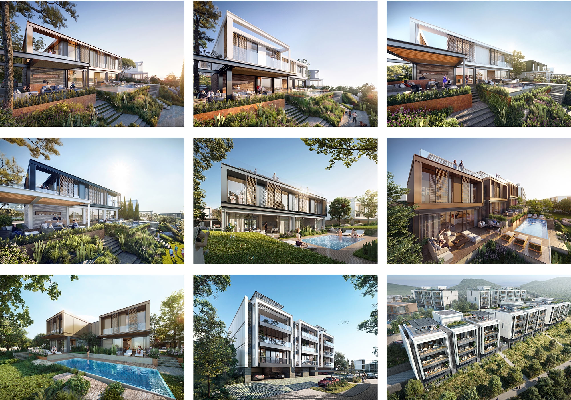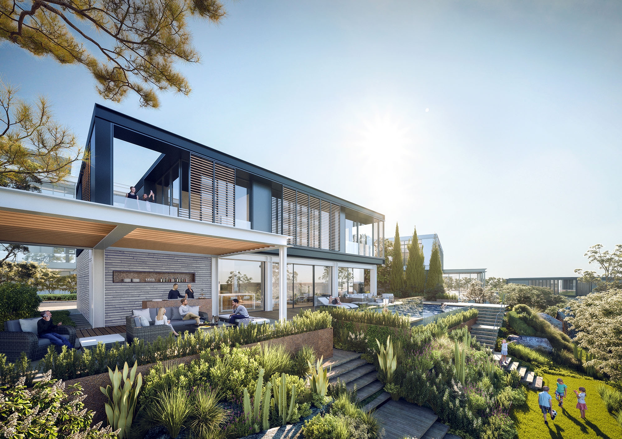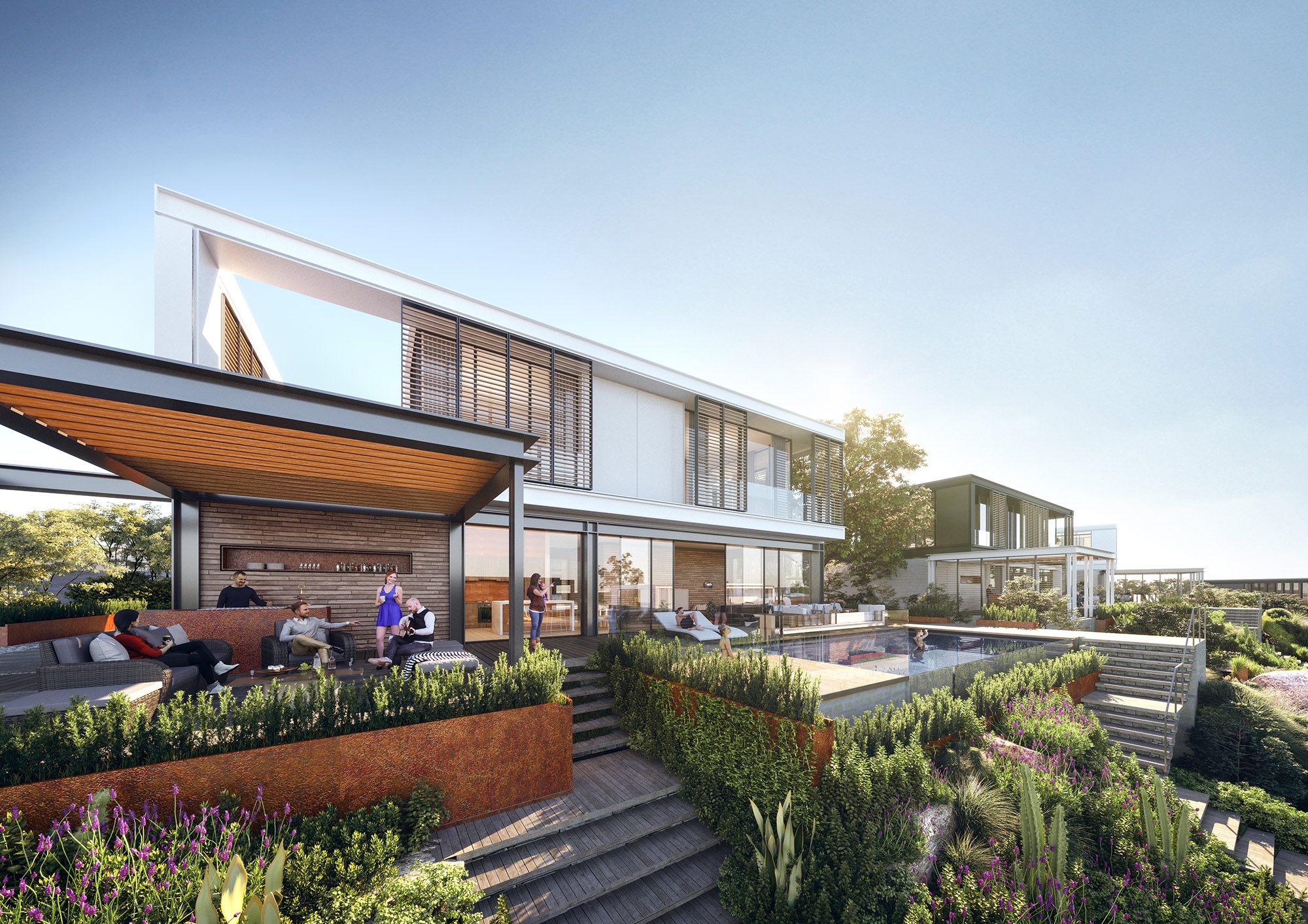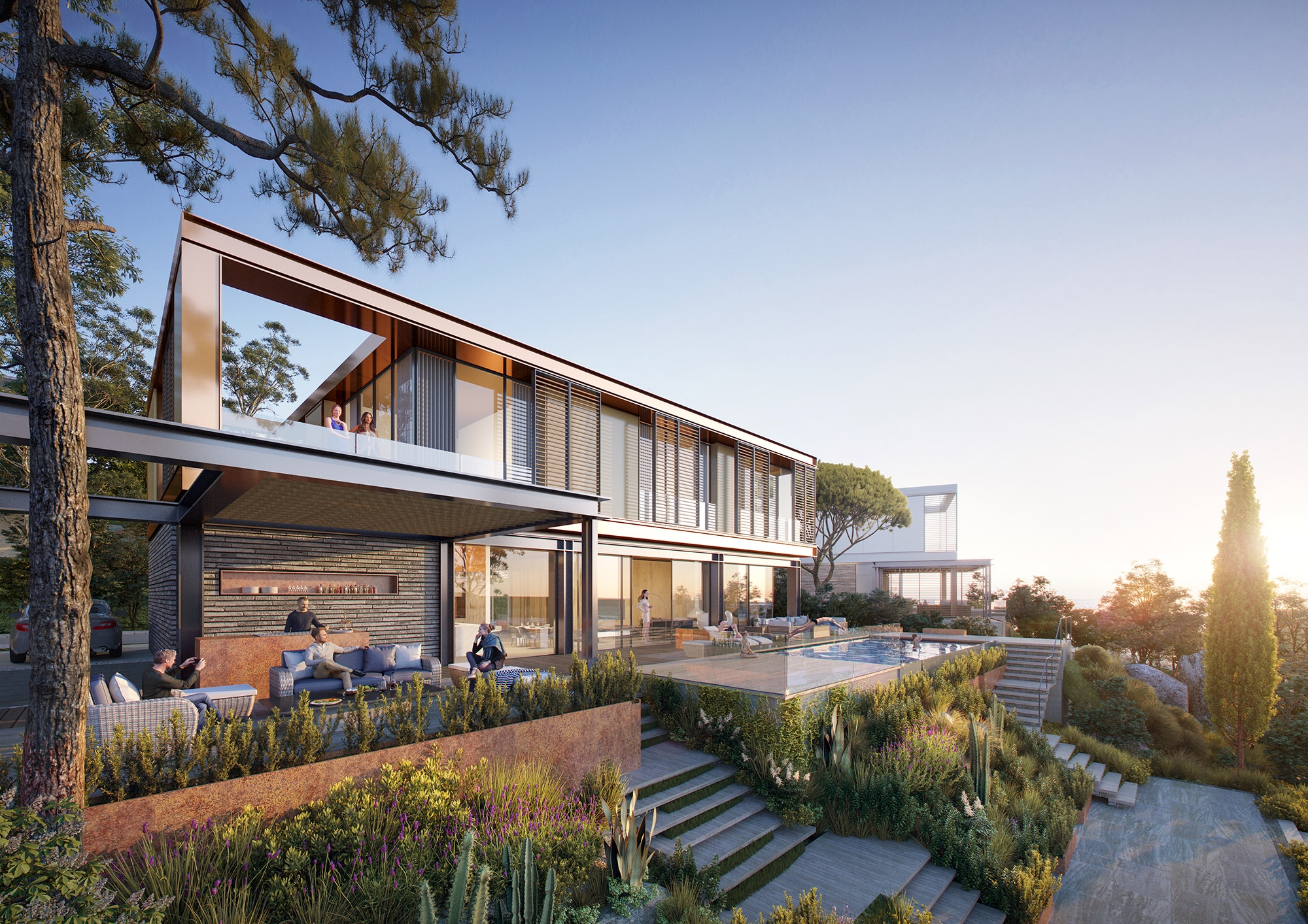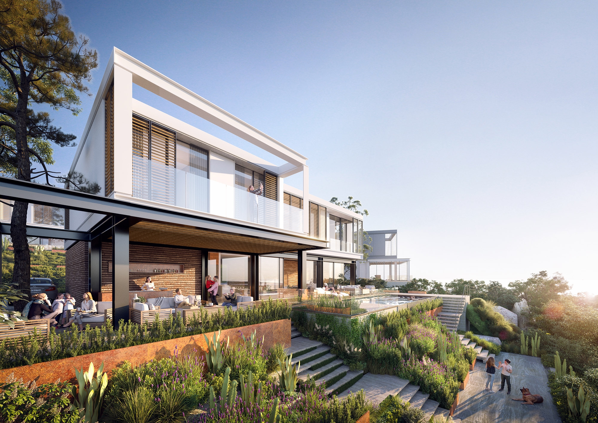 The various different residency options share a common architectural vocabulary and materiality, creating a uniformed brand for the product range. With contrasting shades of the local stone and contrasting dark grey paint, the residences are finished with robust steel detailing. The beach club bears a corresponding design palette to the residences and will act as both a waterfront gateway and a central destination for the scheme.