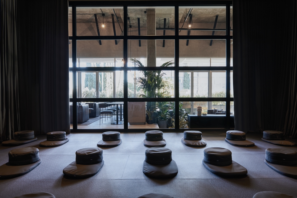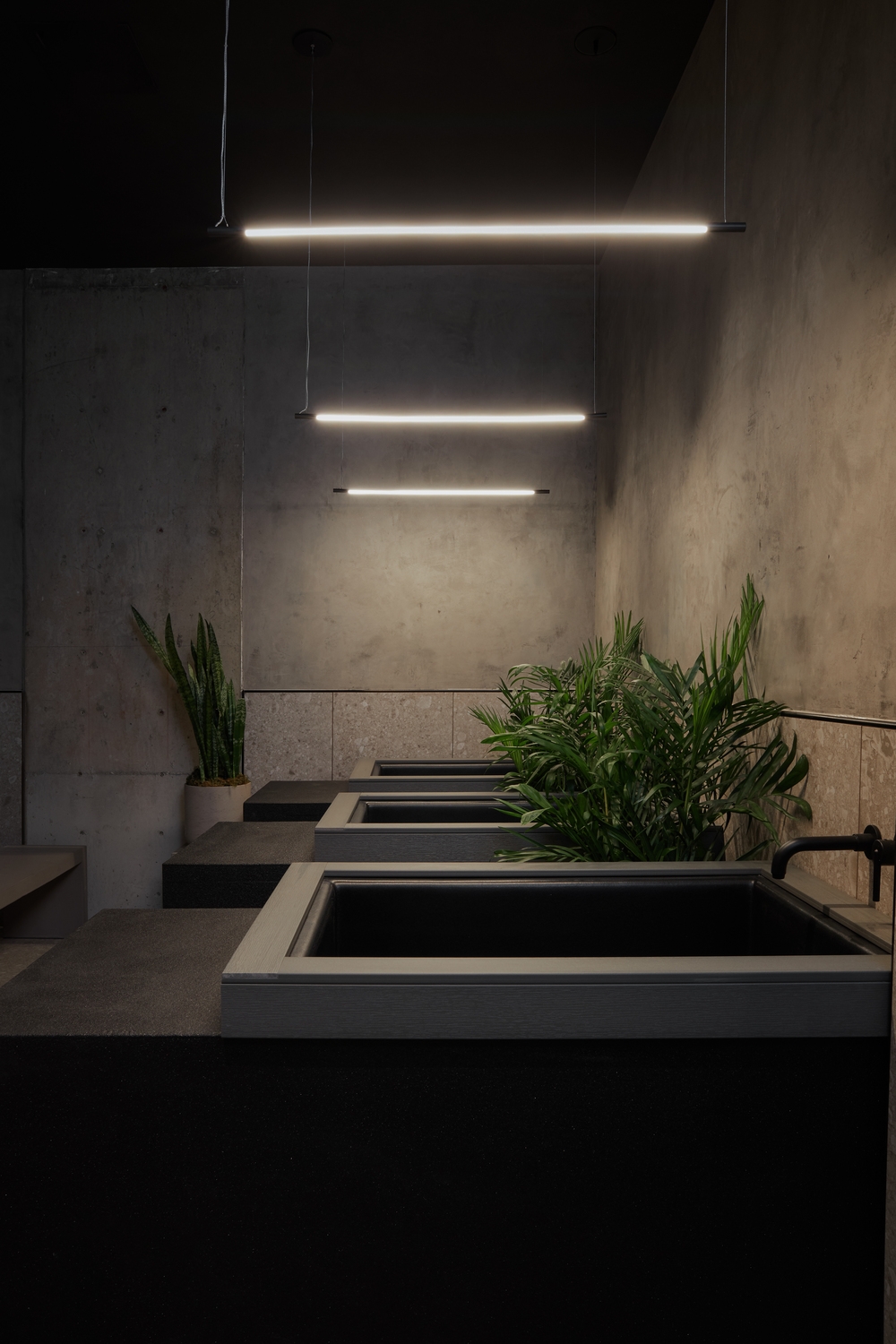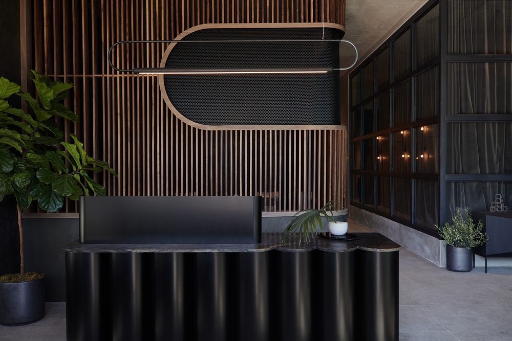 Remedy Place is a brutalist interior where minimalist form meets maximal texture and refined detailing. A neutral, zen color palette provides immediate serenity complemented by an abundance of greenery and moody dim lighting. Casual furniture vignettes and a posh wellness bar serve as a relaxing, gathering space evocative of every client’s favorite hotel lobby.
