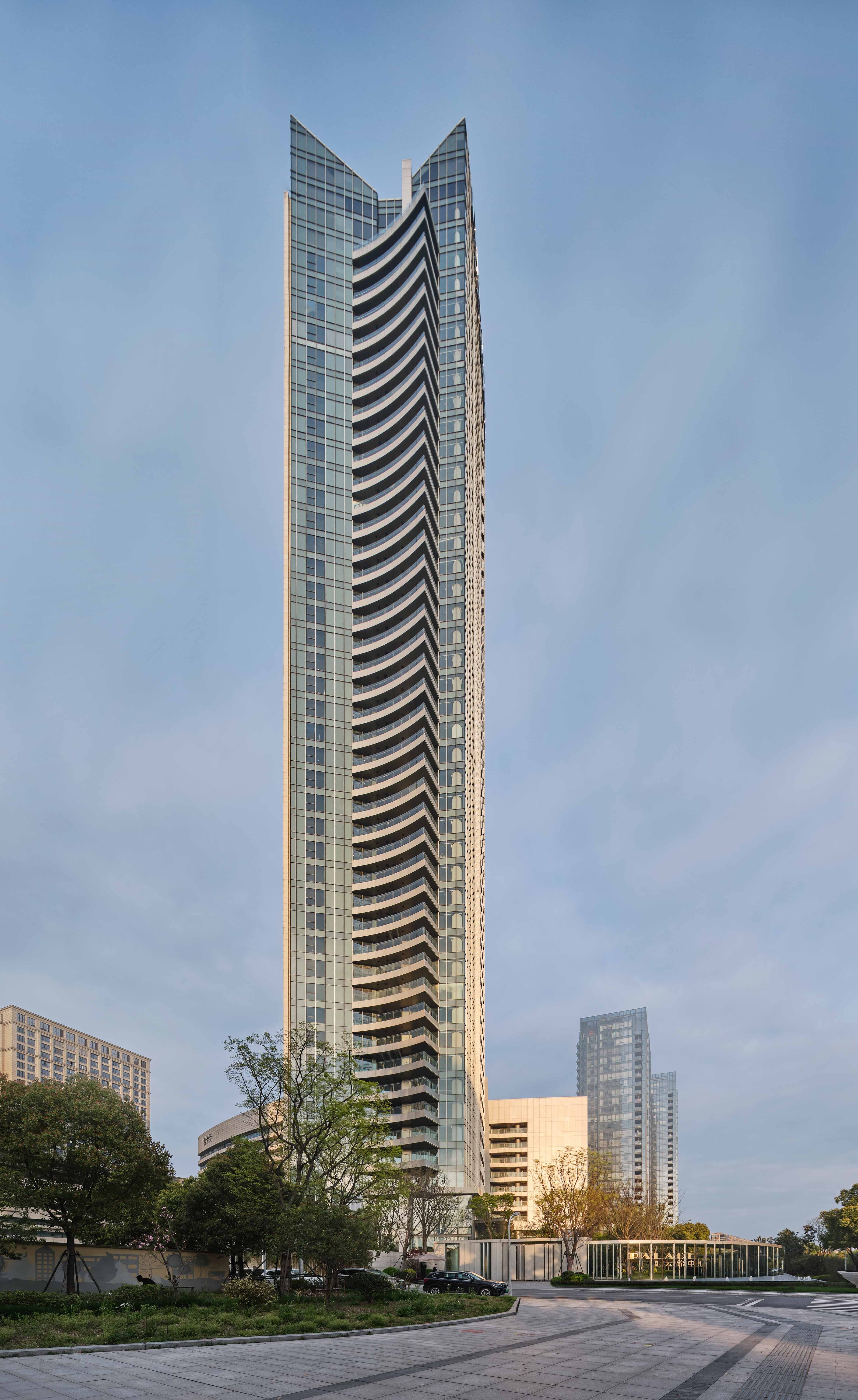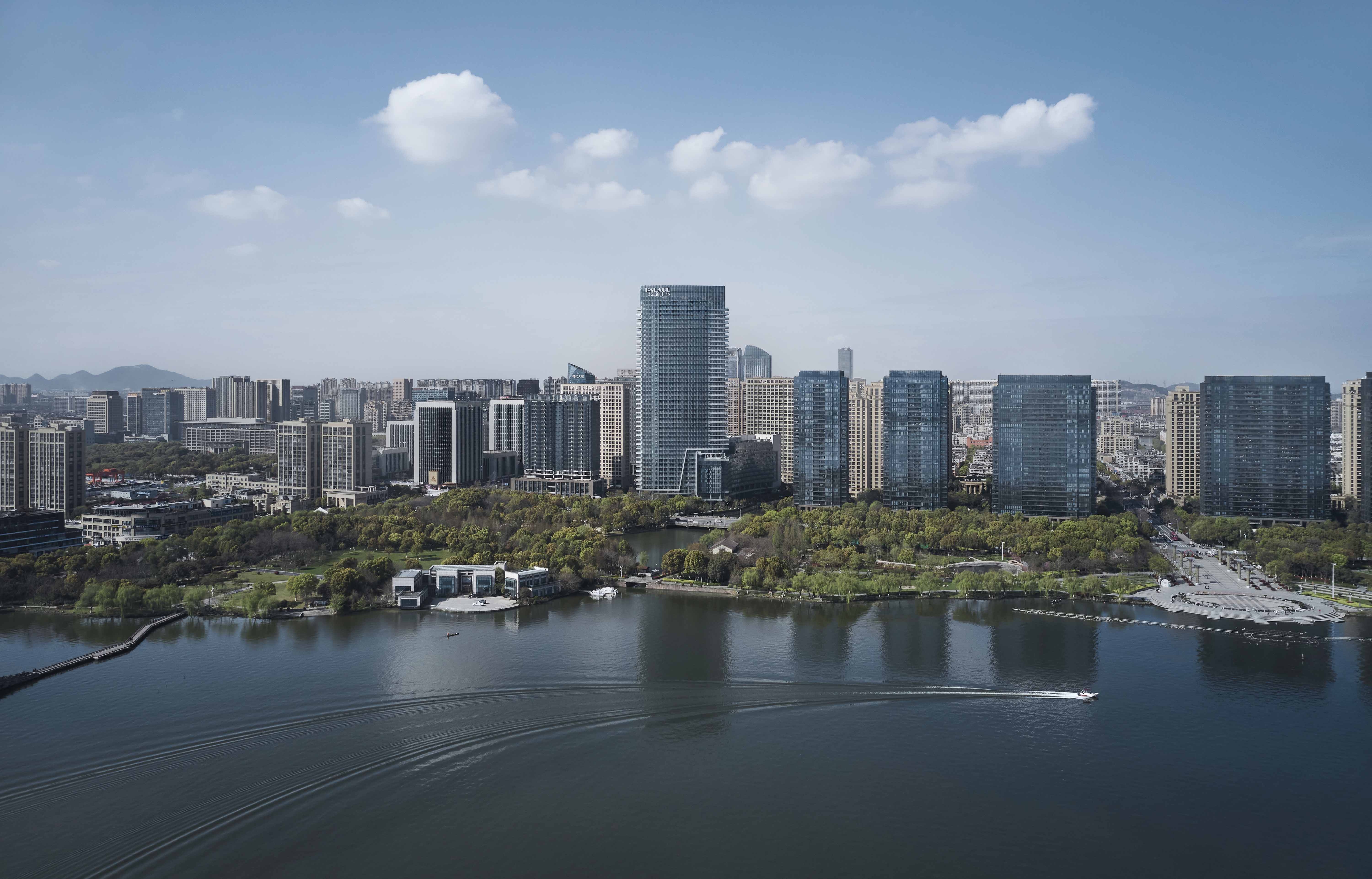 Combined with the overall planning of the surrounding GN-2 plot, this project makes full use of the lakeside interface and urban roads on the south side, and forms the urban lakeside landscape node by setting up green courtyards, thus creating an experience that there is an open green courtyard in the base. The designer relies on the east waterfront interface to create a hydrophilic green leisure corridor with ecological attributes, and arranges boutique commercial and hotel facilities on the north side interface, running through a relatively complete commercial space experience. The apartment tower is arranged at the southeast corner of the site. Its 60m width not only maximizes the use of landscape resources, but sets aside a visual corridor for the surrounding buildings, and emphasizes its own iconicity, thus creating a more revealing architectural image.