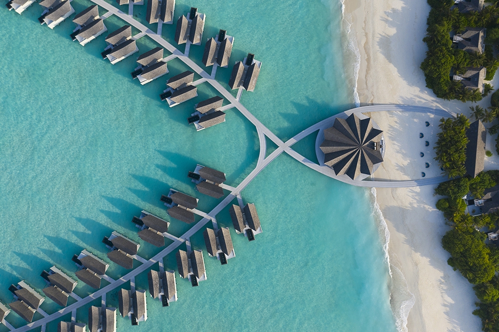 The resort showcases a series of unique architectural features and distinctive design touches that complement the soothing natural surroundings, and was designed by the Poland based company MOTIV, who used the private, uninhabited tropical island of Kuredhivaru as a blank canvas on which to create something aesthetically appealing and truly unique. MOTIV has designed a masterpiece that weaves seamlessly into the island environment, blurring the boundaries between innovative design, Maldivian heritage and Mother Nature.
