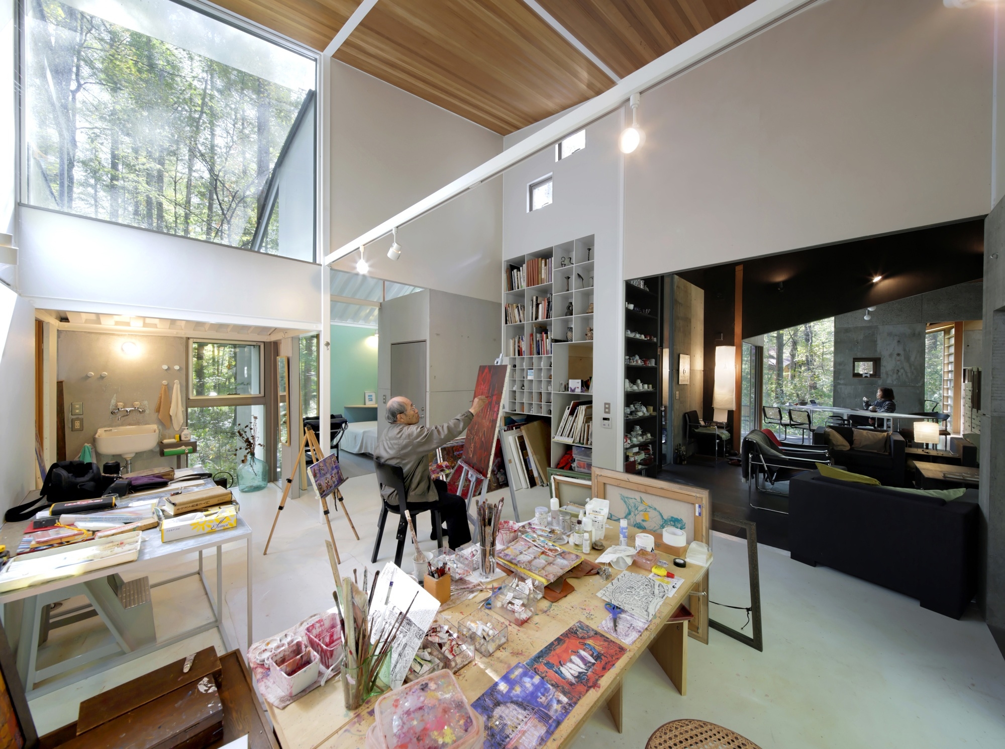 “Gradation in the Forest“ is a house in a forest of a summer resort. The houses stand calmly in the forest. This house is made as a collection of small spaces. Various spaces were prepared in order to make living environment rich.