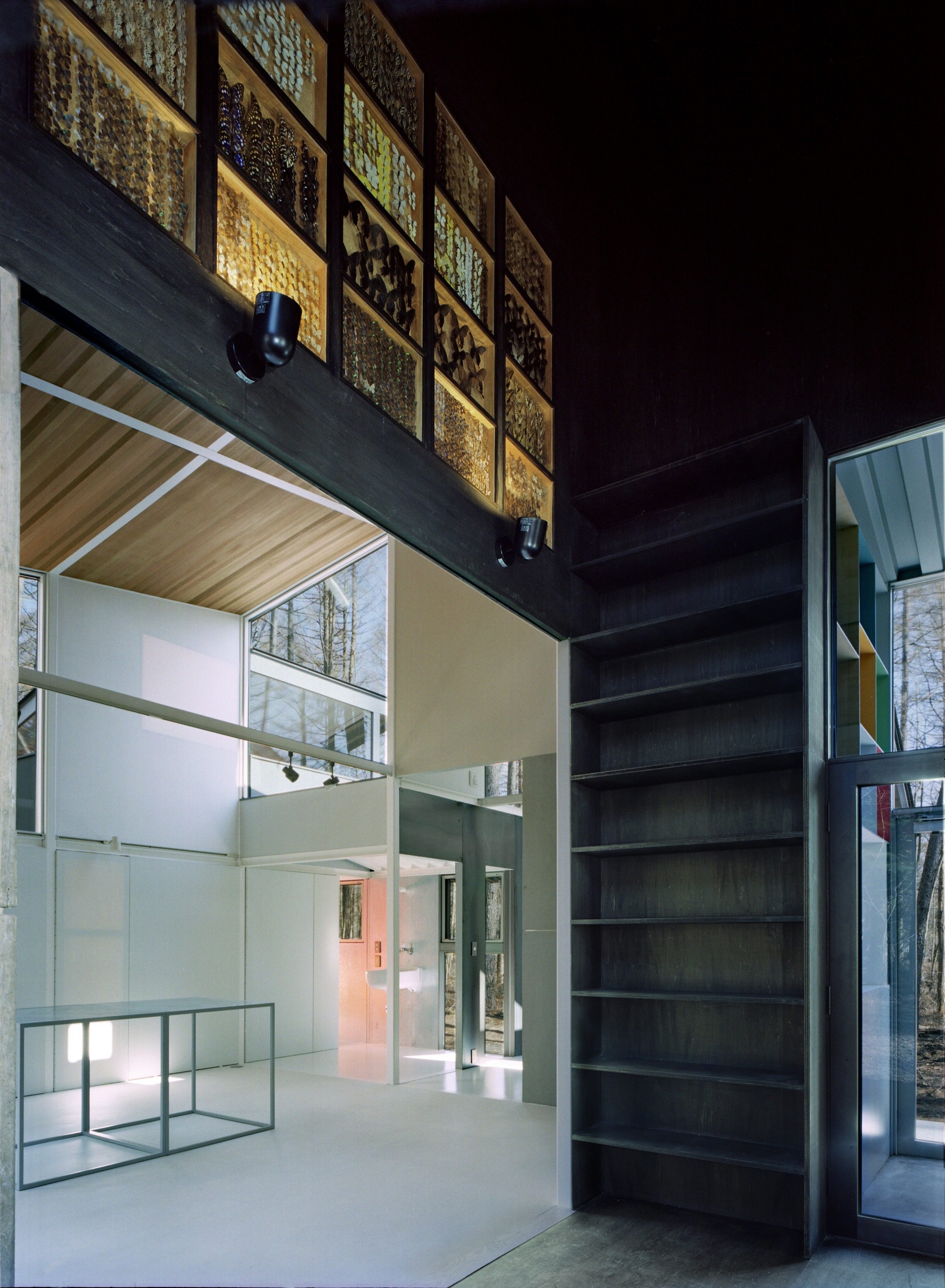 “Metamorphosis in the Forest“ consists of “Gradation in the Forest” and “Three Cubes in the Forest”. The theme of this project is that spaces penetrates deeply into the forest.