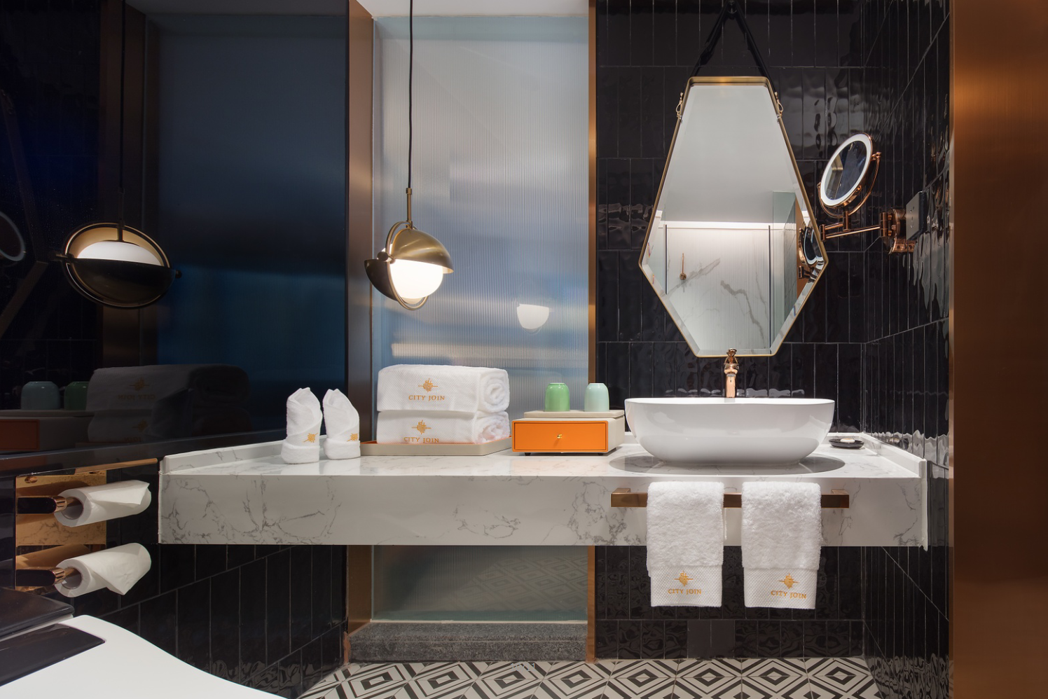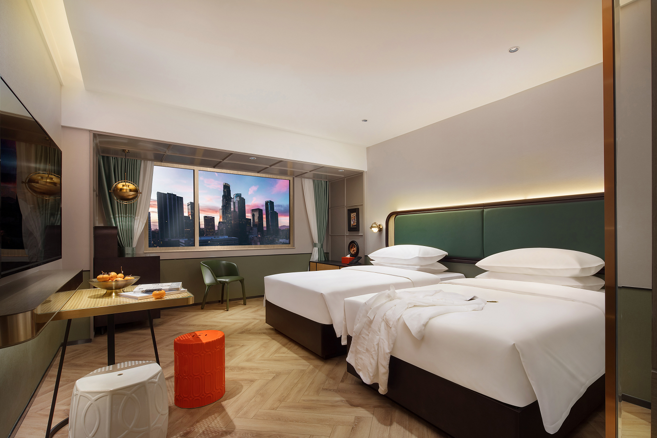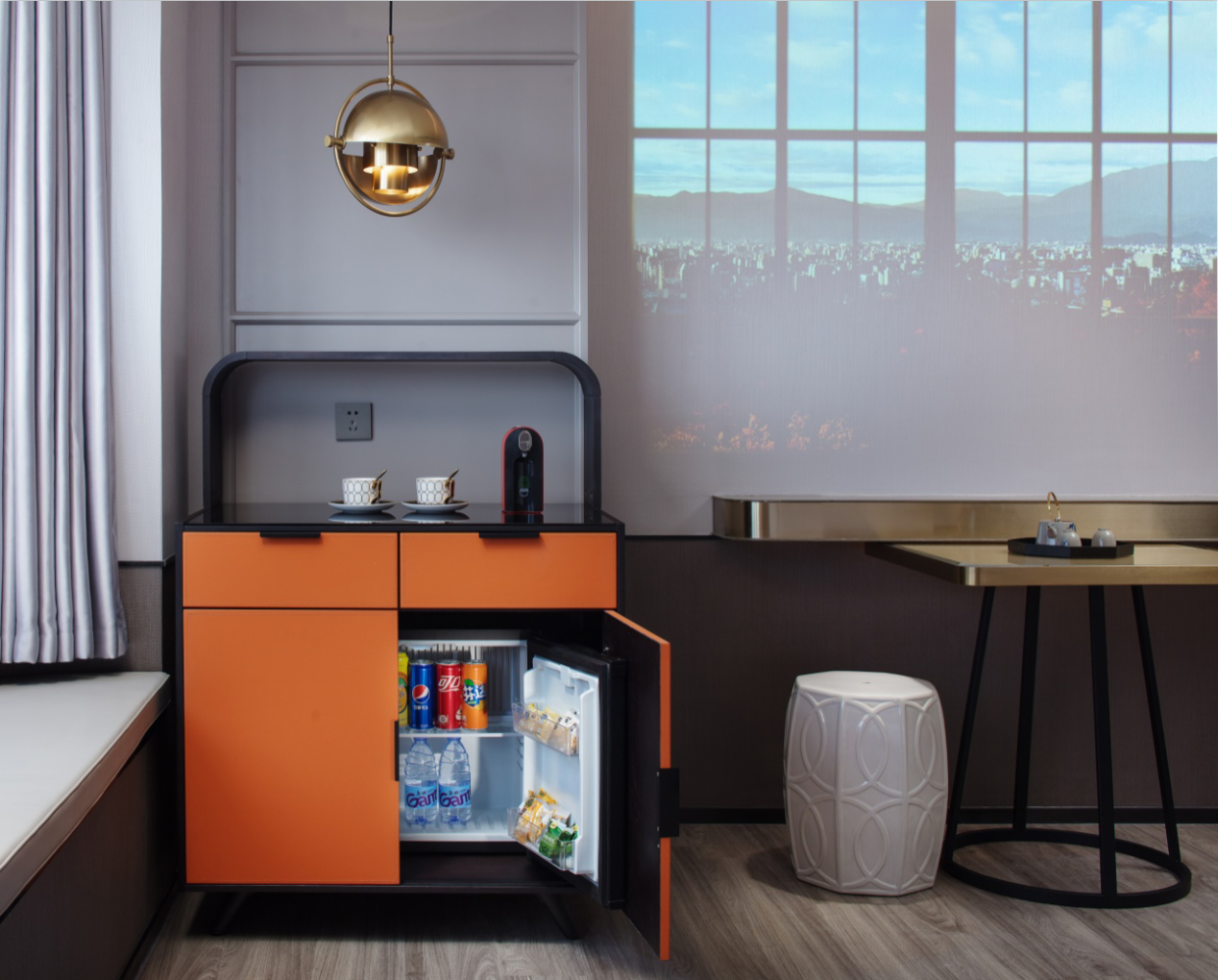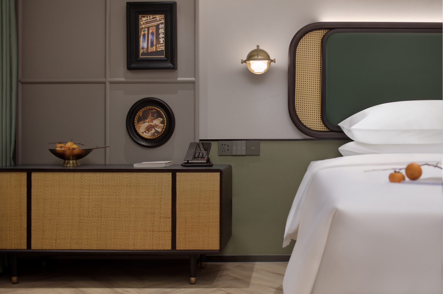 This case is a 3.0version hotel product of Cityjoin Hotel, hoping to reconstruct the urban culture through the hotel space and inject a new soul into the city. The hotel is located at No. 1115 Haizhu North Road (near the Ximenkou subway station). The surrounding environment is composed of the two old streets of Yuexiu and Liwan; the city blocks, the cracked arcades, the thousand-year-old pagoda, and the delicious Cantonese food which full of rich Cantonese atmosphere. We want to establish a living space with urban memory here. And we hope that the hotel is not only a accommodation space, but also a vehicle for narrating the city, so that people who come to this city can perceive the imprint of the city and humanistic feelings. The Oriental Concept Design team put forward the concept of de-lobbying public areas through the study of the conditions of the building , breaking the traditional hotel design that the first or the whole floor is a hotel lobby. Combining with the historical and cultural background of the academy in Guangzhou, the public area is defined as an urban academy in the sky. Its functions include reception, leisure, reading, viewing, urban cultural corridors, etc.,