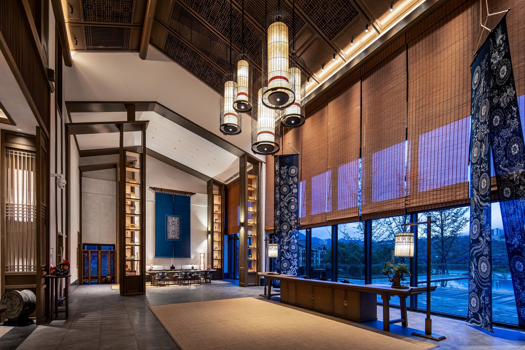 Danzhai Jin Hotel is located in the southeast of Guizhou Province. The hotel design adopts the perfect combination of local style and ethnic customs. The local topography is from high to low, facing the lake and the landscape of Danzhai Town in the first phase. The hotel is built around the lake landscape by taking full advantage of the terrain. The hotel has a wide view and beautiful landscape, combined with the ancient culture and life philosophy of ethnic minorities Through the use of ethnically rich cultural pattern elements and color materials, a unique hotel with ethnic characteristics has been created.