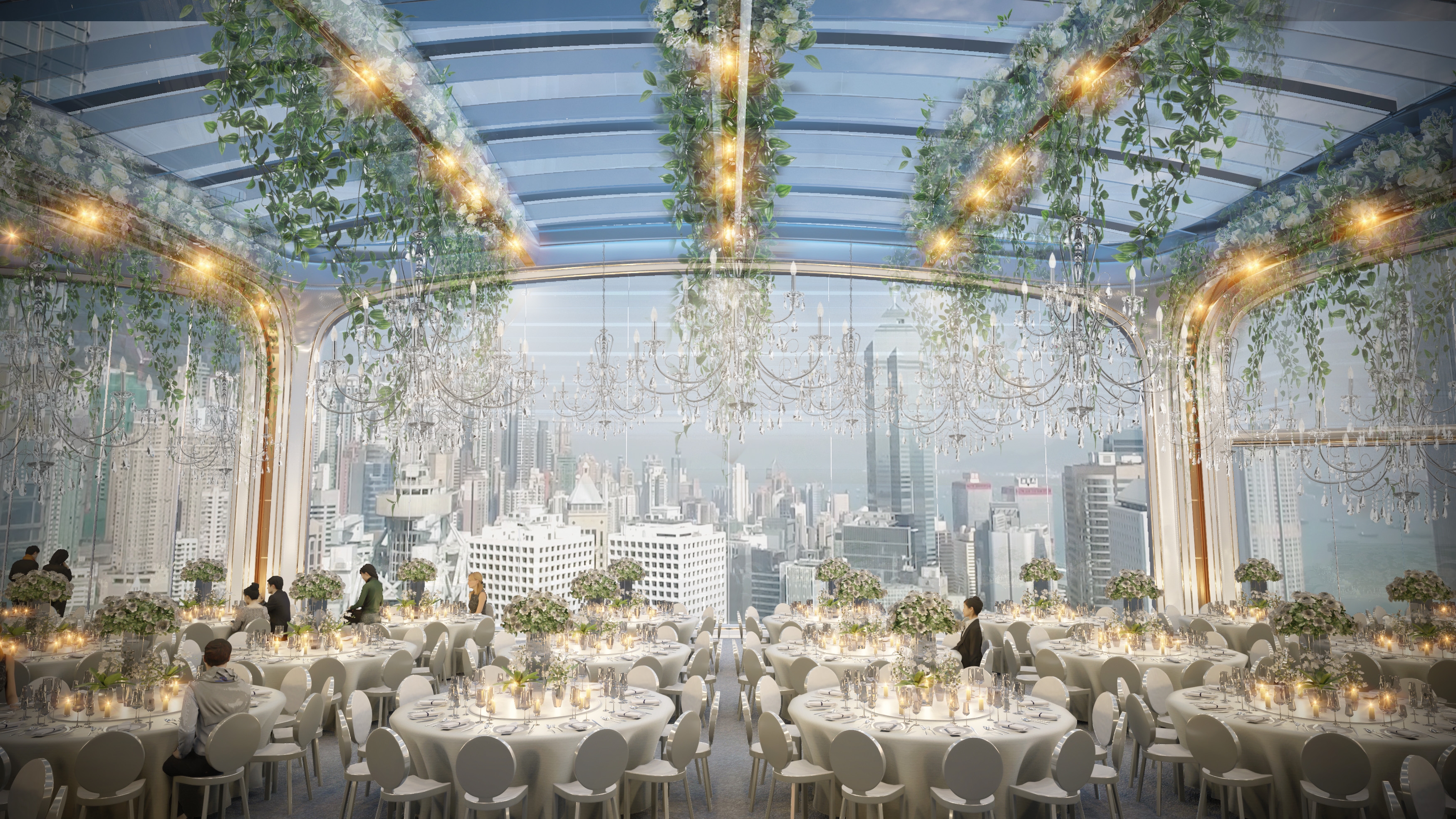 The Skylight Room event experience will begin as guests arrive at a Top of Tower lobby, to ride a lift up and away from the gardens.